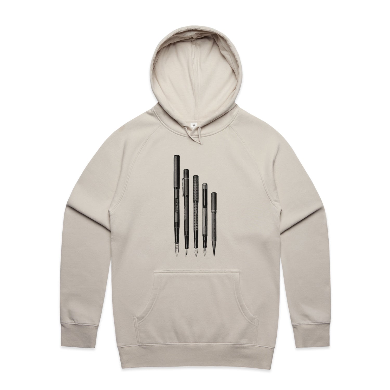 The Hoodies Fountain Pen Set – Men's Hooded Sweatshirt is a high-quality men's hooded sweatshirt, printed with black ink on the trusted AS Colour Supply Hood 5101. With a regular fit and mid-weight feel, it's crafted from a premium blend of 80% cotton and 20% polyester anti-pill fleece, making it a durable and comfortable staple for any wardrobe. The pullover design features raglan sleeves, a lined hood with tonal drawcord, ribbed sleeve cuffs, and a roomy kangaroo pocket — all designed to keep you warm while looking effortlessly sharp.