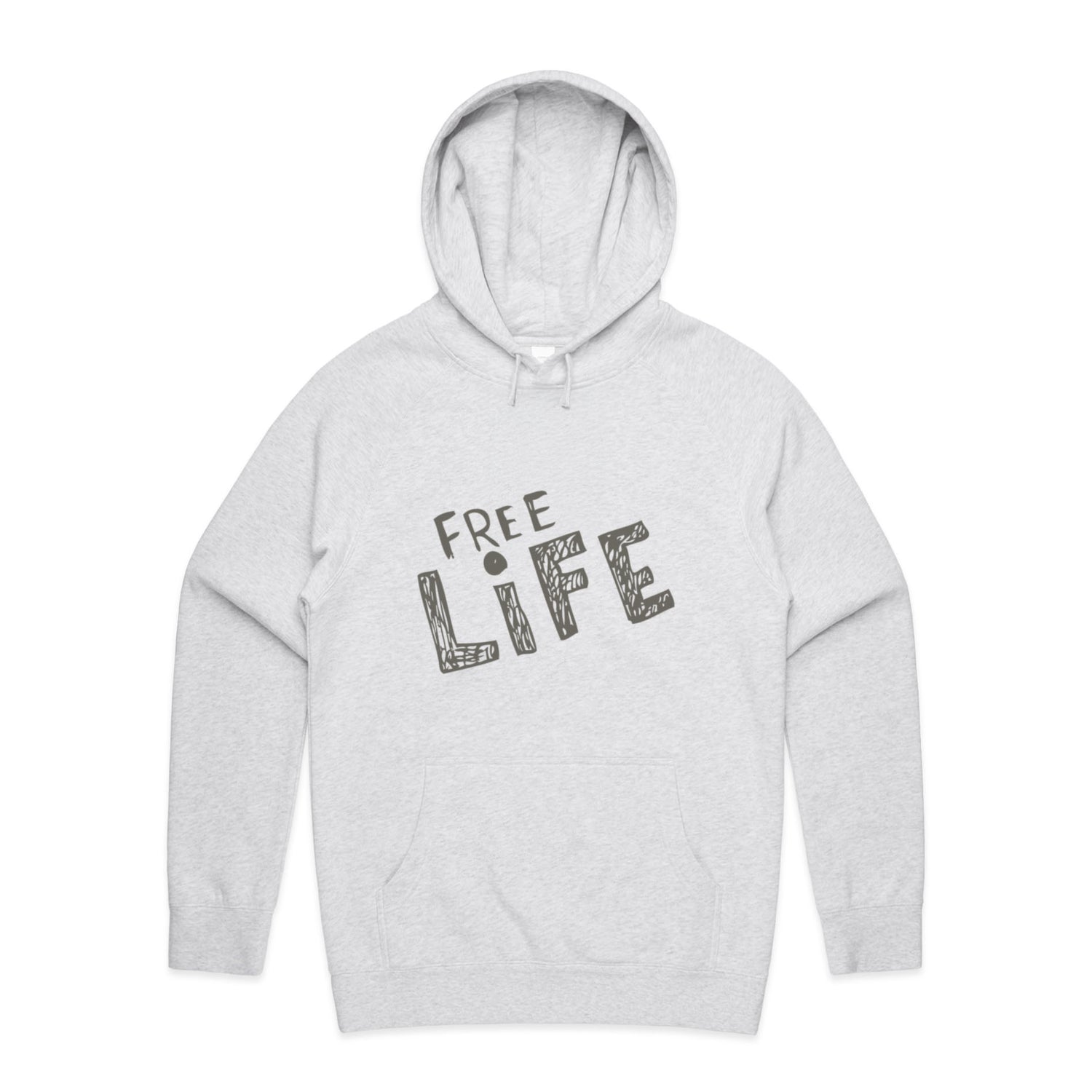 The Hoodies Free Life – Men's Hooded Sweatshirt is a high-quality men's hooded sweatshirt, printed with grey ink on the trusted AS Colour Supply Hood 5101. With a regular fit and mid-weight feel, it's crafted from a premium blend of 80% cotton and 20% polyester anti-pill fleece, making it a durable and comfortable staple for any wardrobe. The pullover design features raglan sleeves, a lined hood with tonal drawcord, ribbed sleeve cuffs, and a roomy kangaroo pocket — all designed to keep you warm while looking effortlessly sharp.