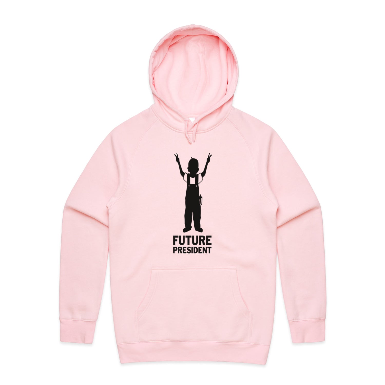 The Hoodies Future President – Men's Hooded Sweatshirt is a high-quality men's hooded sweatshirt, printed with black ink on the trusted AS Colour Supply Hood 5101. With a regular fit and mid-weight feel, it's crafted from a premium blend of 80% cotton and 20% polyester anti-pill fleece, making it a durable and comfortable staple for any wardrobe. The pullover design features raglan sleeves, a lined hood with tonal drawcord, ribbed sleeve cuffs, and a roomy kangaroo pocket — all designed to keep you warm while looking effortlessly sharp.