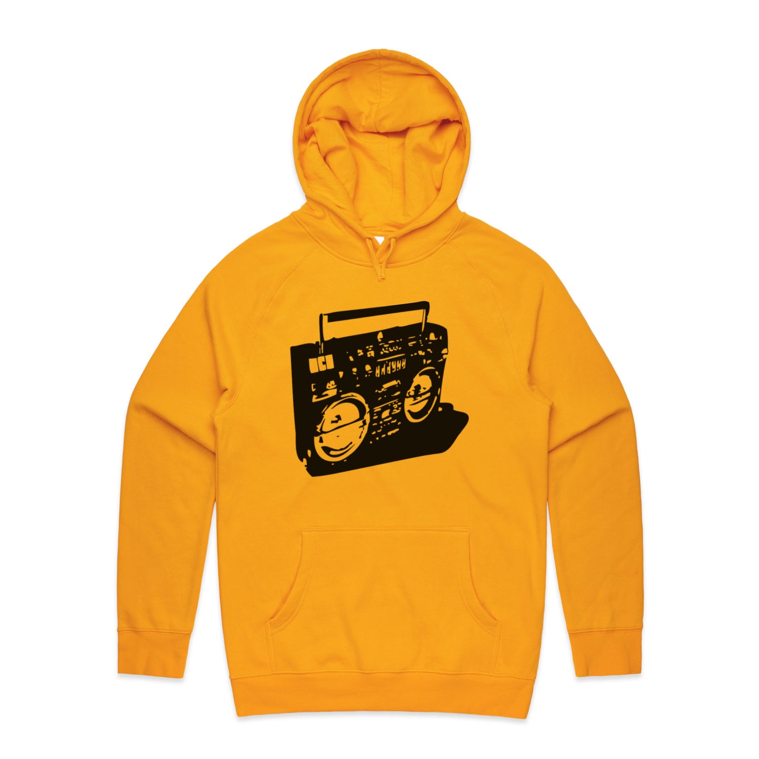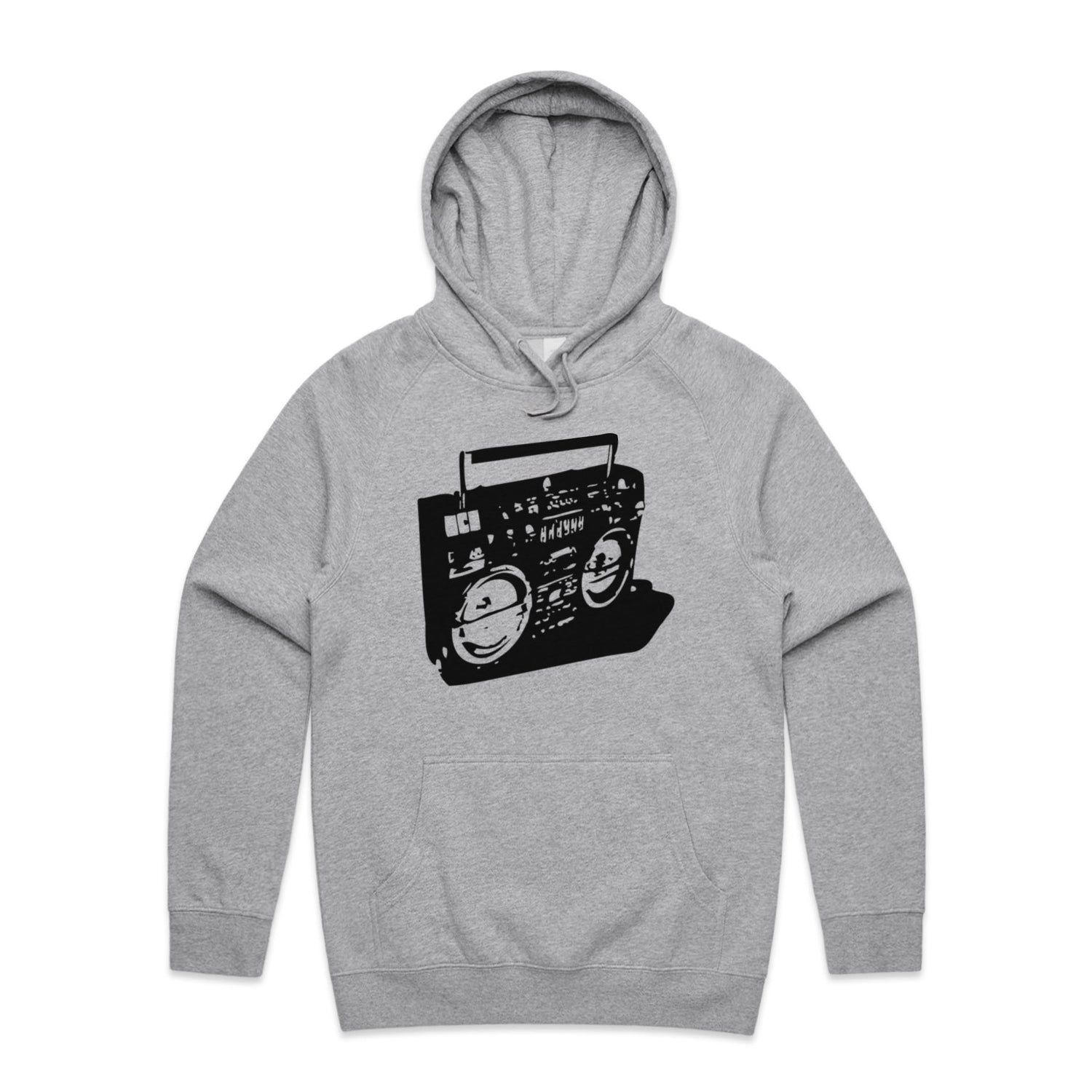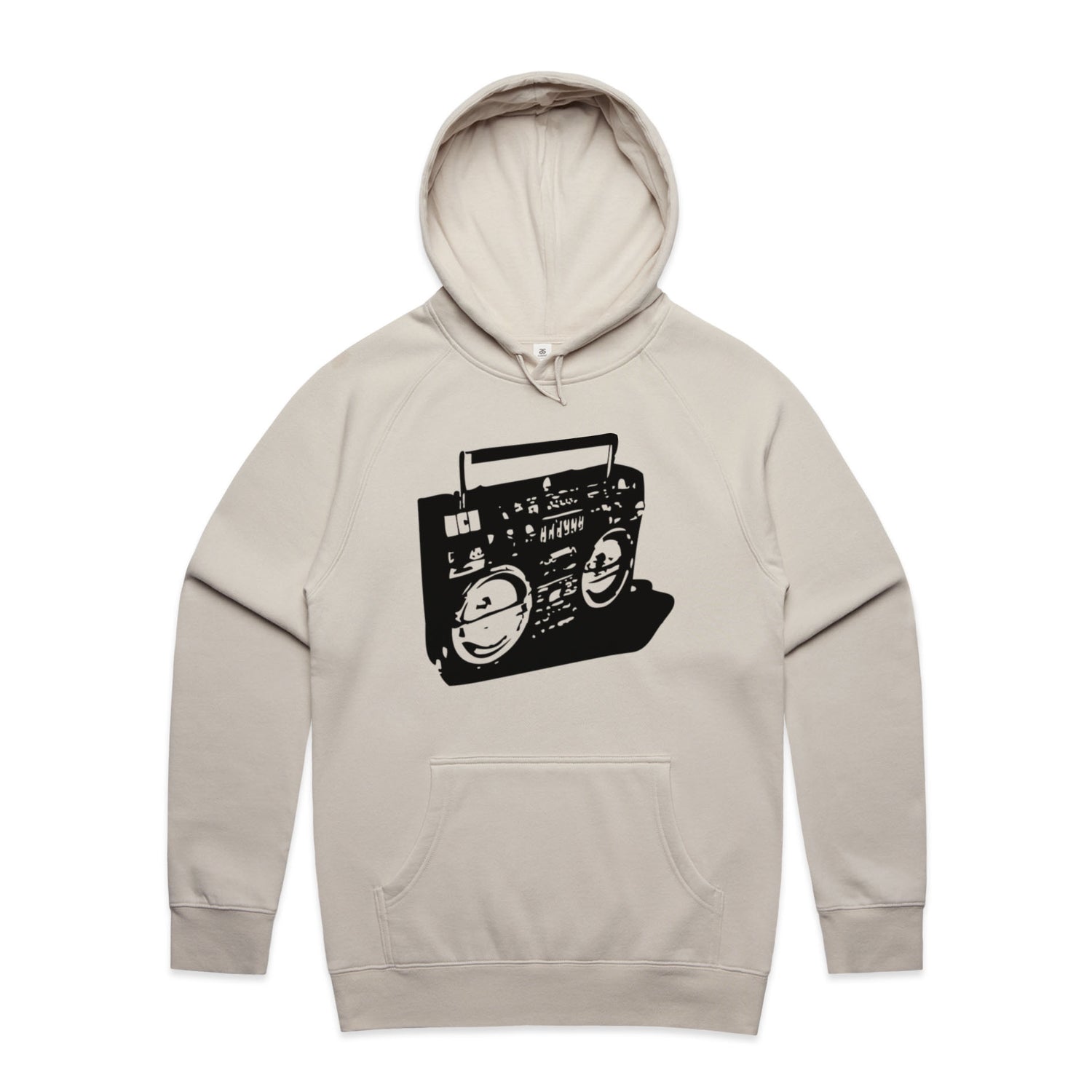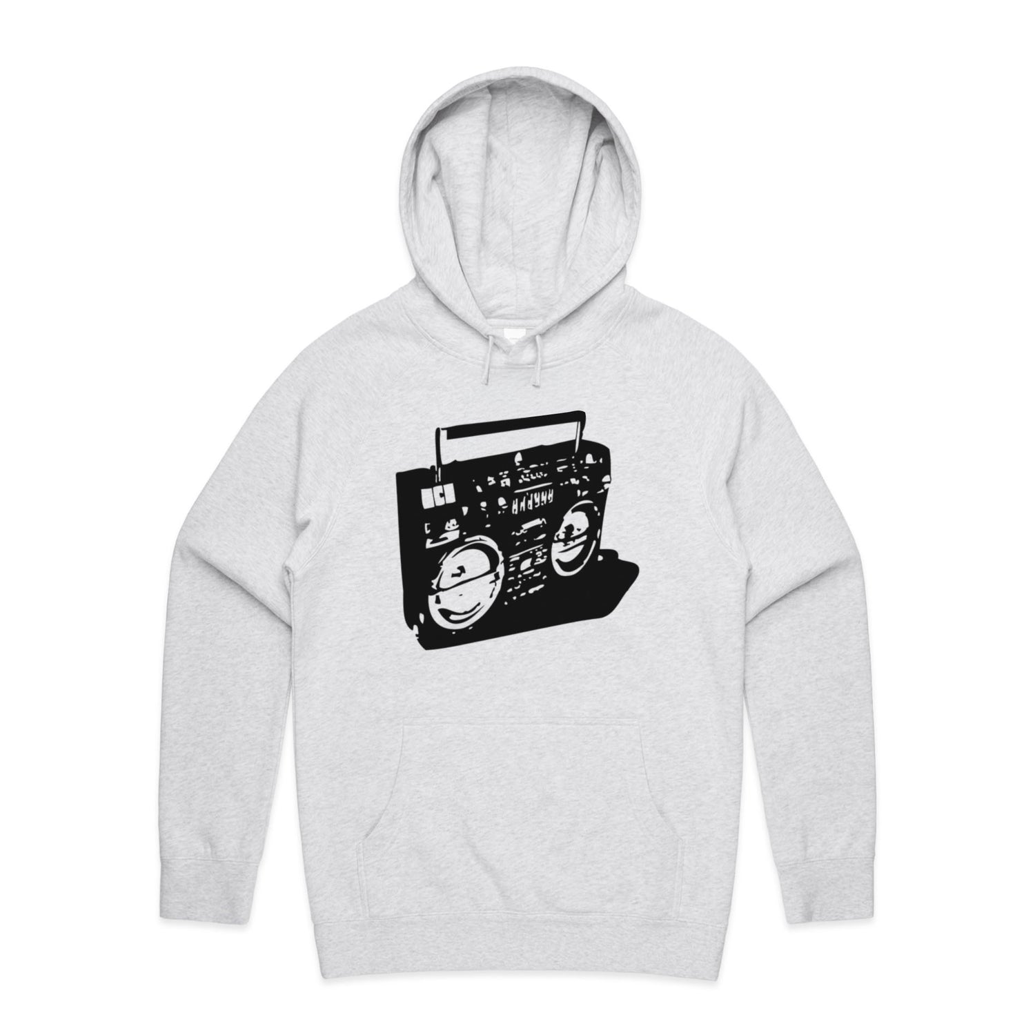 The Hoodies Ghetto Blaster – Men's Hooded Sweatshirt is a high-quality men's hooded sweatshirt, printed with black ink on the trusted AS Colour Supply Hood 5101. With a regular fit and mid-weight feel, it's crafted from a premium blend of 80% cotton and 20% polyester anti-pill fleece, making it a durable and comfortable staple for any wardrobe. The pullover design features raglan sleeves, a lined hood with tonal drawcord, ribbed sleeve cuffs, and a roomy kangaroo pocket — all designed to keep you warm while looking effortlessly sharp.
