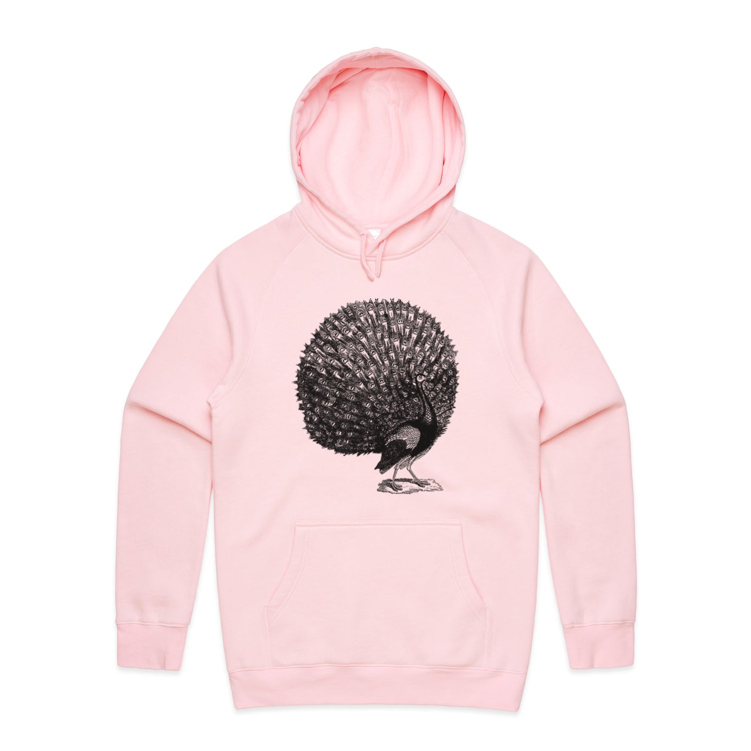 The Hoodies Gorgeous Peacock – Men's Hooded Sweatshirt is a high-quality men's hooded sweatshirt, printed with black ink on the trusted AS Colour Supply Hood 5101. With a regular fit and mid-weight feel, it's crafted from a premium blend of 80% cotton and 20% polyester anti-pill fleece, making it a durable and comfortable staple for any wardrobe. The pullover design features raglan sleeves, a lined hood with tonal drawcord, ribbed sleeve cuffs, and a roomy kangaroo pocket — all designed to keep you warm while looking effortlessly sharp.