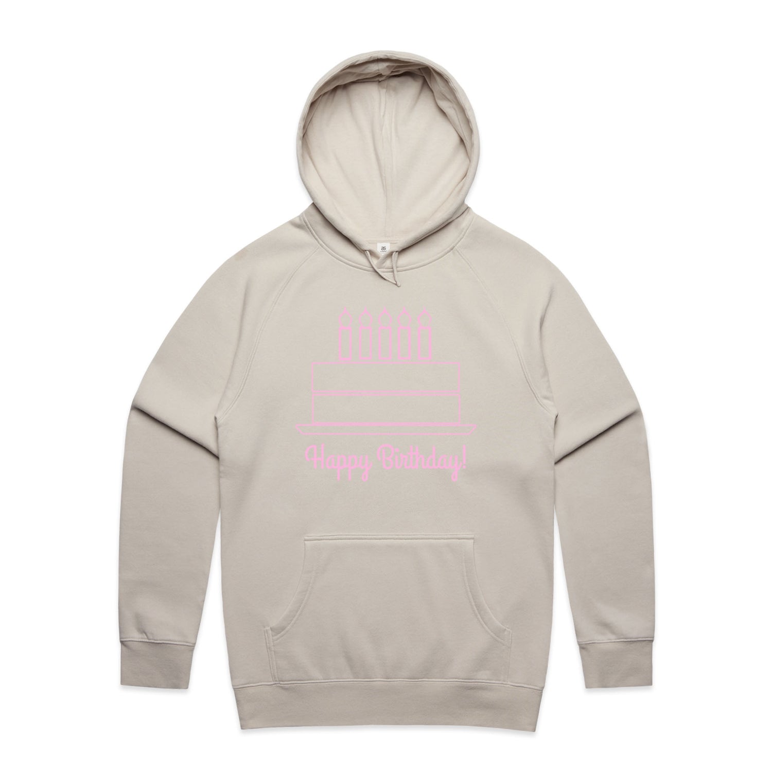 The Hoodies HappyBirthday Pink – Men's Hooded Sweatshirt is a high-quality men's hooded sweatshirt, printed with pink ink on the trusted AS Colour Supply Hood 5101. With a regular fit and mid-weight feel, it's crafted from a premium blend of 80% cotton and 20% polyester anti-pill fleece, making it a durable and comfortable staple for any wardrobe. The pullover design features raglan sleeves, a lined hood with tonal drawcord, ribbed sleeve cuffs, and a roomy kangaroo pocket — all designed to keep you warm while looking effortlessly sharp.