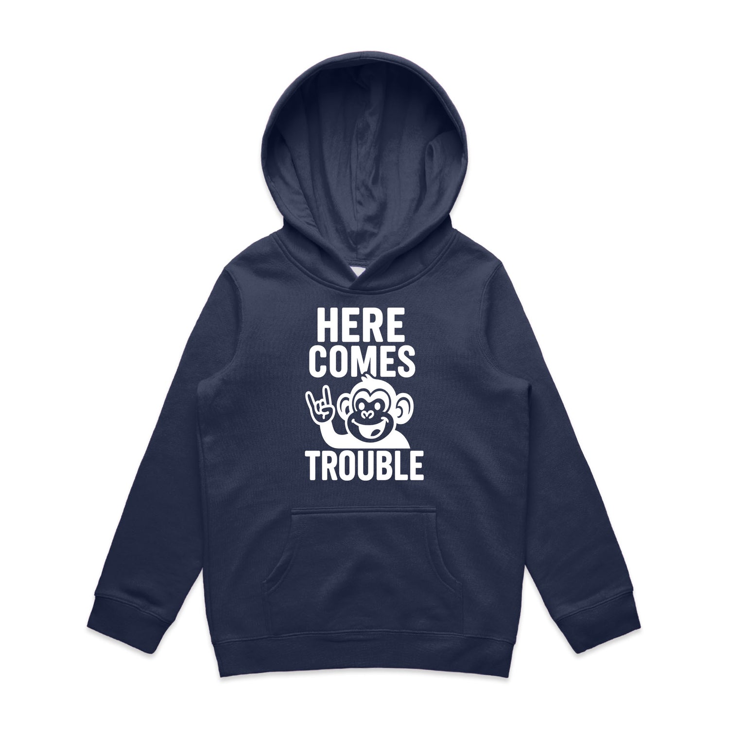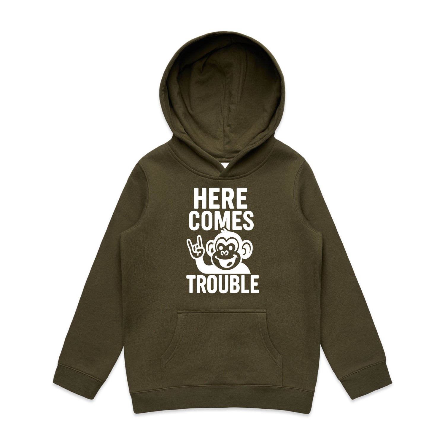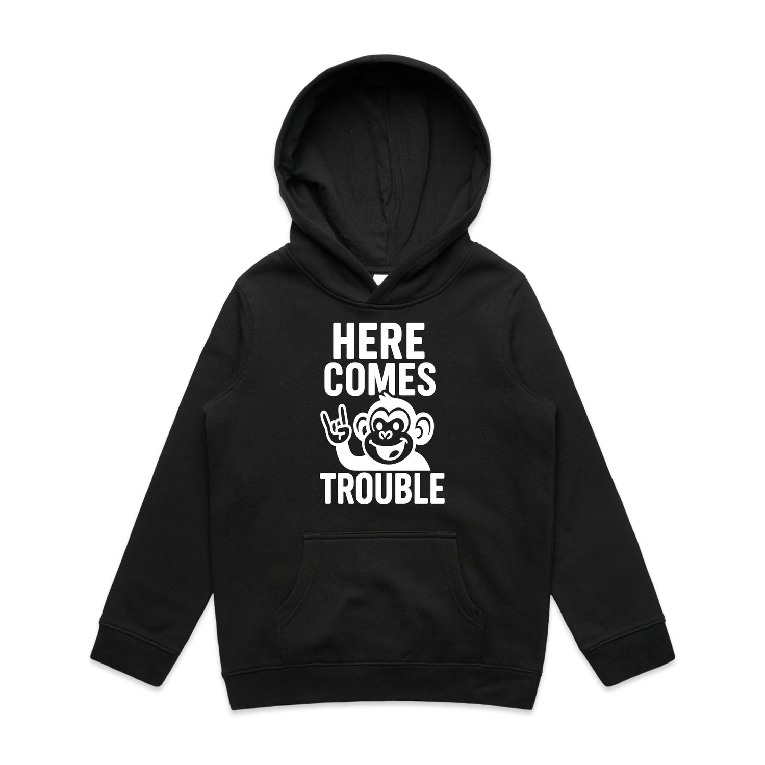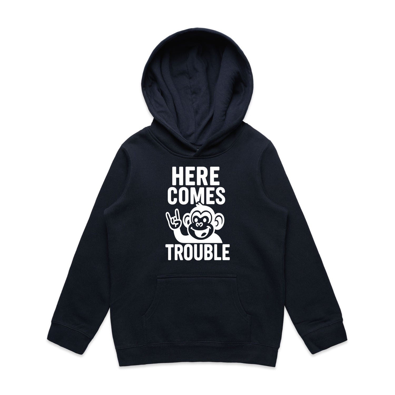 Here Comes Trouble Monkey – Kid's Hooded Sweatshirt