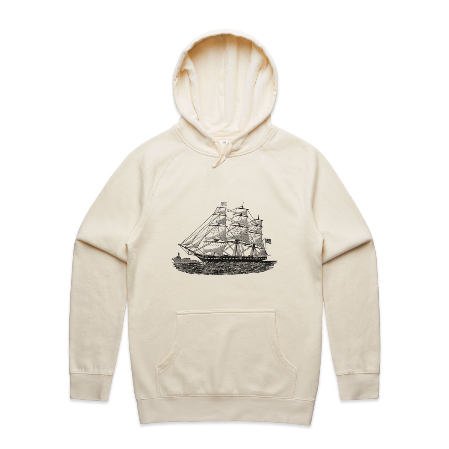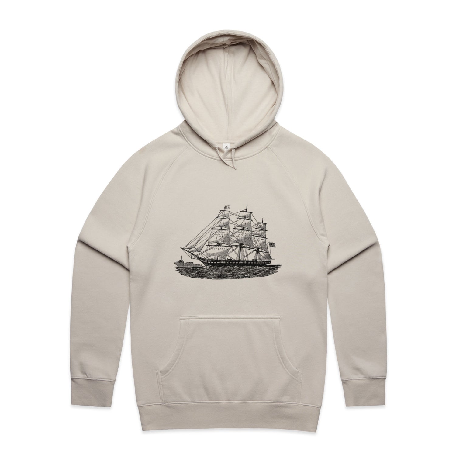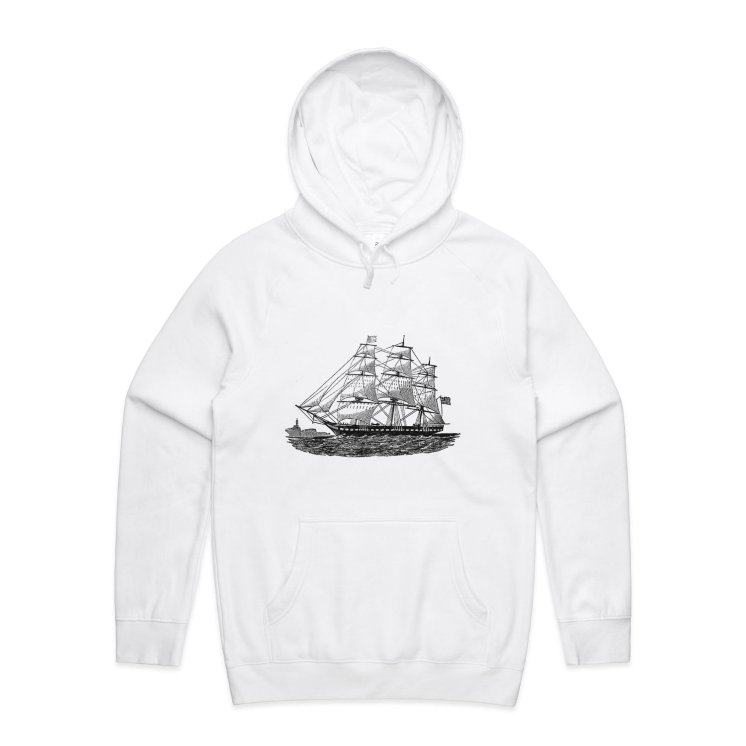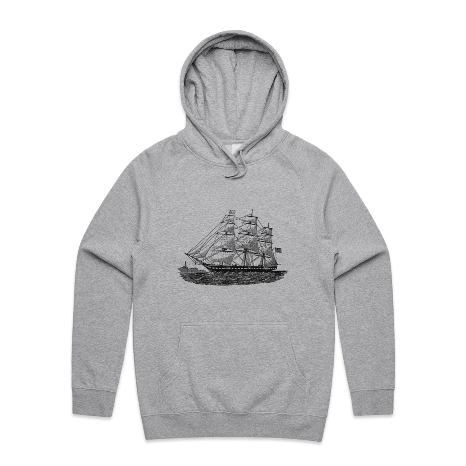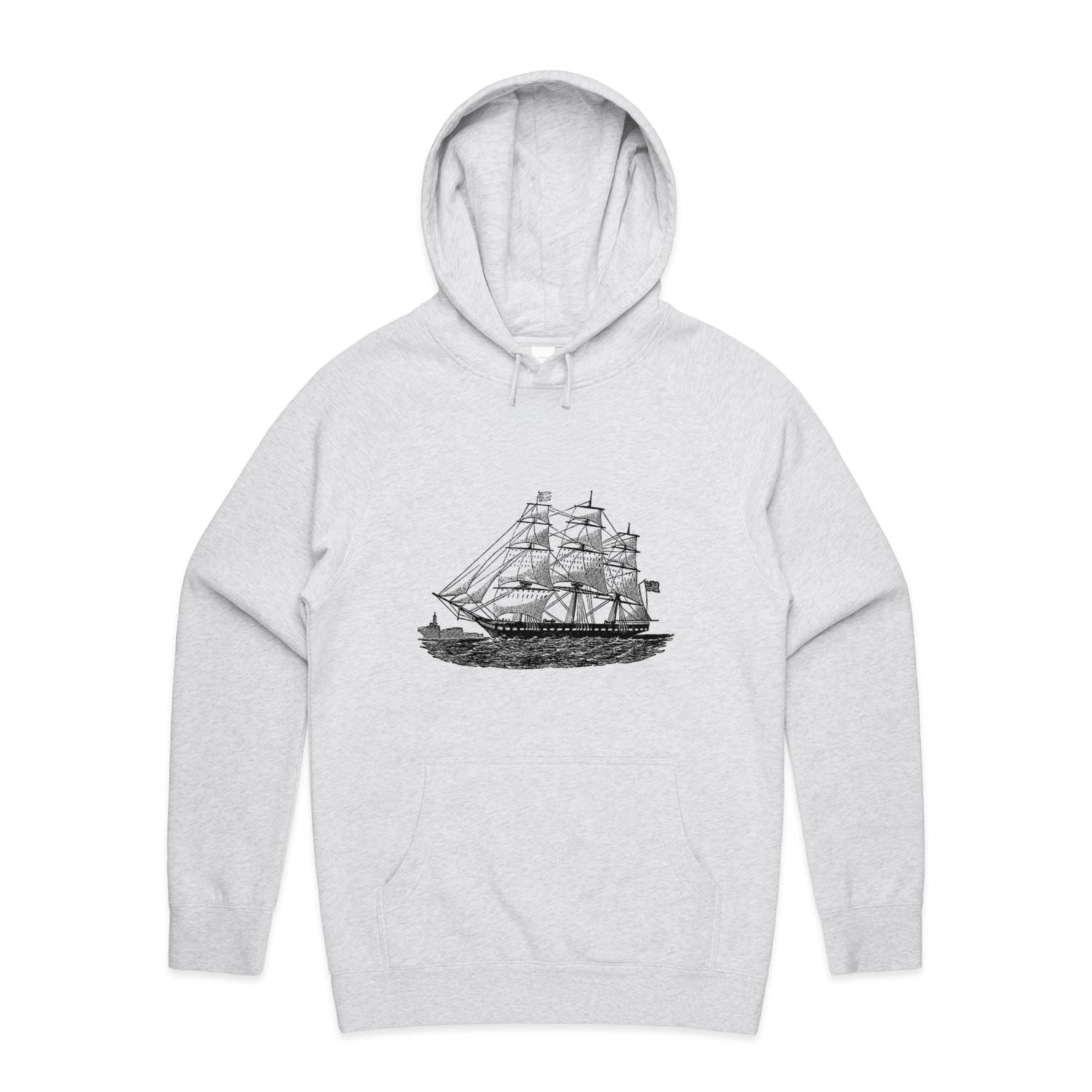 The Hoodies Historic Ship – Men's Hooded Sweatshirt is a high-quality men's hooded sweatshirt, printed with black ink on the trusted AS Colour Supply Hood 5101. With a regular fit and mid-weight feel, it's crafted from a premium blend of 80% cotton and 20% polyester anti-pill fleece, making it a durable and comfortable staple for any wardrobe. The pullover design features raglan sleeves, a lined hood with tonal drawcord, ribbed sleeve cuffs, and a roomy kangaroo pocket — all designed to keep you warm while looking effortlessly sharp.