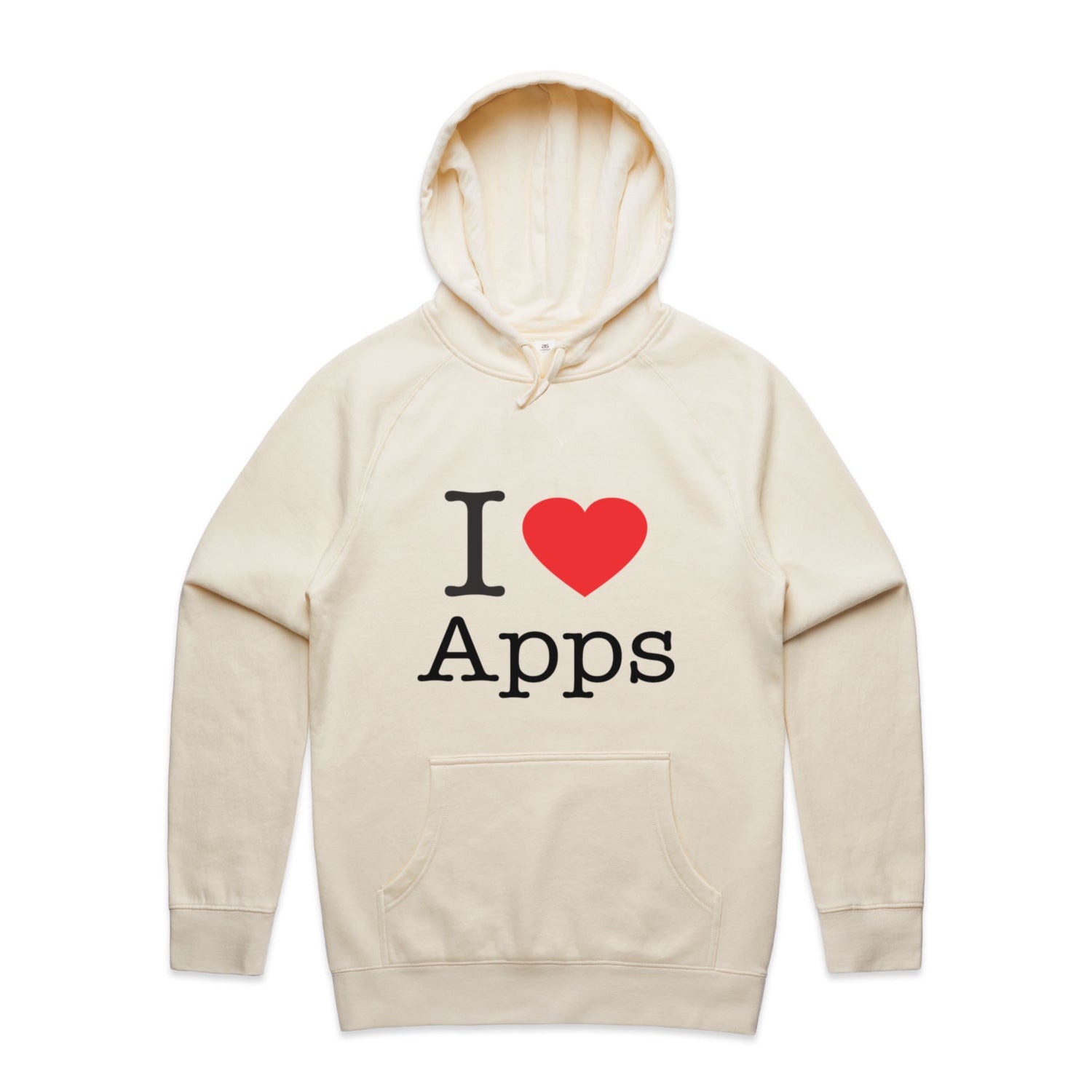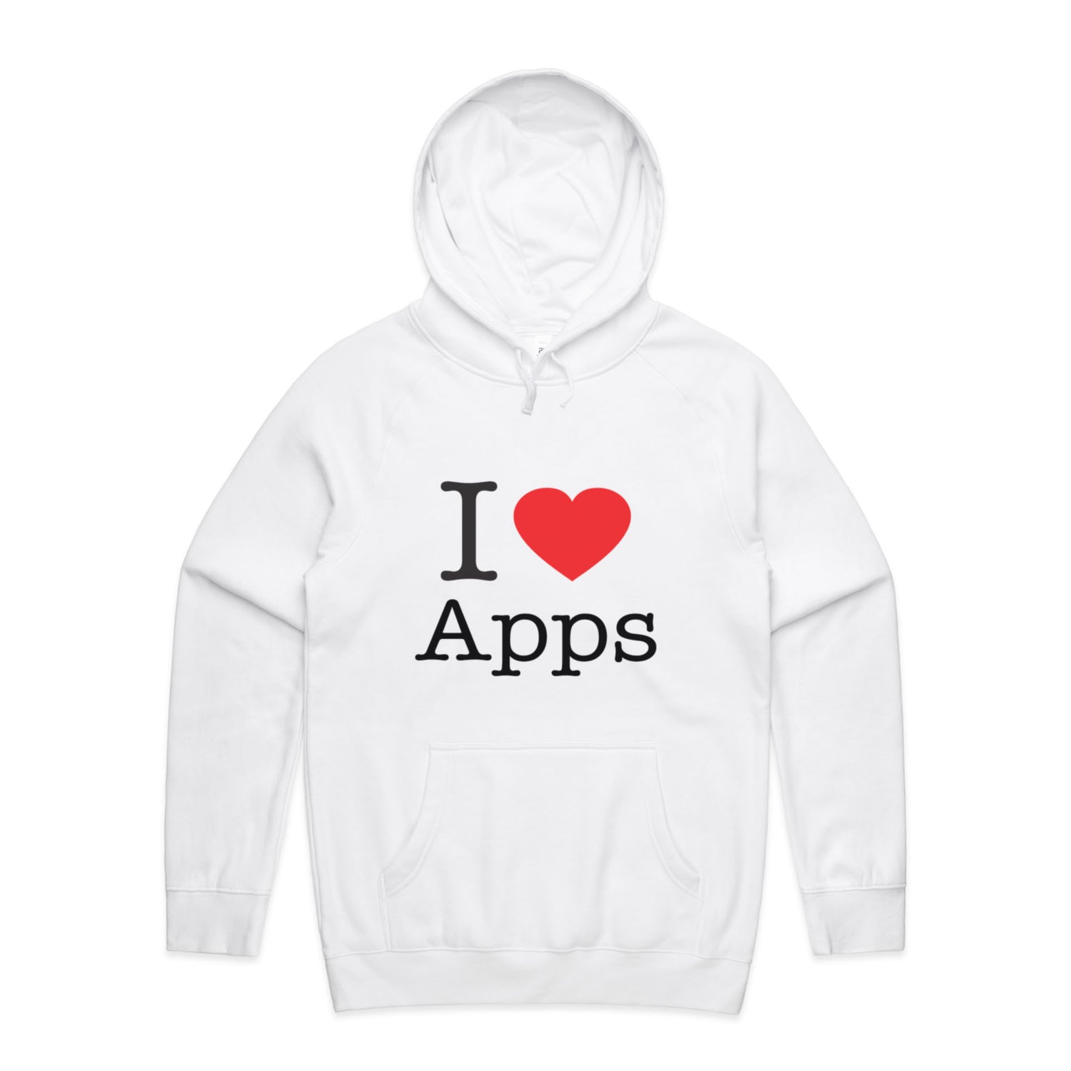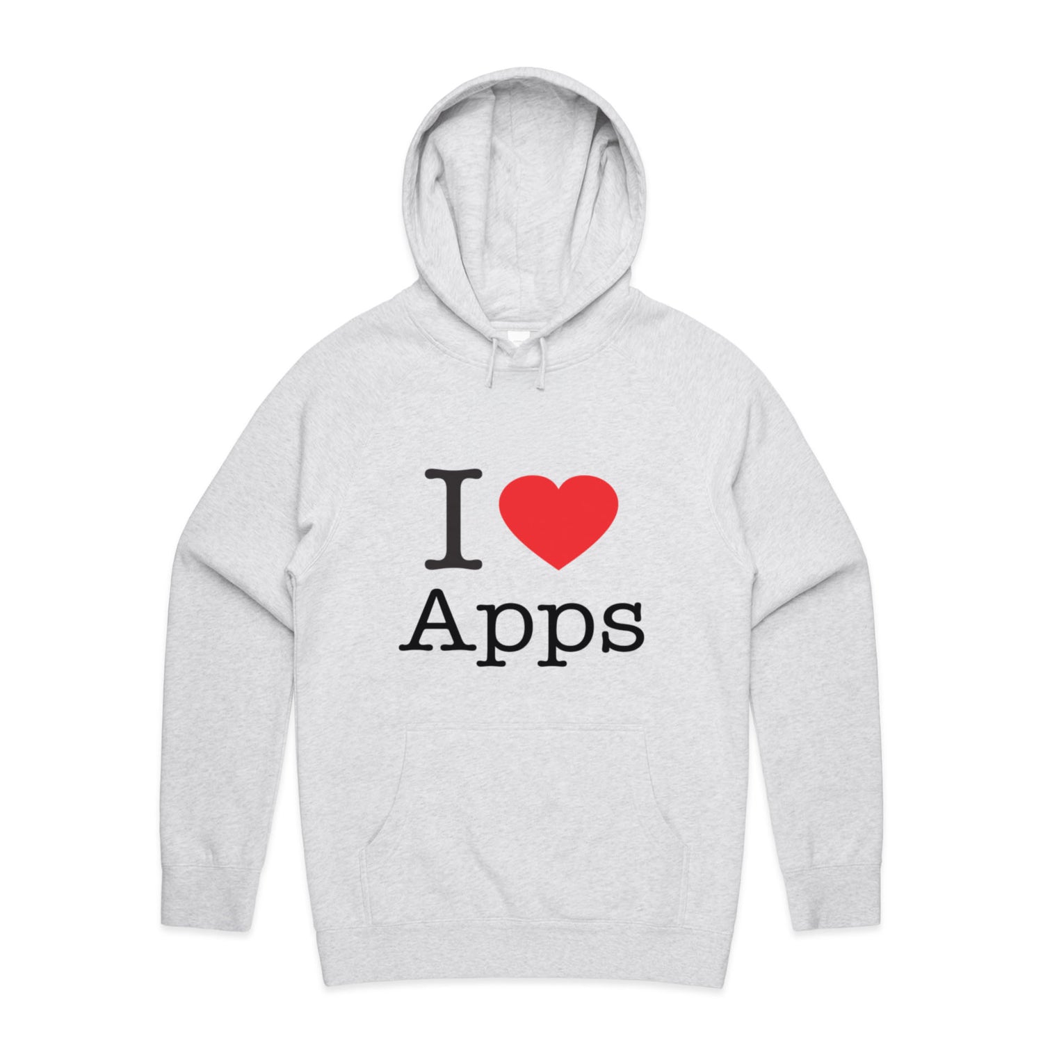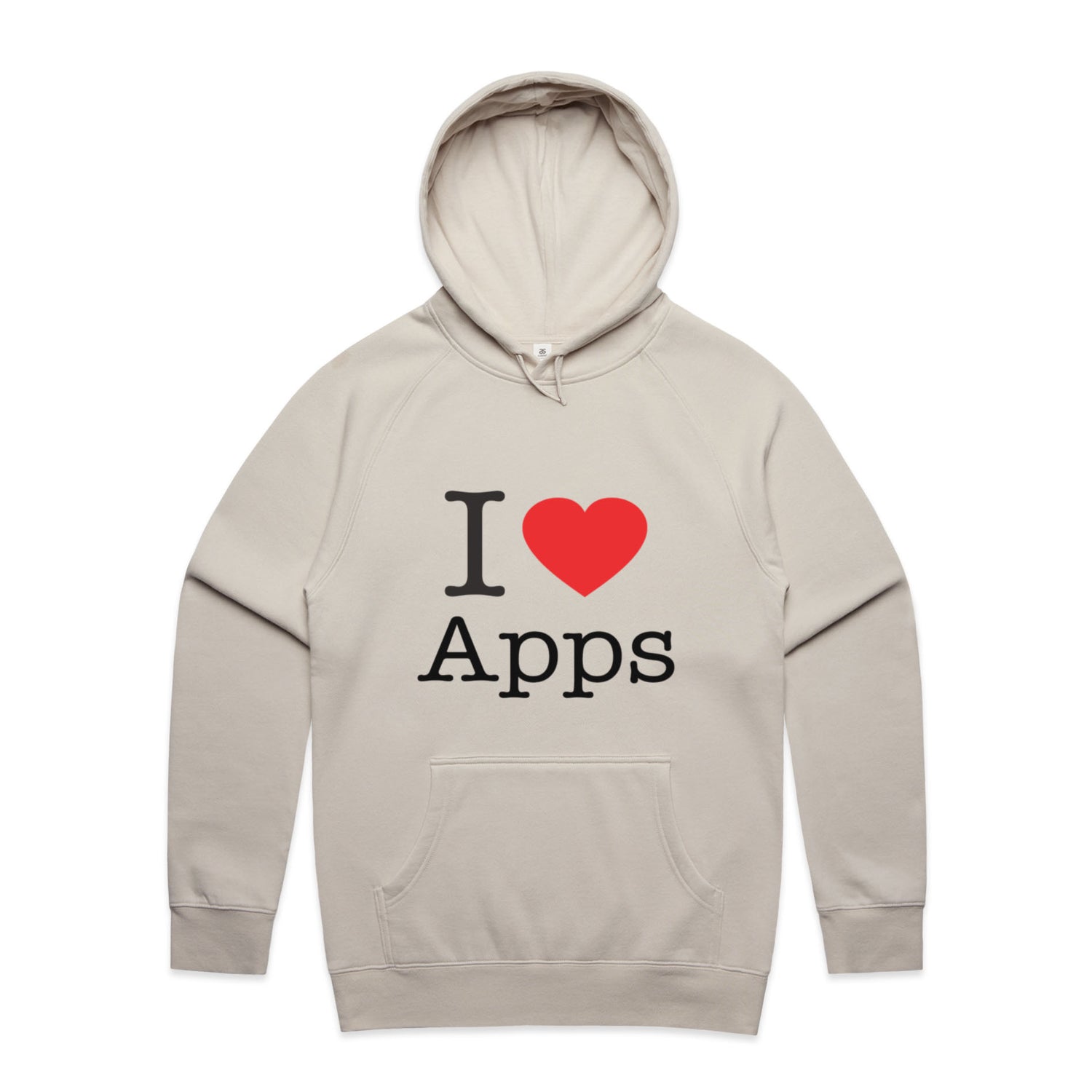 The Hoodies I Heart Apps – Men's Hooded Sweatshirt is a high-quality men's hooded sweatshirt, printed with black ink on the trusted AS Colour Supply Hood 5101. With a regular fit and mid-weight feel, it's crafted from a premium blend of 80% cotton and 20% polyester anti-pill fleece, making it a durable and comfortable staple for any wardrobe. The pullover design features raglan sleeves, a lined hood with tonal drawcord, ribbed sleeve cuffs, and a roomy kangaroo pocket — all designed to keep you warm while looking effortlessly sharp.