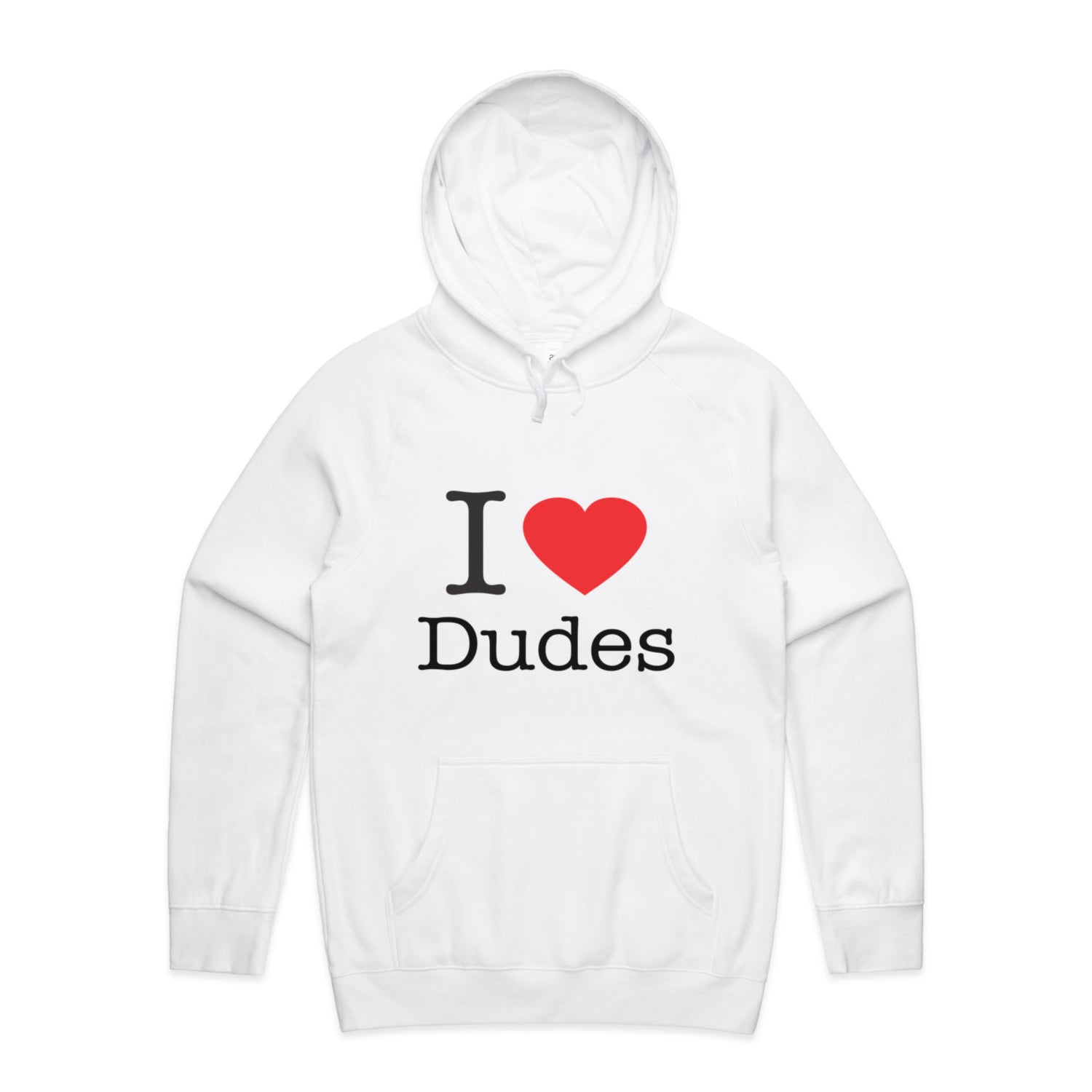 The Hoodies I Heart Dudes – Men's Hooded Sweatshirt is a high-quality men's hooded sweatshirt, printed with black ink on the trusted AS Colour Supply Hood 5101. With a regular fit and mid-weight feel, it's crafted from a premium blend of 80% cotton and 20% polyester anti-pill fleece, making it a durable and comfortable staple for any wardrobe. The pullover design features raglan sleeves, a lined hood with tonal drawcord, ribbed sleeve cuffs, and a roomy kangaroo pocket — all designed to keep you warm while looking effortlessly sharp.