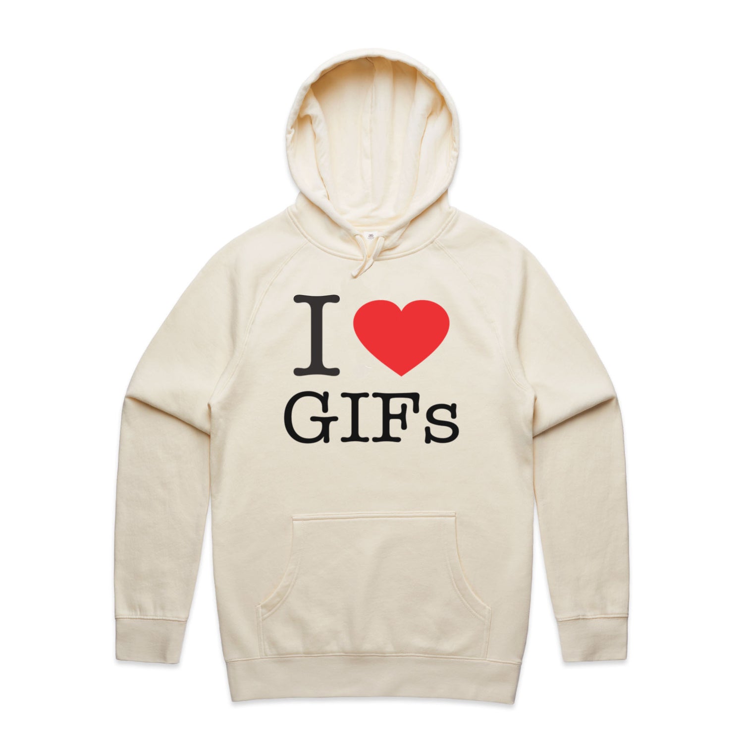 The Hoodies I Heart GIFs – Men's Hooded Sweatshirt is a high-quality men's hooded sweatshirt, printed with black ink on the trusted AS Colour Supply Hood 5101. With a regular fit and mid-weight feel, it's crafted from a premium blend of 80% cotton and 20% polyester anti-pill fleece, making it a durable and comfortable staple for any wardrobe. The pullover design features raglan sleeves, a lined hood with tonal drawcord, ribbed sleeve cuffs, and a roomy kangaroo pocket — all designed to keep you warm while looking effortlessly sharp.