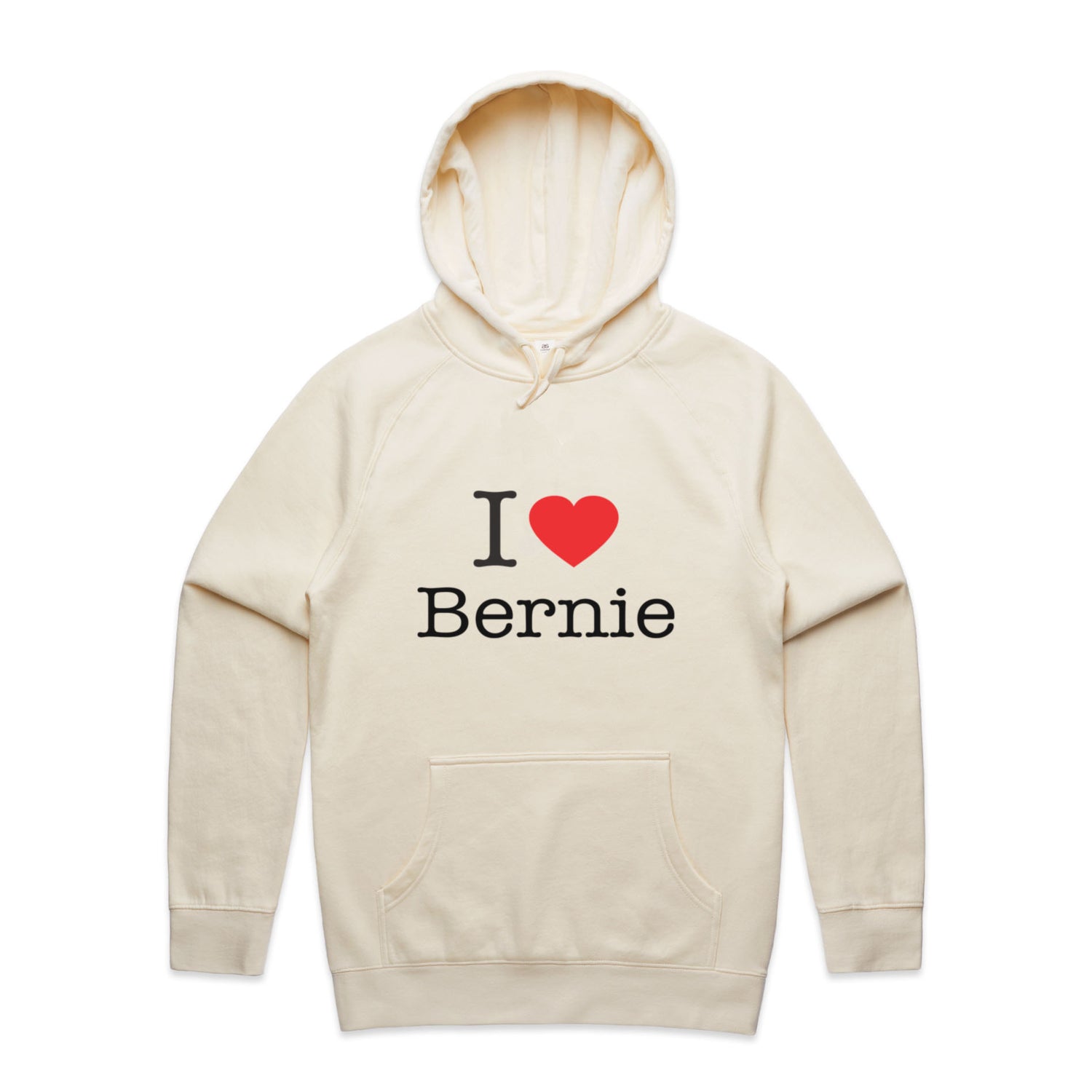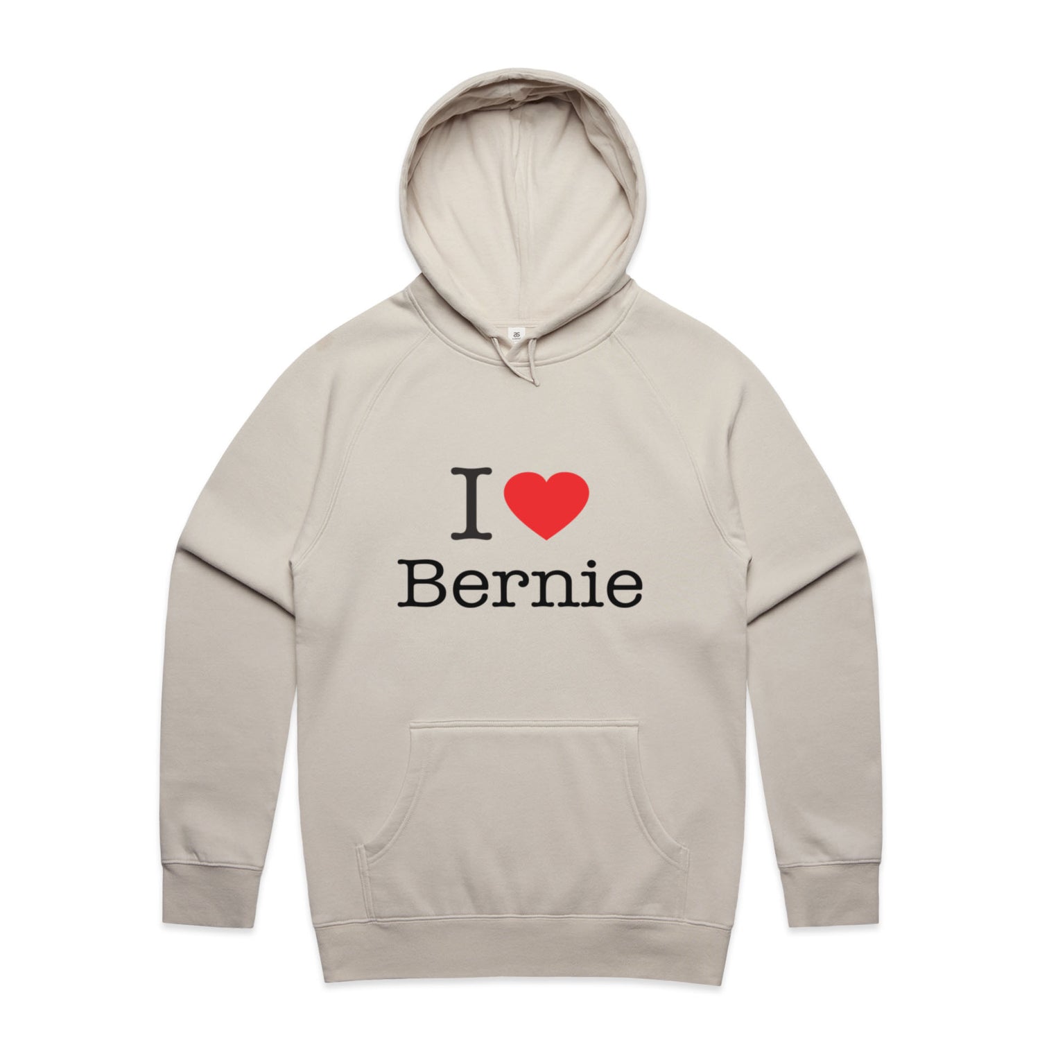 The Hoodies I Love Bernie – Men's Hooded Sweatshirt is a high-quality men's hooded sweatshirt, printed with black ink on the trusted AS Colour Supply Hood 5101. With a regular fit and mid-weight feel, it's crafted from a premium blend of 80% cotton and 20% polyester anti-pill fleece, making it a durable and comfortable staple for any wardrobe. The pullover design features raglan sleeves, a lined hood with tonal drawcord, ribbed sleeve cuffs, and a roomy kangaroo pocket — all designed to keep you warm while looking effortlessly sharp.