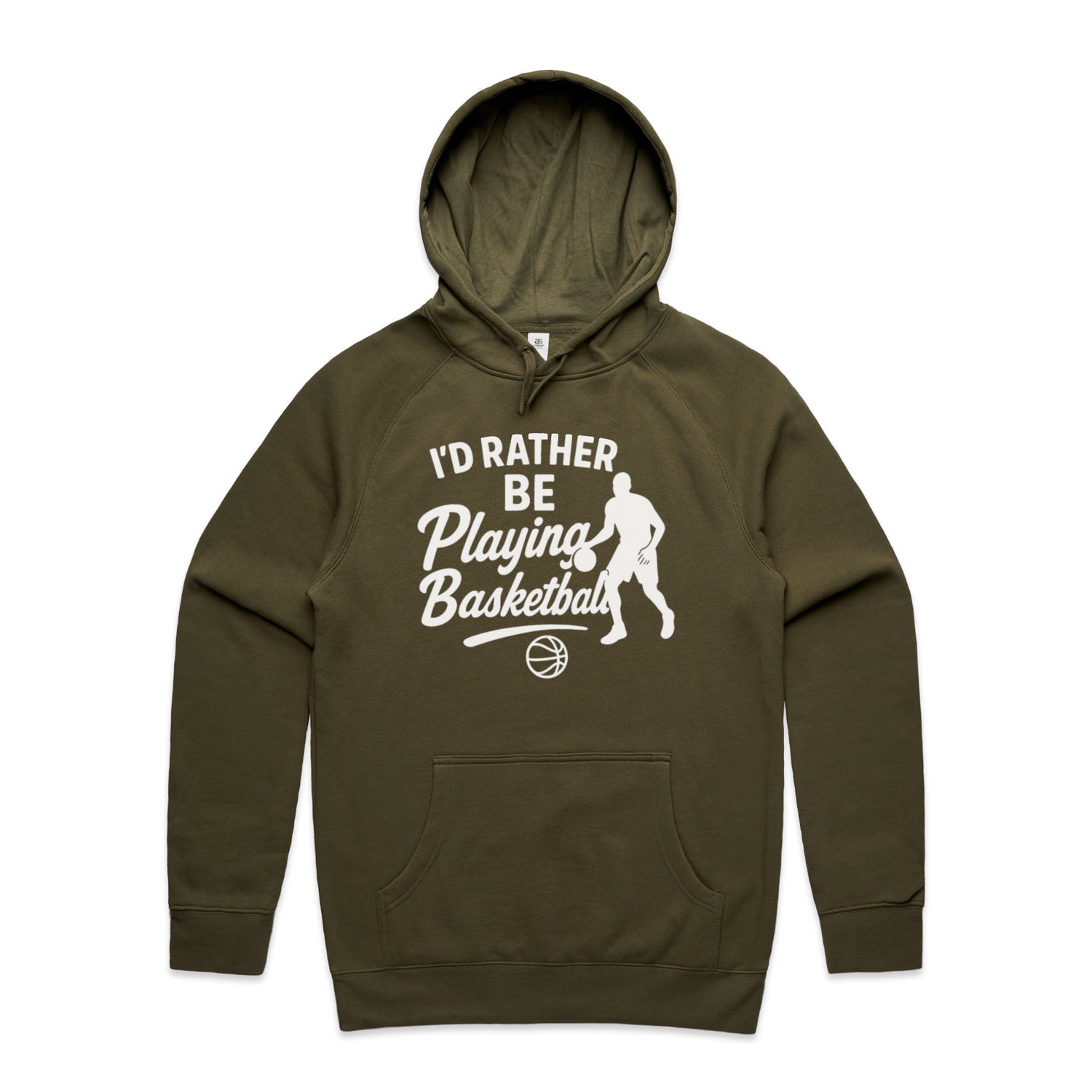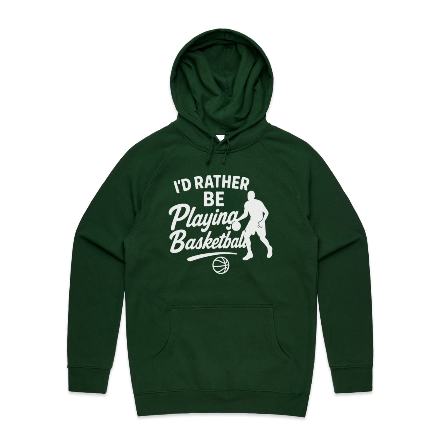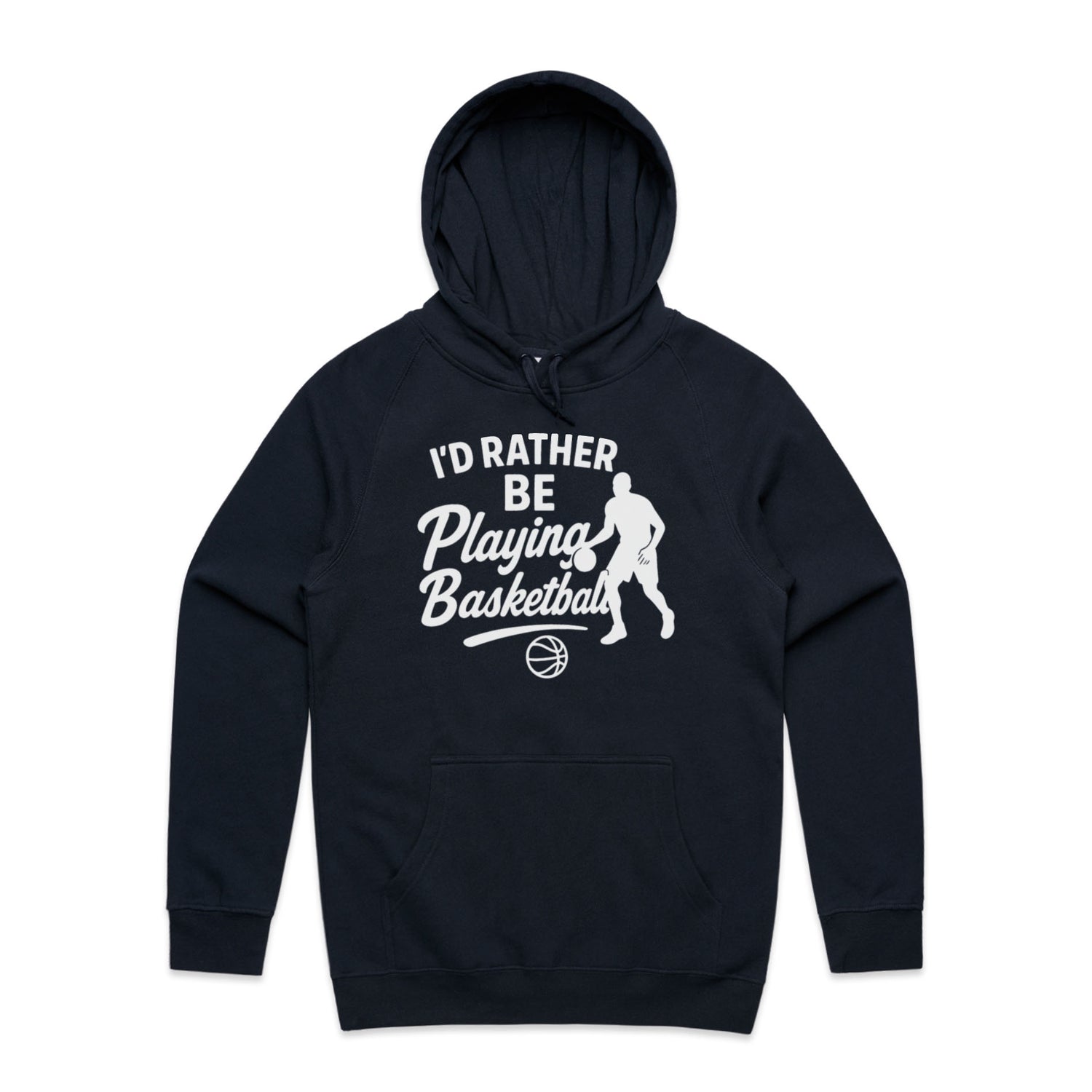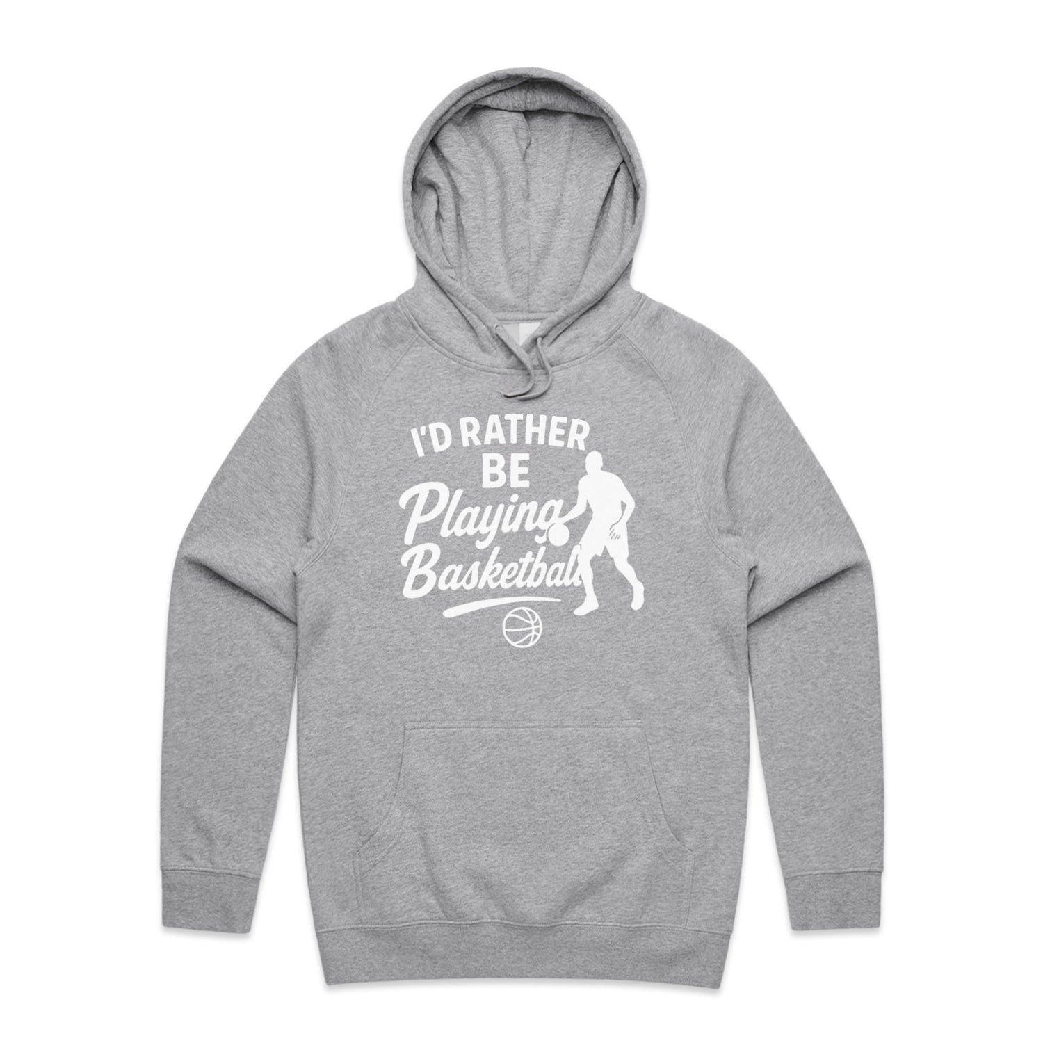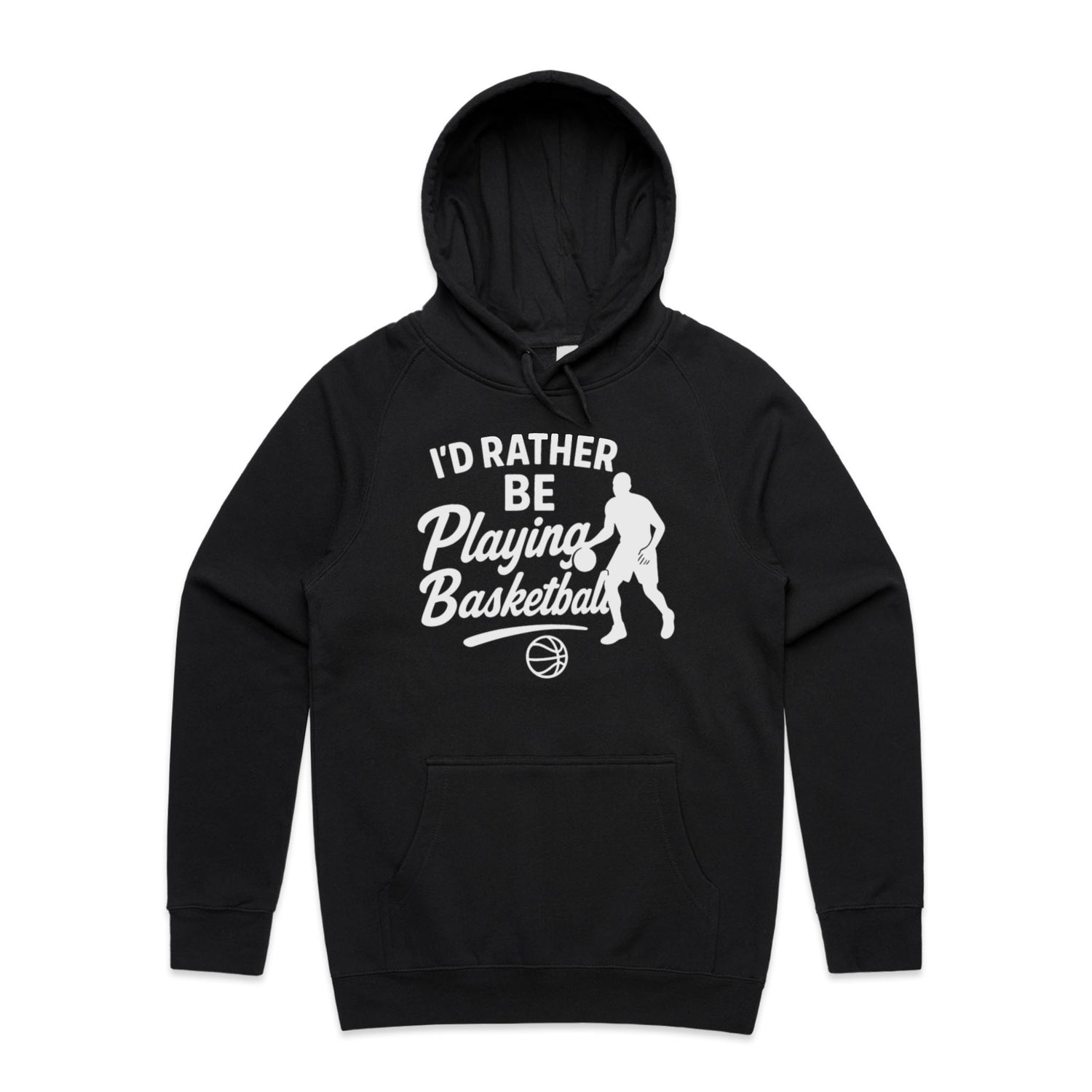 The Hoodies I'd Rather Be Playing Basketball – Men's Hooded Sweatshirt is a high-quality men's hooded sweatshirt, printed with white ink on the trusted AS Colour Supply Hood 5101. With a regular fit and mid-weight feel, it's crafted from a premium blend of 80% cotton and 20% polyester anti-pill fleece, making it a durable and comfortable staple for any wardrobe. The pullover design features raglan sleeves, a lined hood with tonal drawcord, ribbed sleeve cuffs, and a roomy kangaroo pocket — all designed to keep you warm while looking effortlessly sharp.