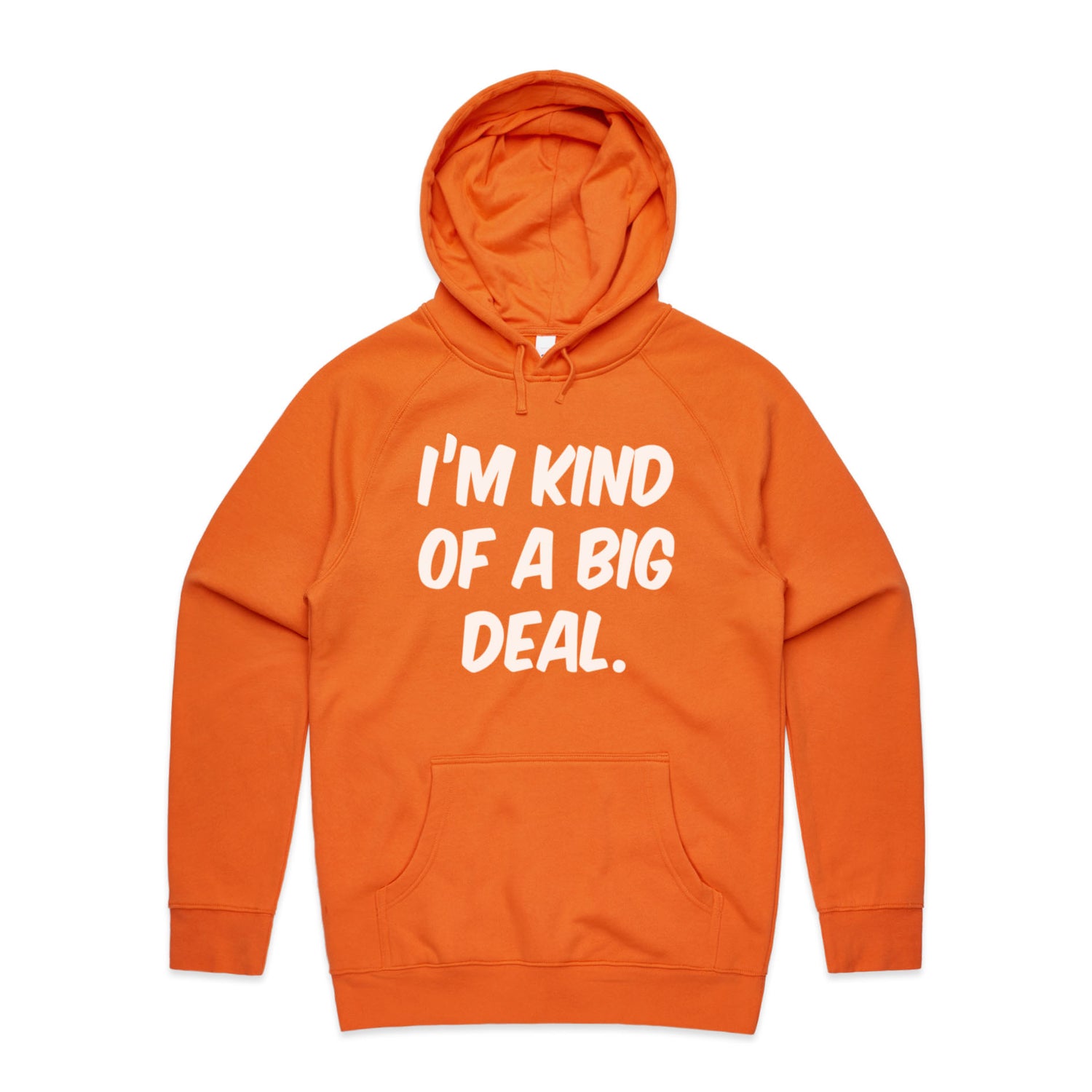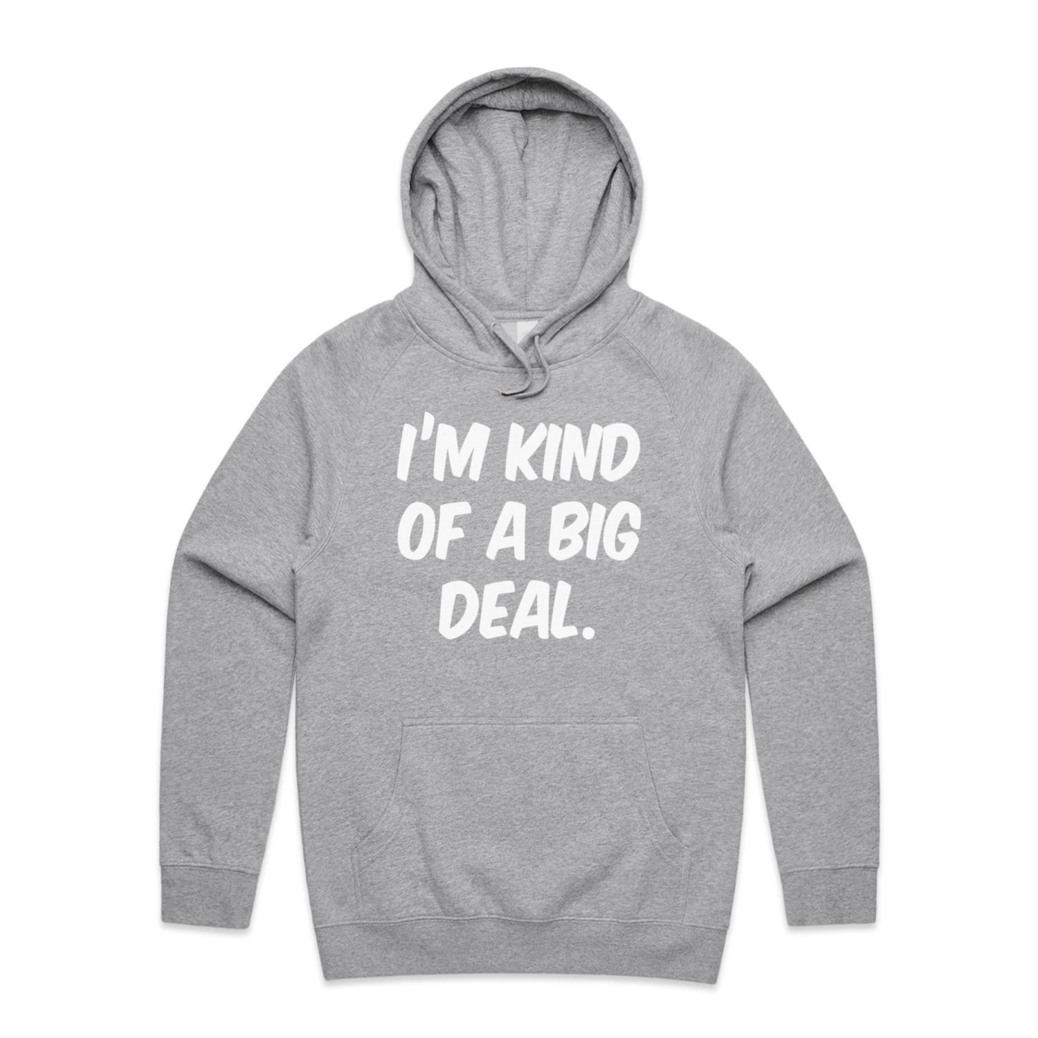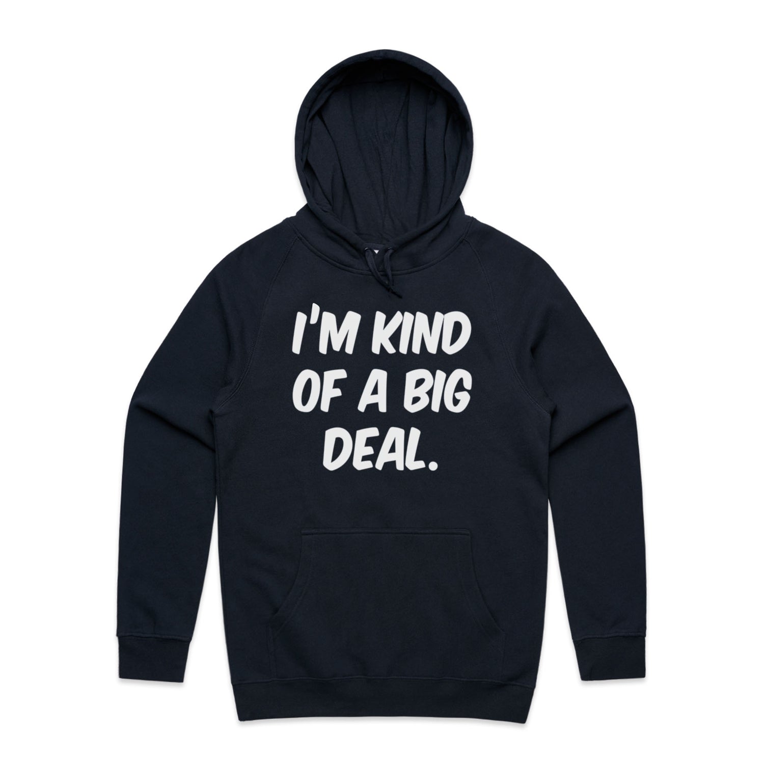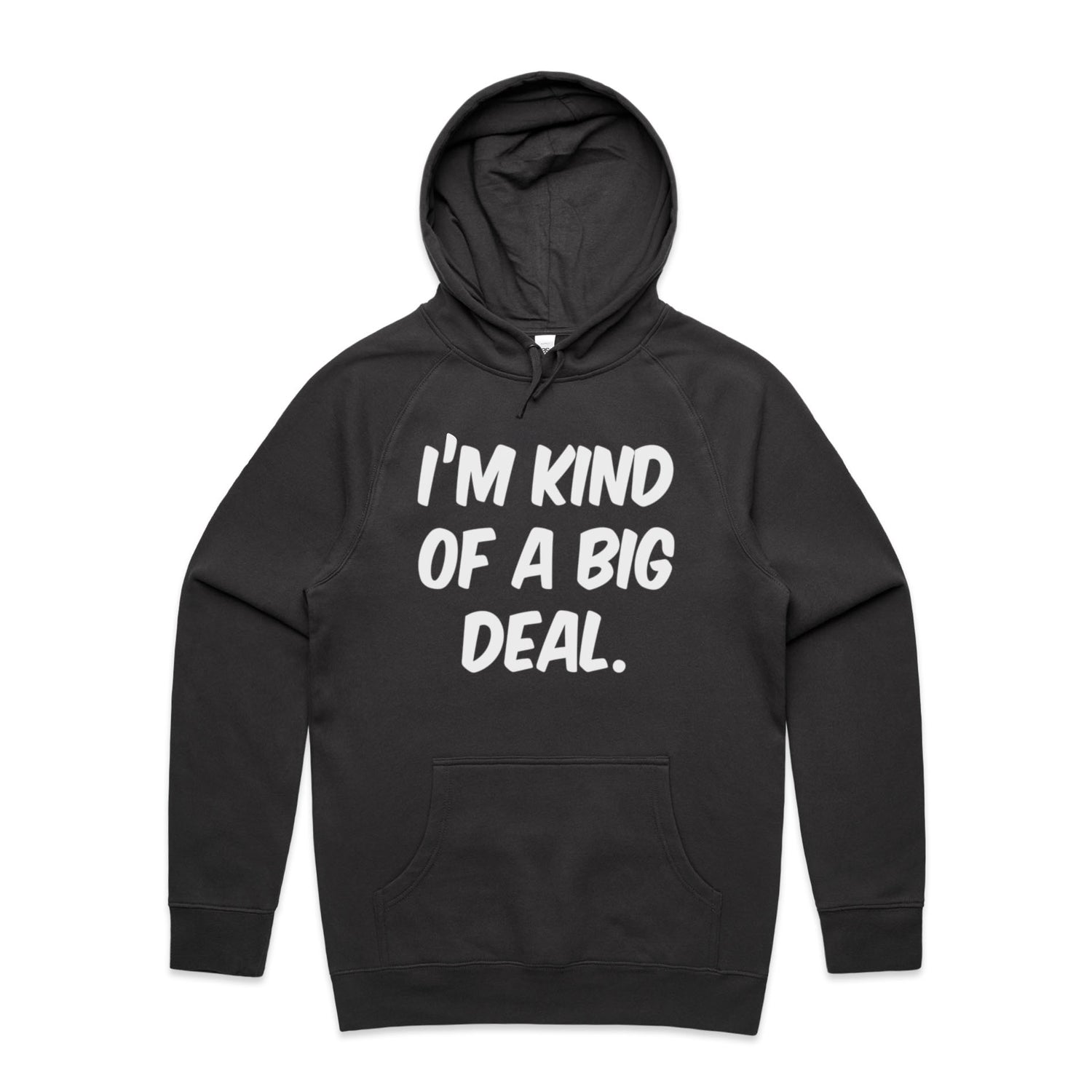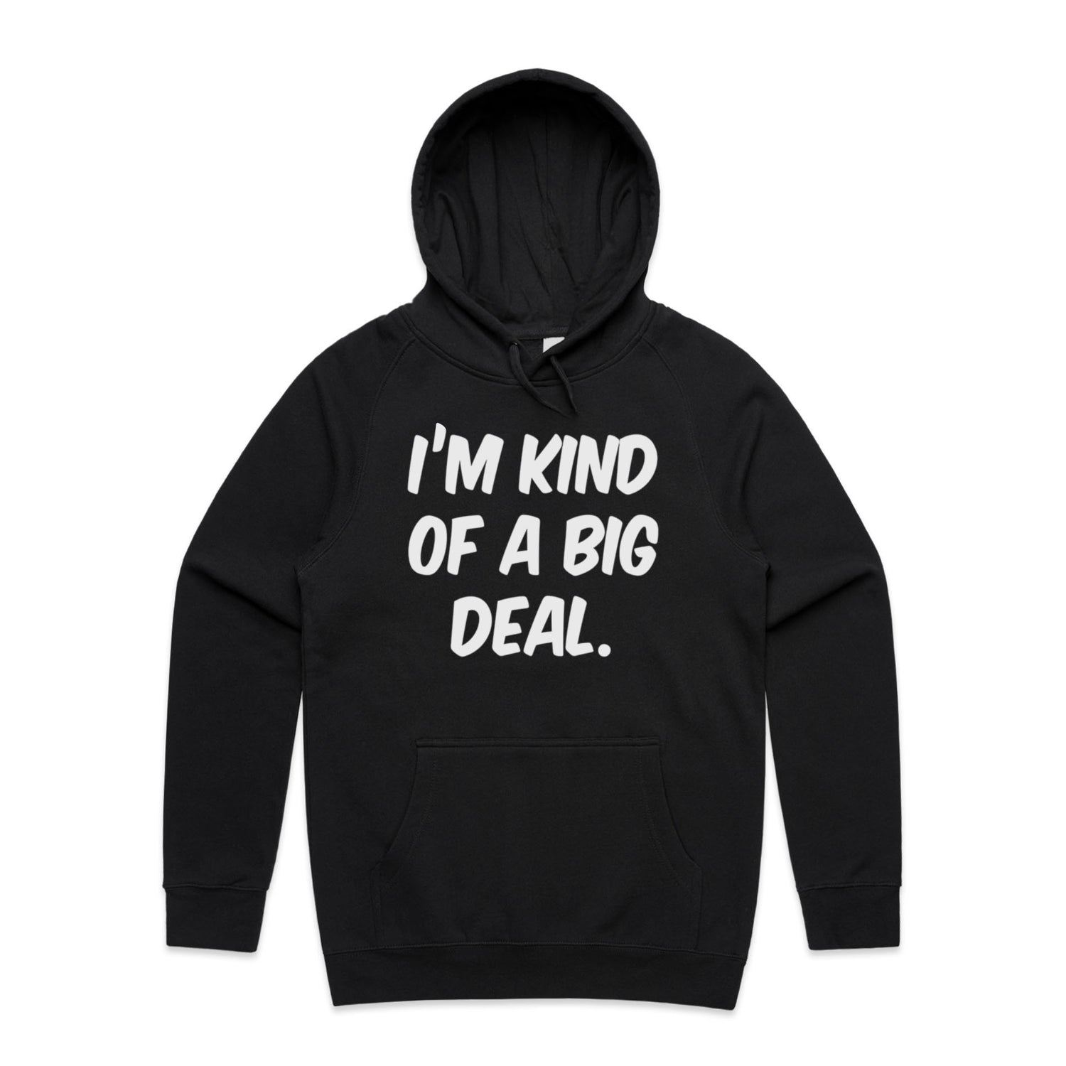 The Hoodies Im Kind of a Big Deal – Men's Hooded Sweatshirt is a high-quality men's hooded sweatshirt, printed with white ink on the trusted AS Colour Supply Hood 5101. With a regular fit and mid-weight feel, it's crafted from a premium blend of 80% cotton and 20% polyester anti-pill fleece, making it a durable and comfortable staple for any wardrobe. The pullover design features raglan sleeves, a lined hood with tonal drawcord, ribbed sleeve cuffs, and a roomy kangaroo pocket — all designed to keep you warm while looking effortlessly sharp.