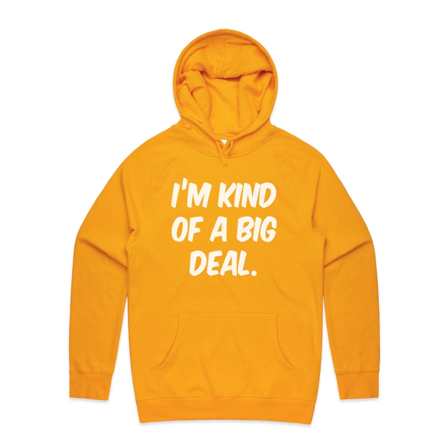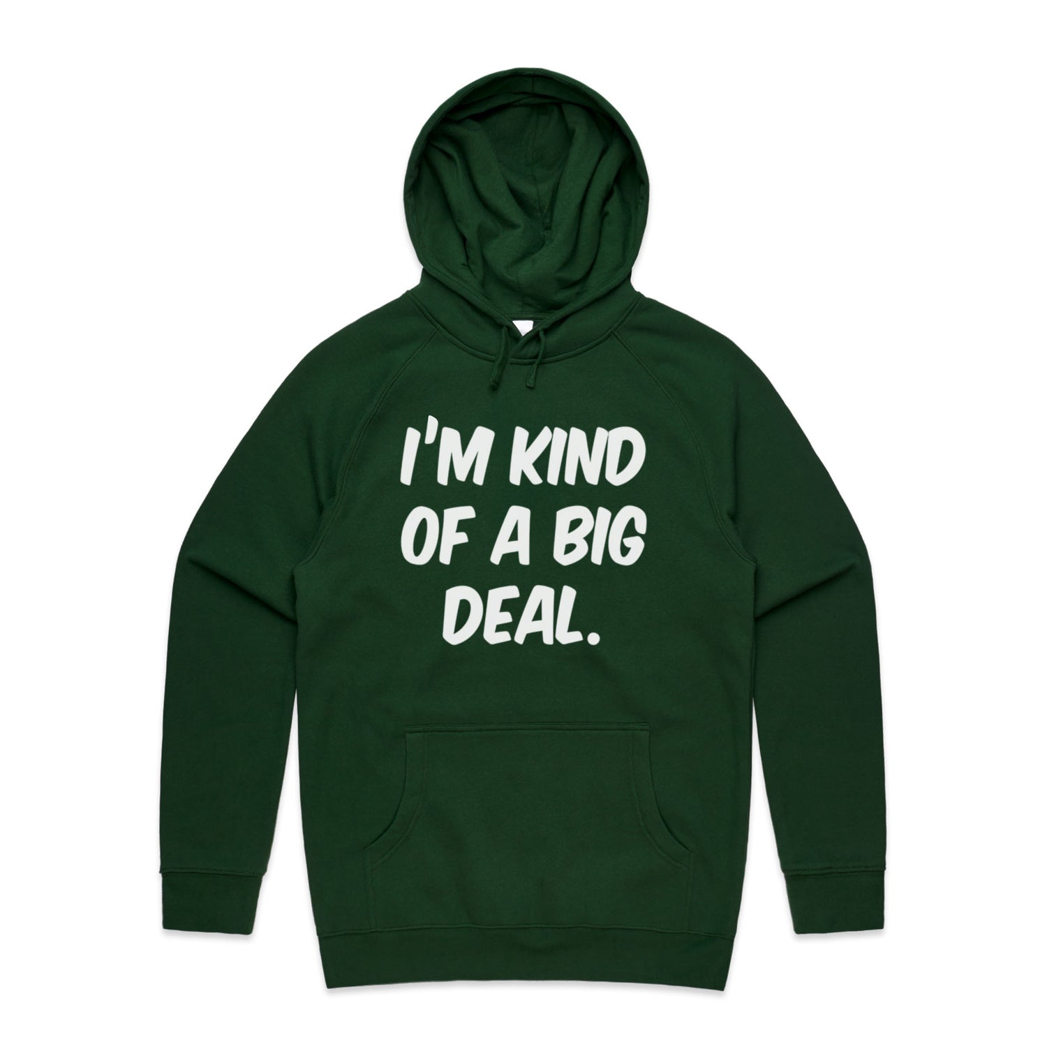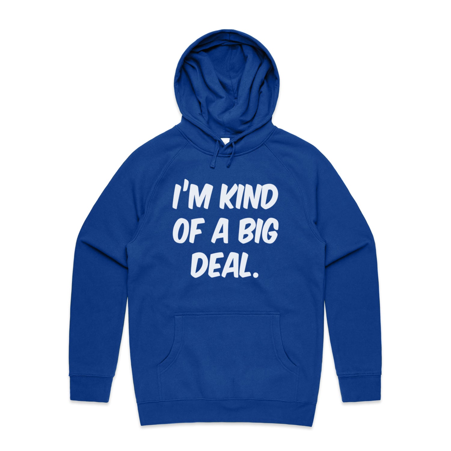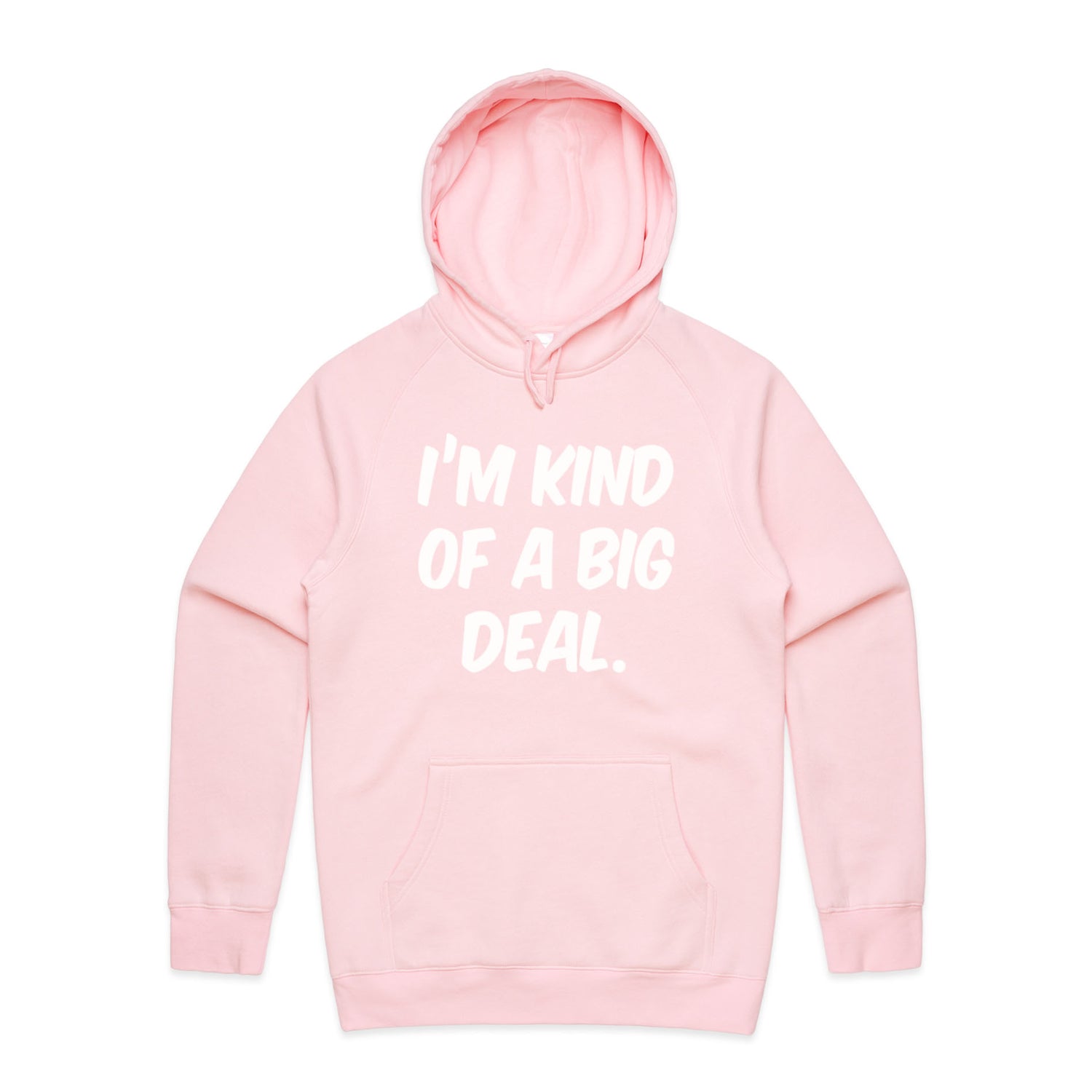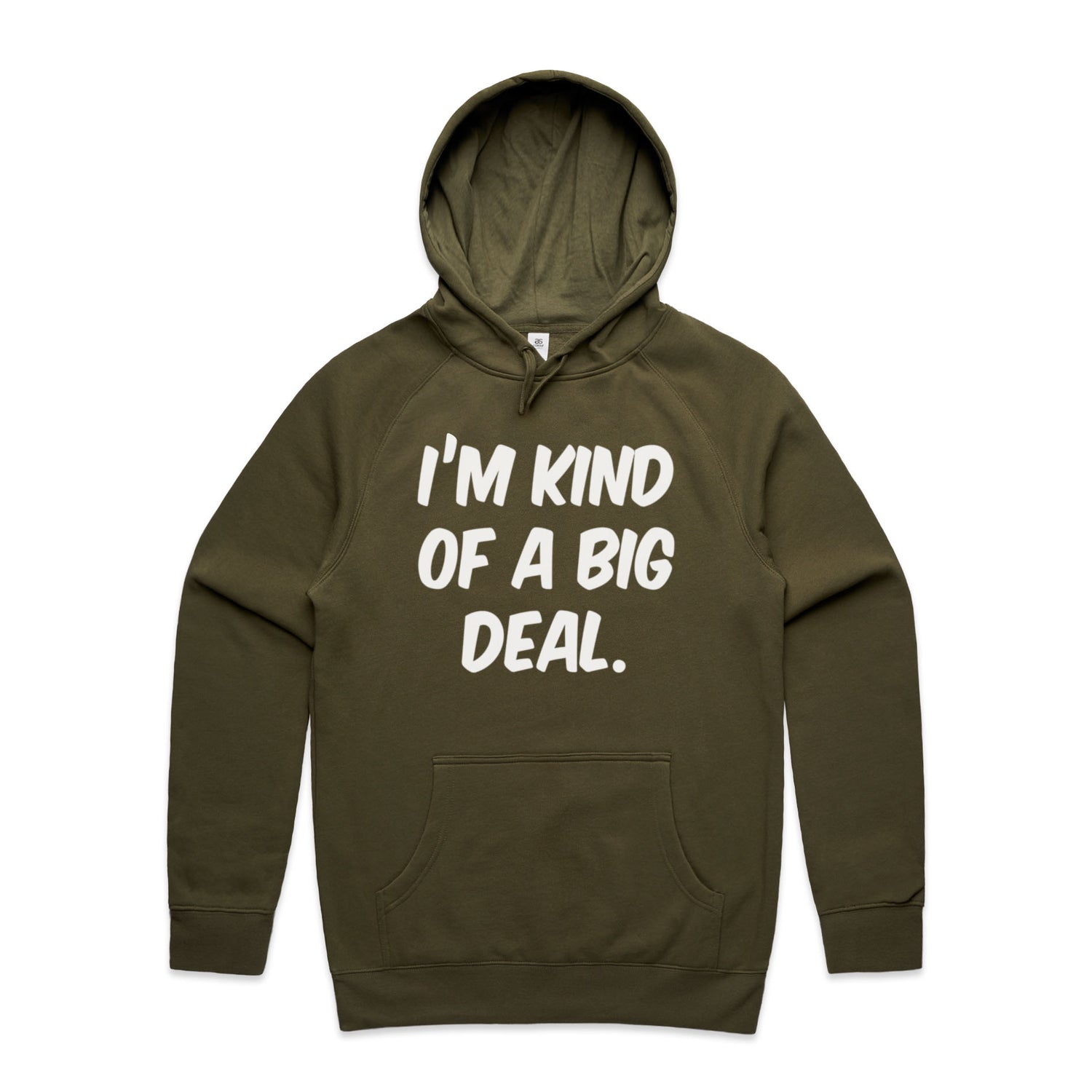 The Hoodies Im Kind of a Big Deal – Men's Hooded Sweatshirt is a high-quality men's hooded sweatshirt, printed with white ink on the trusted AS Colour Supply Hood 5101. With a regular fit and mid-weight feel, it's crafted from a premium blend of 80% cotton and 20% polyester anti-pill fleece, making it a durable and comfortable staple for any wardrobe. The pullover design features raglan sleeves, a lined hood with tonal drawcord, ribbed sleeve cuffs, and a roomy kangaroo pocket — all designed to keep you warm while looking effortlessly sharp.