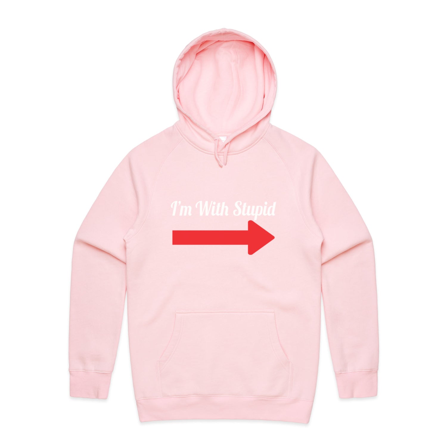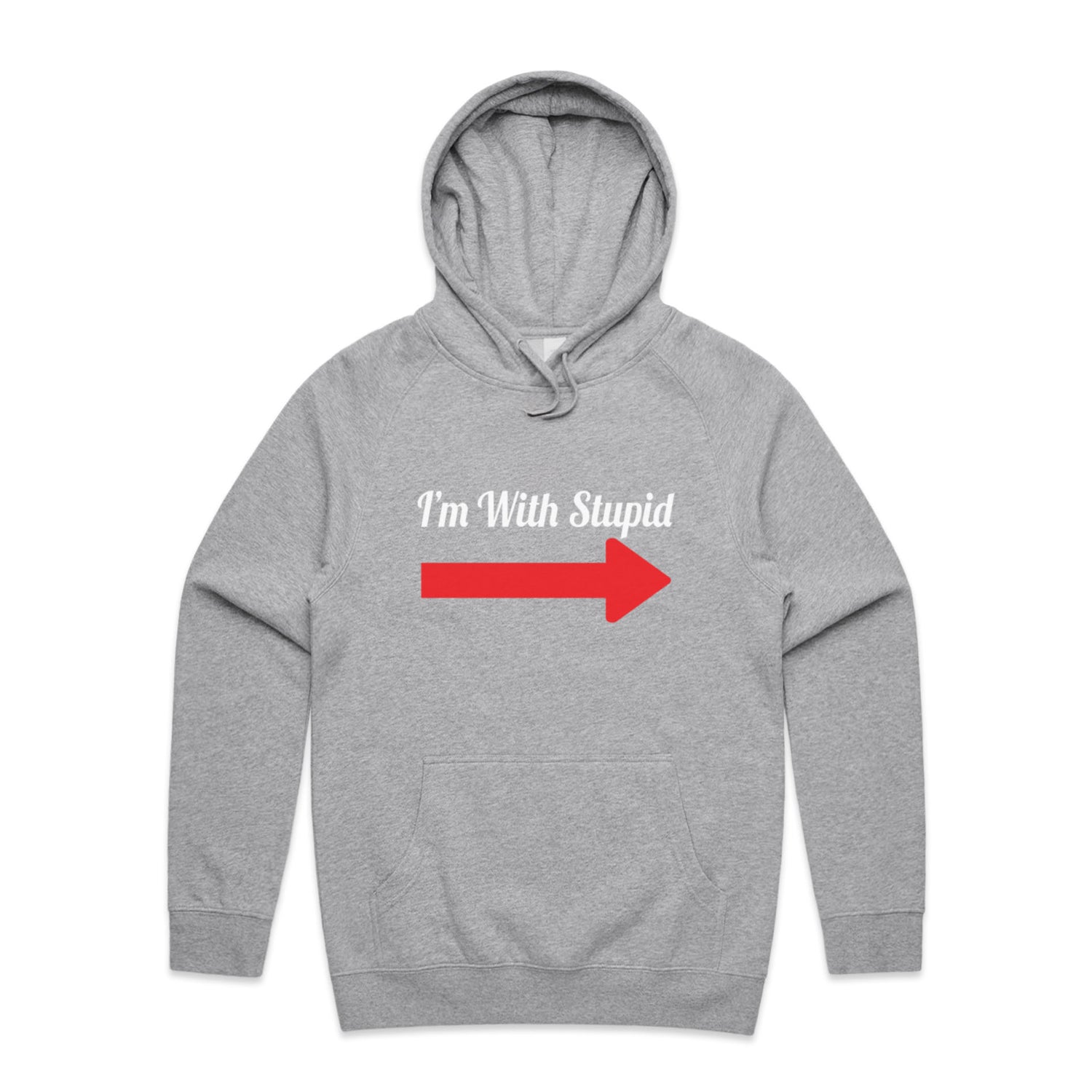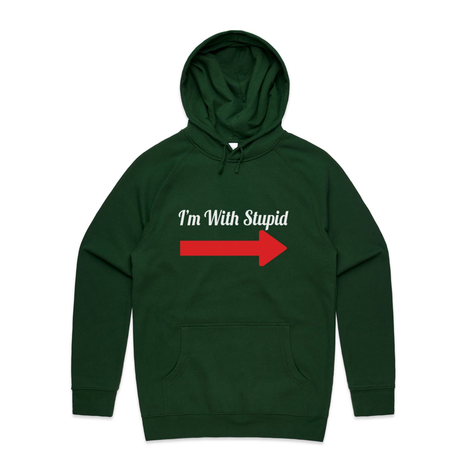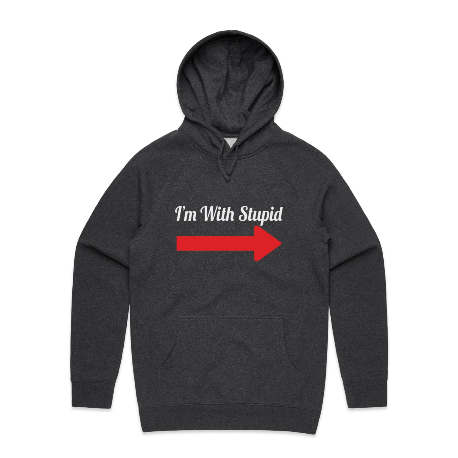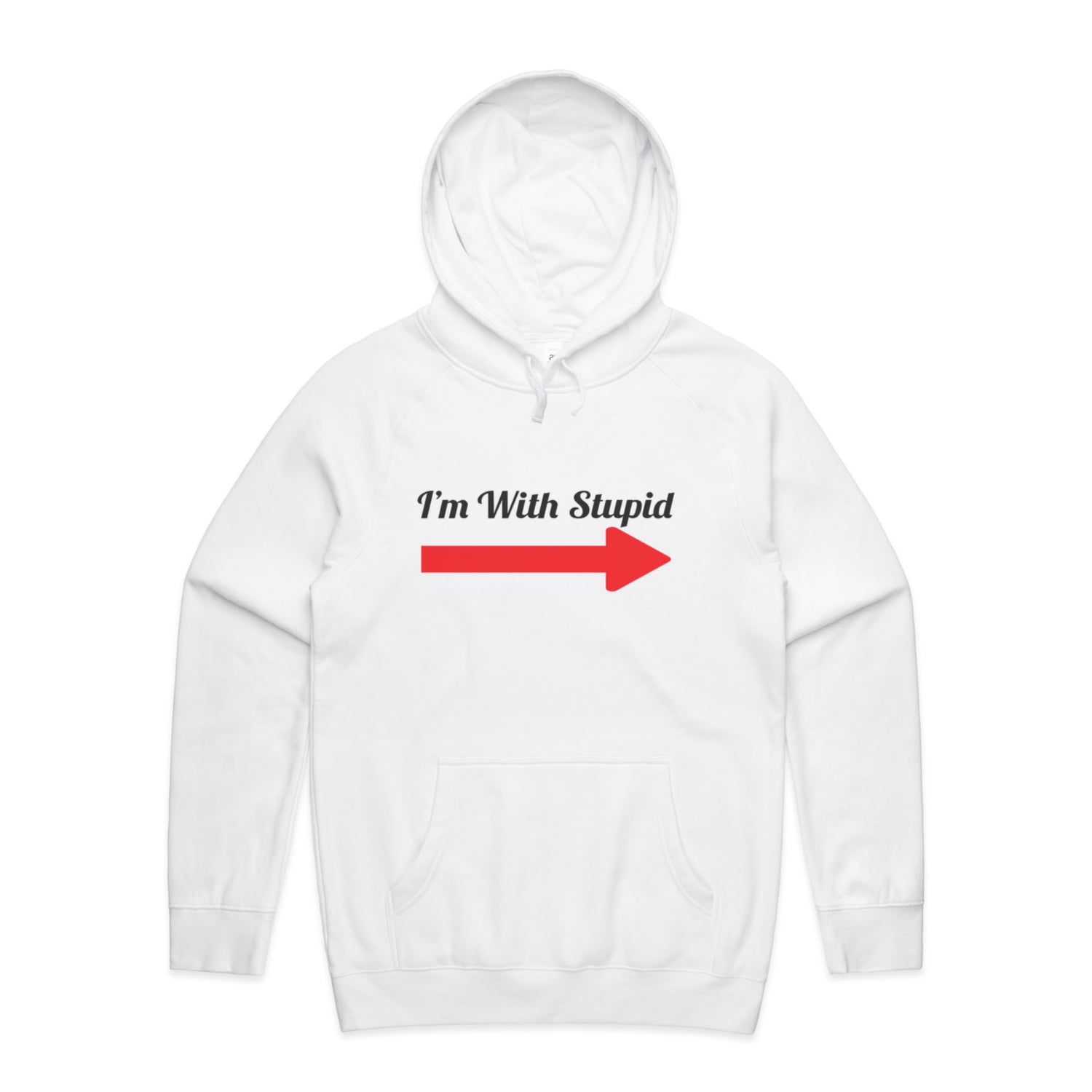 The Hoodies Im Wtith Stupid – Men's Hooded Sweatshirt is a high-quality men's hooded sweatshirt, printed with black ink on the trusted AS Colour Supply Hood 5101. With a regular fit and mid-weight feel, it's crafted from a premium blend of 80% cotton and 20% polyester anti-pill fleece, making it a durable and comfortable staple for any wardrobe. The pullover design features raglan sleeves, a lined hood with tonal drawcord, ribbed sleeve cuffs, and a roomy kangaroo pocket — all designed to keep you warm while looking effortlessly sharp.