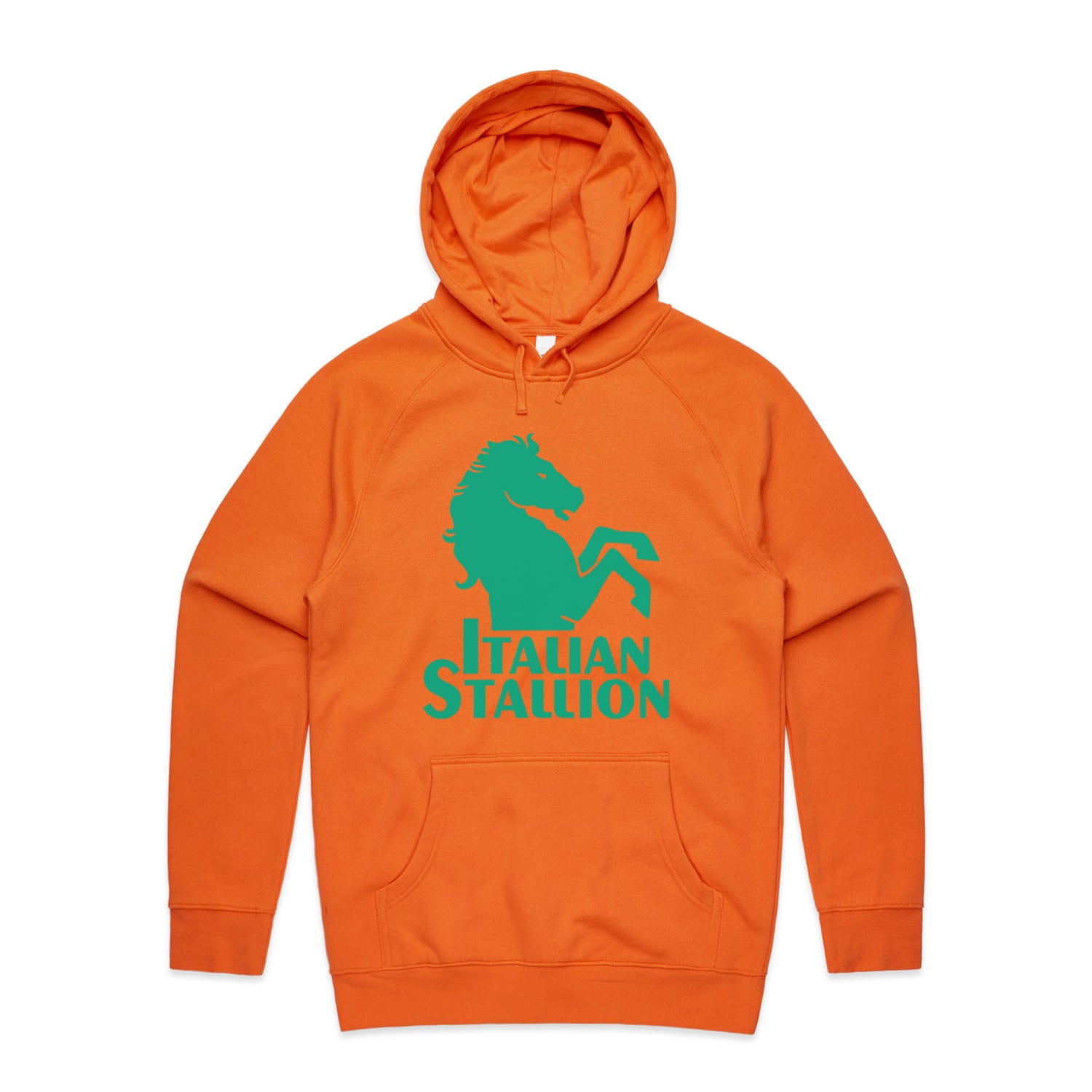 The Hoodies Italian Stallion Baby – Men's Hooded Sweatshirt is a high-quality men's hooded sweatshirt, printed with green ink on the trusted AS Colour Supply Hood 5101. With a regular fit and mid-weight feel, it's crafted from a premium blend of 80% cotton and 20% polyester anti-pill fleece, making it a durable and comfortable staple for any wardrobe. The pullover design features raglan sleeves, a lined hood with tonal drawcord, ribbed sleeve cuffs, and a roomy kangaroo pocket — all designed to keep you warm while looking effortlessly sharp.
