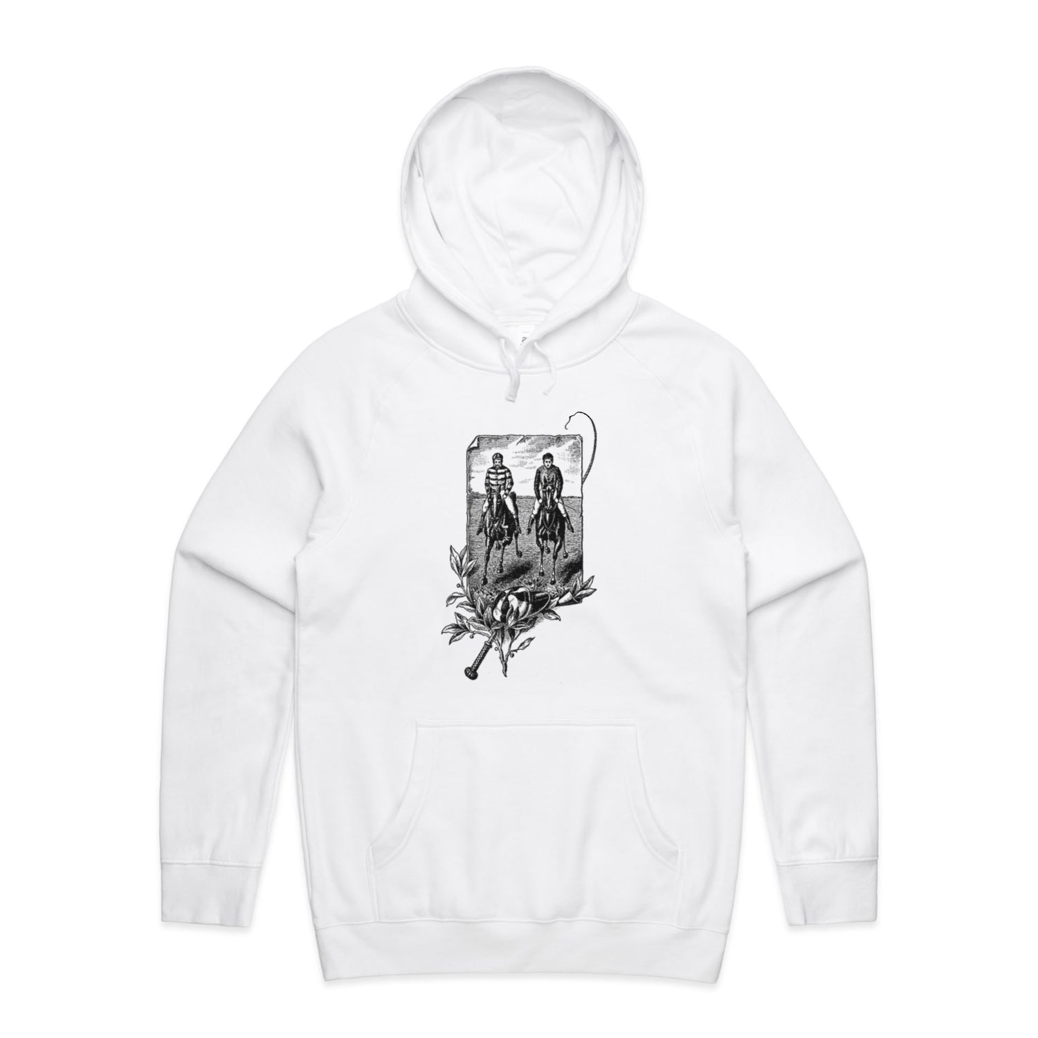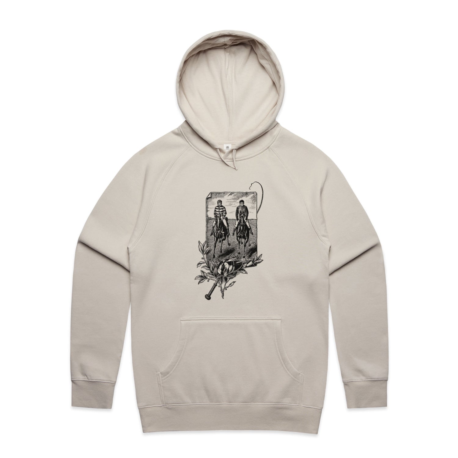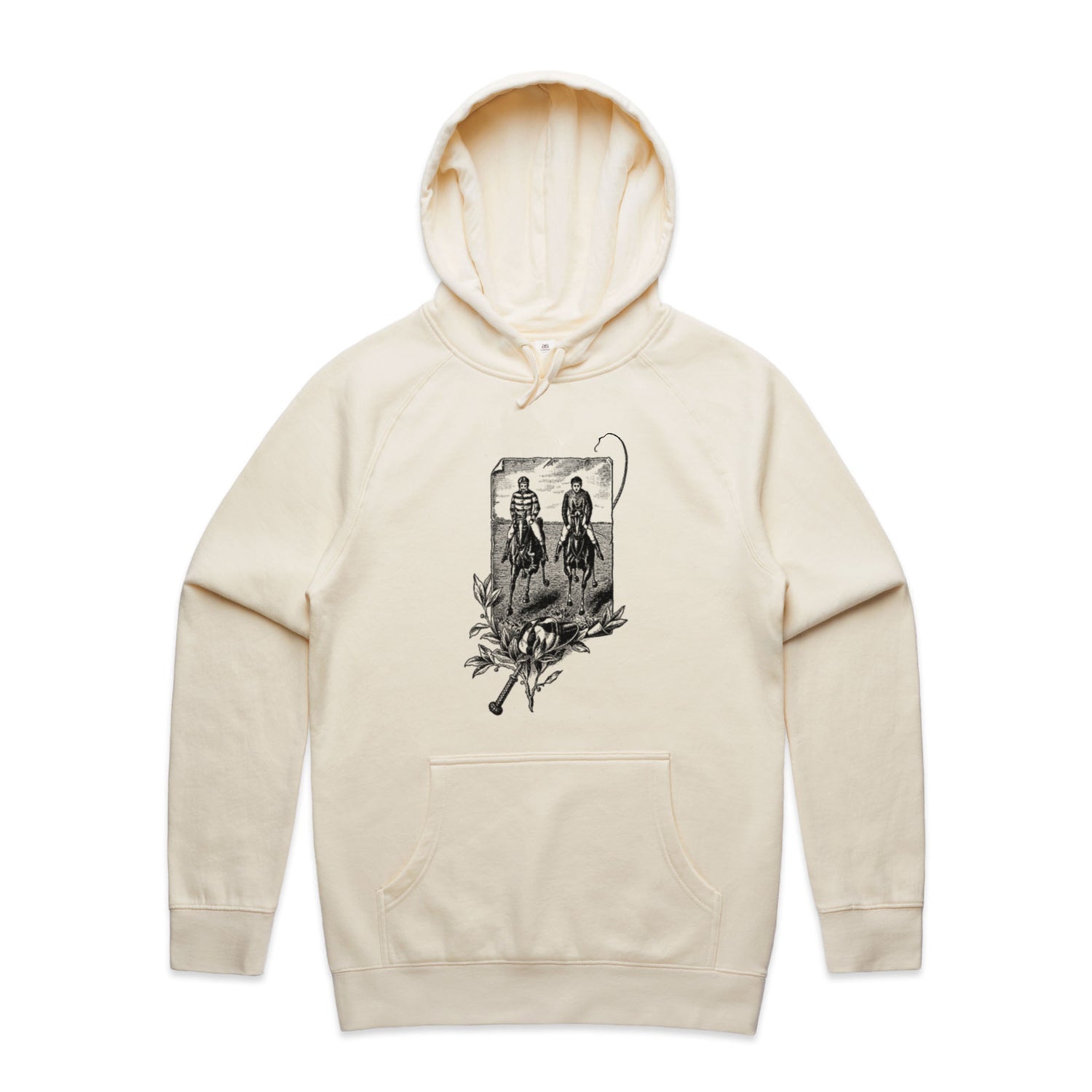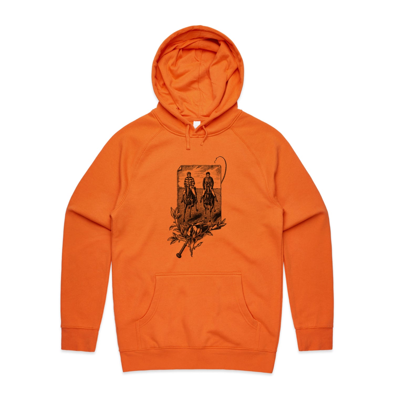 The Hoodies Jockey and Horse – Men's Hooded Sweatshirt is a high-quality men's hooded sweatshirt, printed with black ink on the trusted AS Colour Supply Hood 5101. With a regular fit and mid-weight feel, it's crafted from a premium blend of 80% cotton and 20% polyester anti-pill fleece, making it a durable and comfortable staple for any wardrobe. The pullover design features raglan sleeves, a lined hood with tonal drawcord, ribbed sleeve cuffs, and a roomy kangaroo pocket — all designed to keep you warm while looking effortlessly sharp.