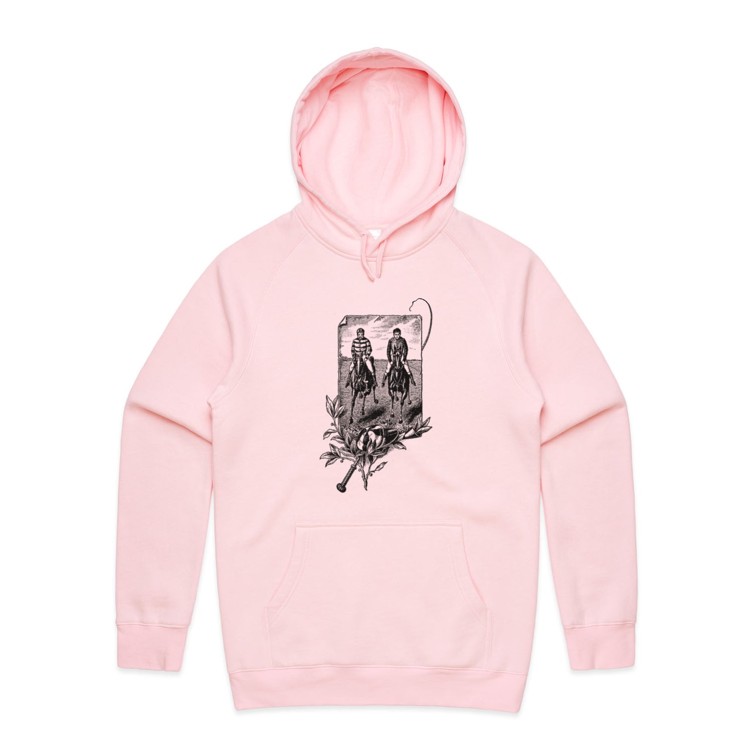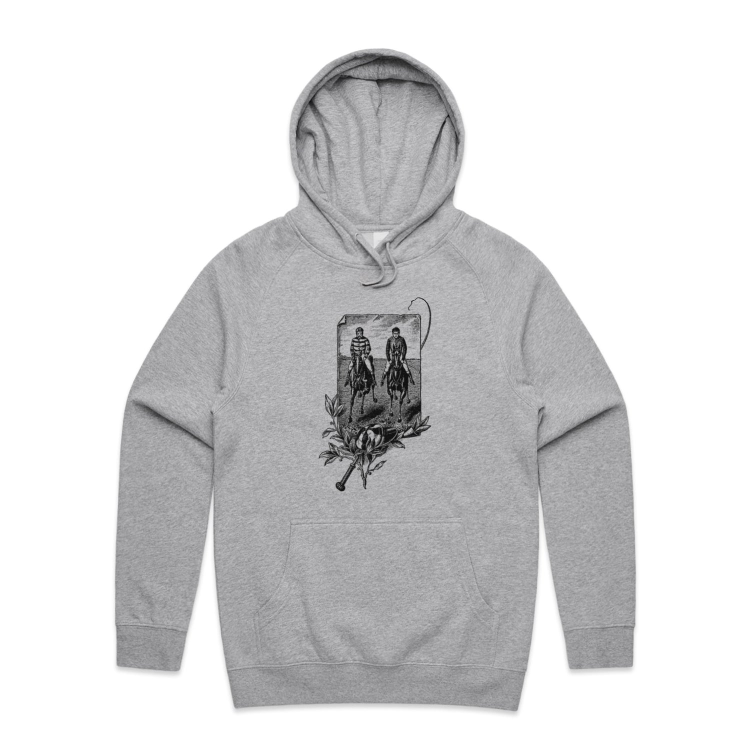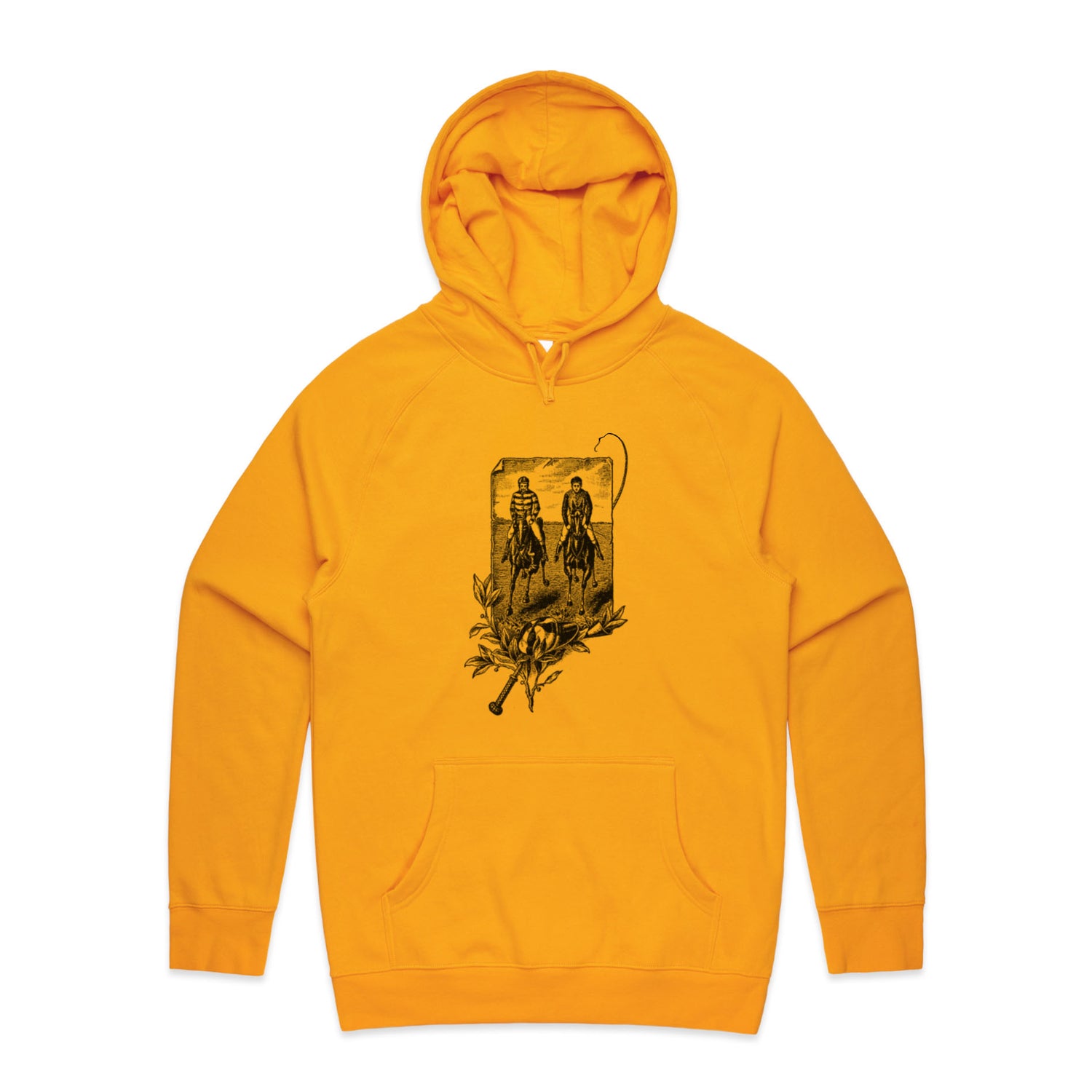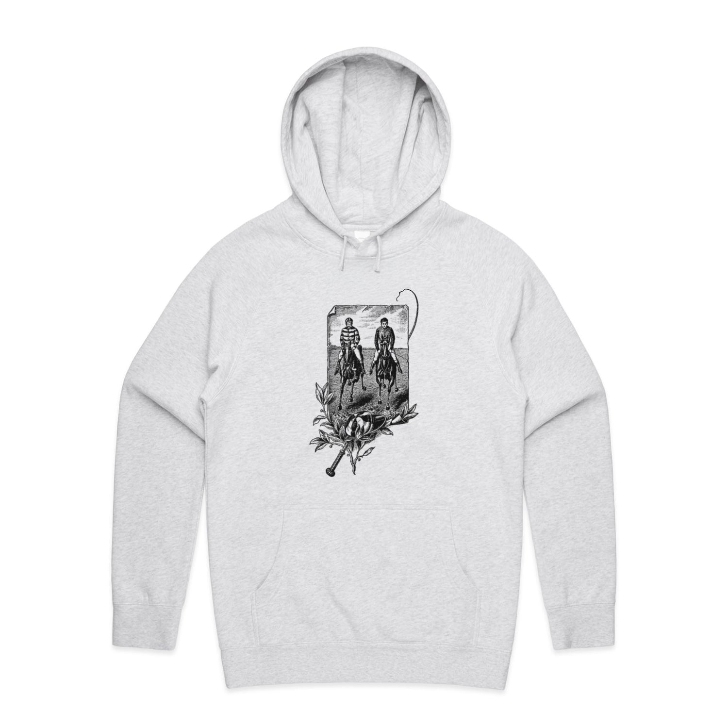 The Hoodies Jockey and Horse – Men's Hooded Sweatshirt is a high-quality men's hooded sweatshirt, printed with black ink on the trusted AS Colour Supply Hood 5101. With a regular fit and mid-weight feel, it's crafted from a premium blend of 80% cotton and 20% polyester anti-pill fleece, making it a durable and comfortable staple for any wardrobe. The pullover design features raglan sleeves, a lined hood with tonal drawcord, ribbed sleeve cuffs, and a roomy kangaroo pocket — all designed to keep you warm while looking effortlessly sharp.