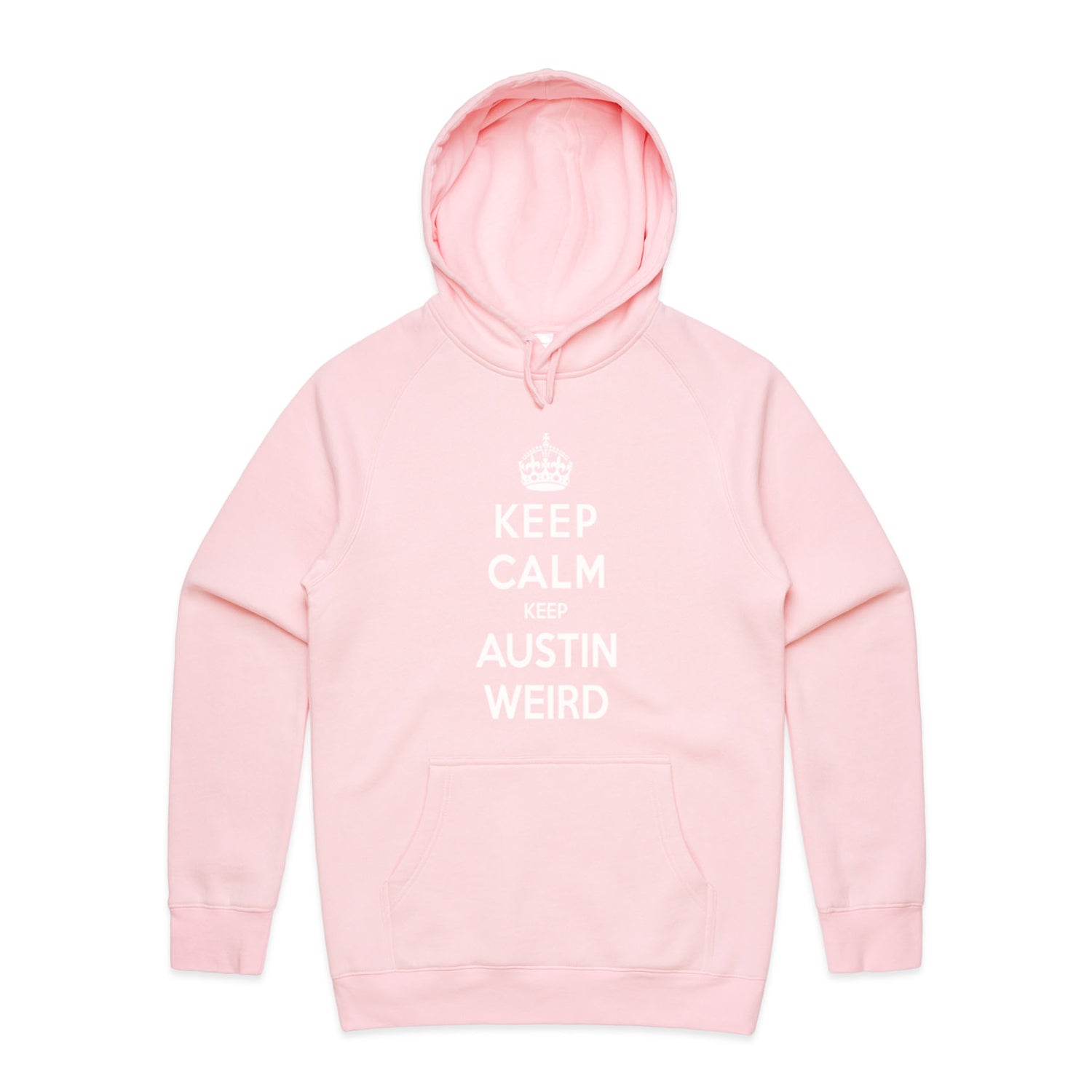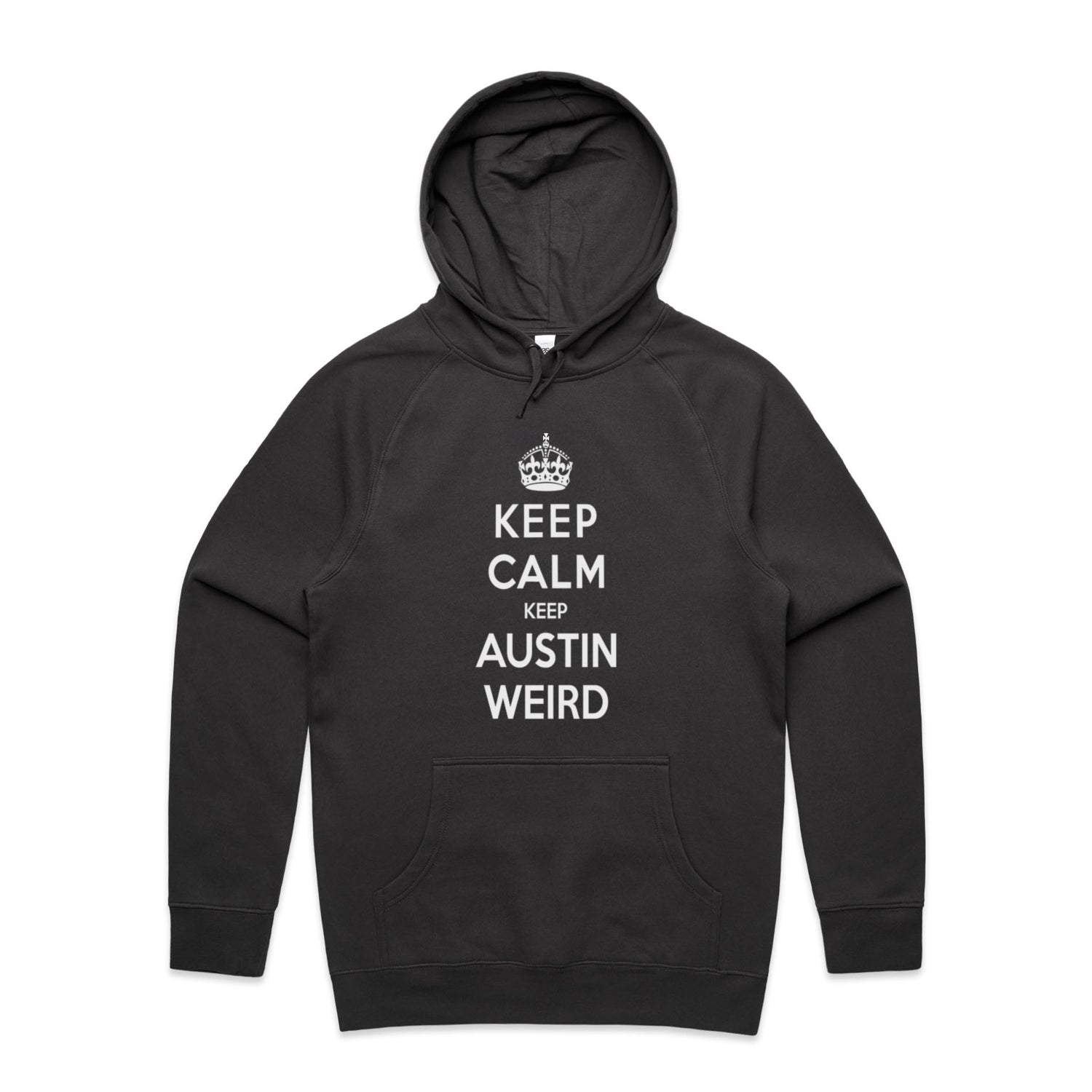 The Hoodies Keep Calm and Keep Austin Weird – Men's Hooded Sweatshirt is a high-quality men's hooded sweatshirt, printed with white ink on the trusted AS Colour Supply Hood 5101. With a regular fit and mid-weight feel, it's crafted from a premium blend of 80% cotton and 20% polyester anti-pill fleece, making it a durable and comfortable staple for any wardrobe. The pullover design features raglan sleeves, a lined hood with tonal drawcord, ribbed sleeve cuffs, and a roomy kangaroo pocket — all designed to keep you warm while looking effortlessly sharp.