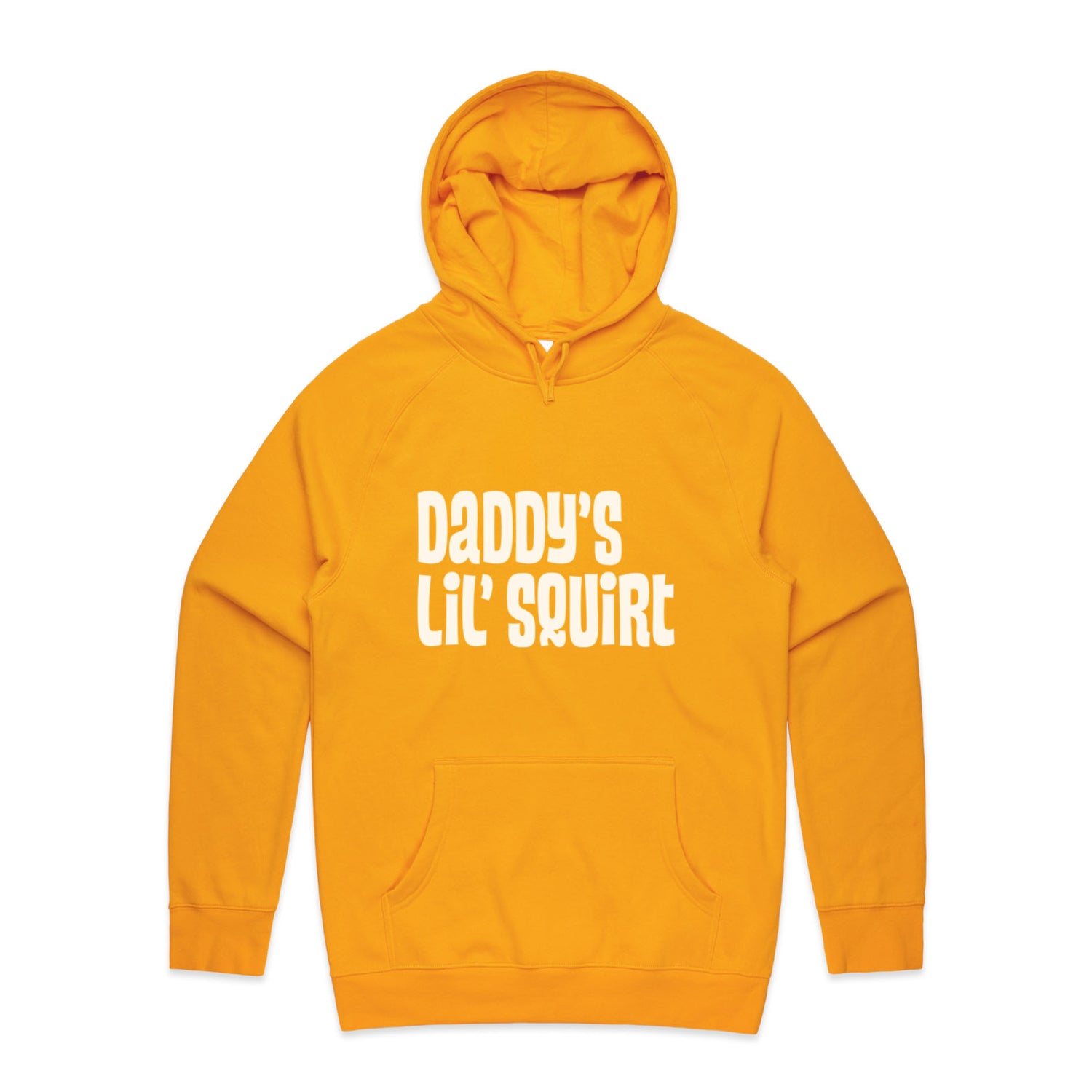 The Hoodies Kid Dad's Lil' Squirt – Men's Hooded Sweatshirt is a high-quality men's hooded sweatshirt, printed with white ink on the trusted AS Colour Supply Hood 5101. With a regular fit and mid-weight feel, it's crafted from a premium blend of 80% cotton and 20% polyester anti-pill fleece, making it a durable and comfortable staple for any wardrobe. The pullover design features raglan sleeves, a lined hood with tonal drawcord, ribbed sleeve cuffs, and a roomy kangaroo pocket — all designed to keep you warm while looking effortlessly sharp.