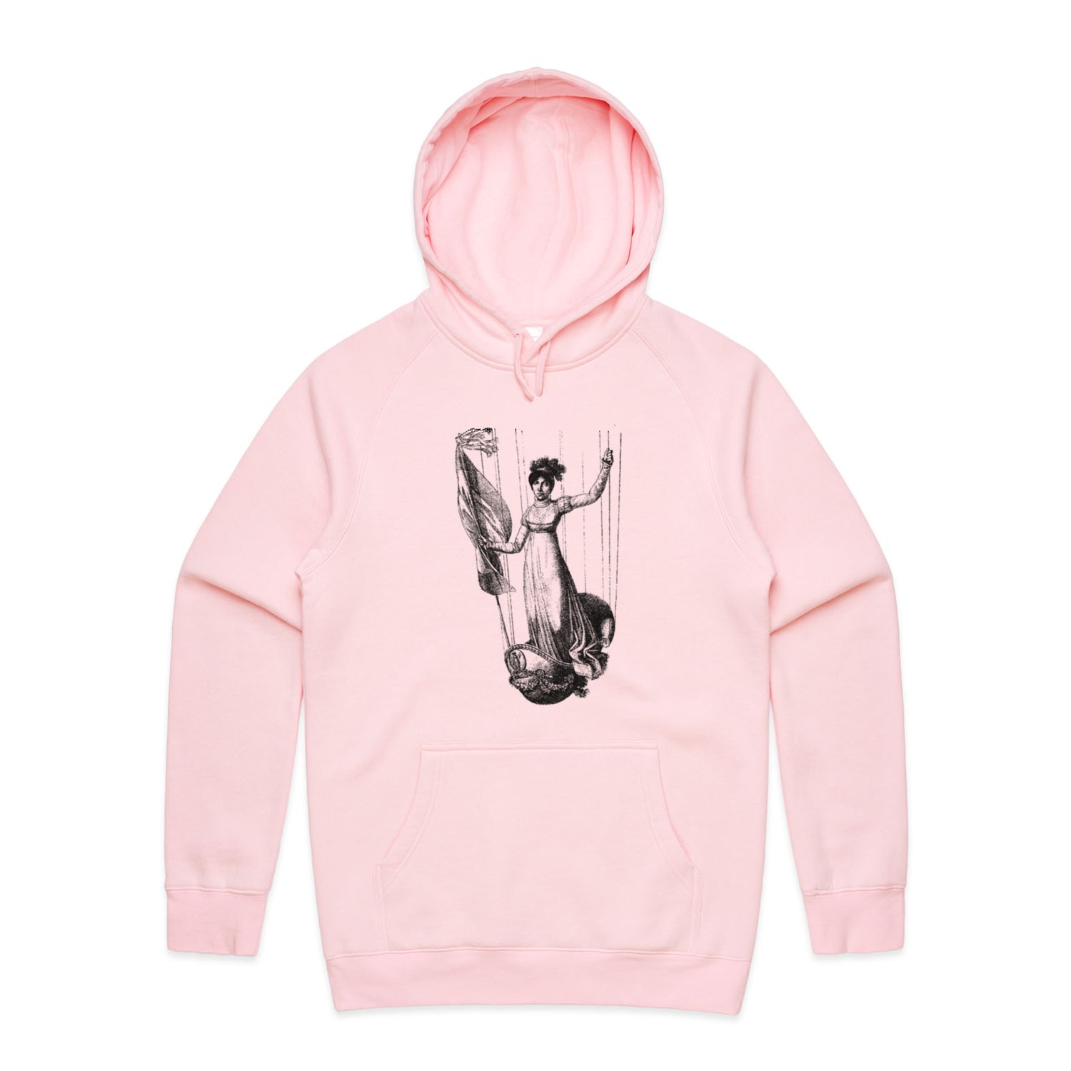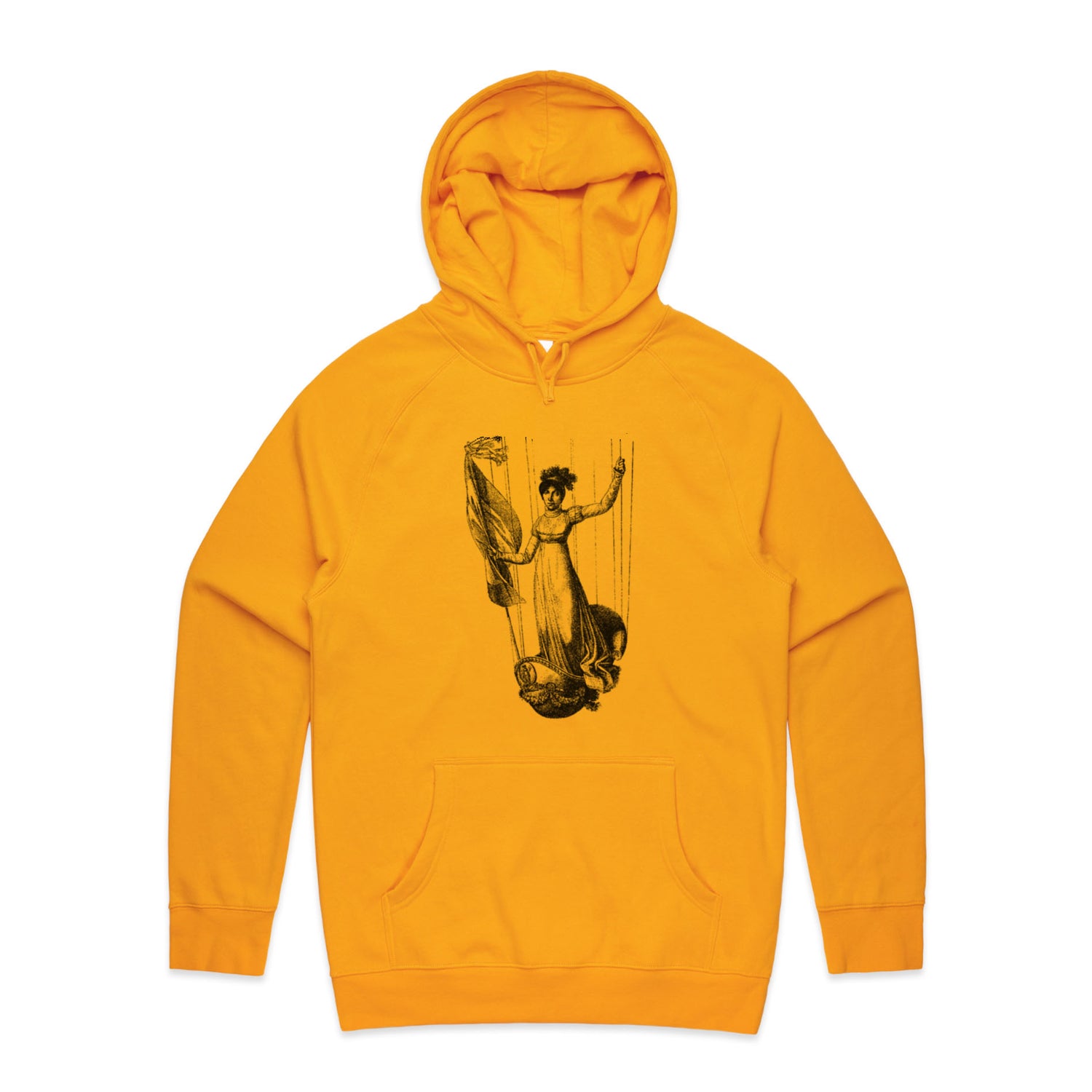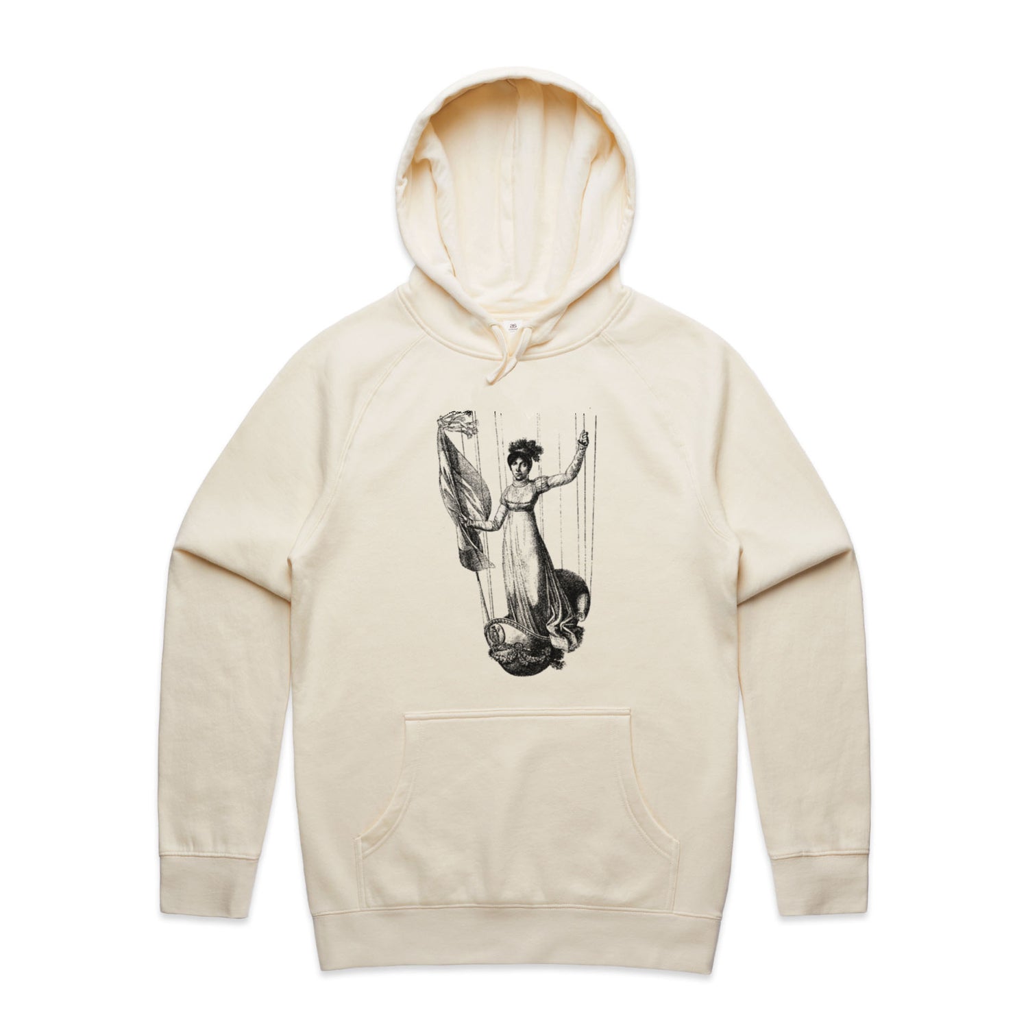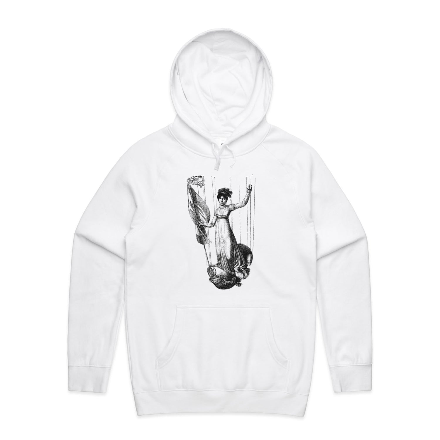 The Hoodies Lady of the Sky – Men's Hooded Sweatshirt is a high-quality men's hooded sweatshirt, printed with black ink on the trusted AS Colour Supply Hood 5101. With a regular fit and mid-weight feel, it's crafted from a premium blend of 80% cotton and 20% polyester anti-pill fleece, making it a durable and comfortable staple for any wardrobe. The pullover design features raglan sleeves, a lined hood with tonal drawcord, ribbed sleeve cuffs, and a roomy kangaroo pocket — all designed to keep you warm while looking effortlessly sharp.