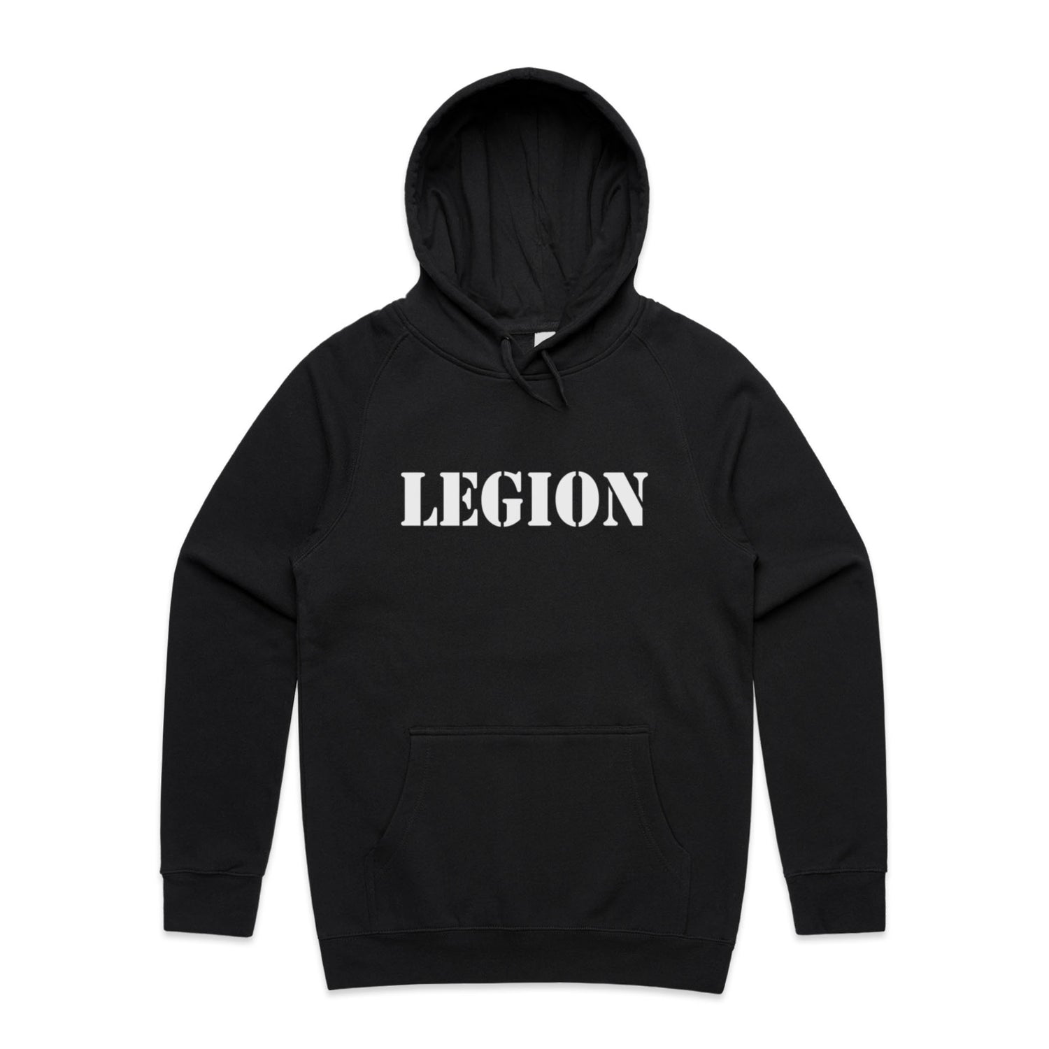 The Hoodies LEGION Stencil – Men's Hooded Sweatshirt is a high-quality men's hooded sweatshirt, printed with white ink on the trusted AS Colour Supply Hood 5101. With a regular fit and mid-weight feel, it's crafted from a premium blend of 80% cotton and 20% polyester anti-pill fleece, making it a durable and comfortable staple for any wardrobe. The pullover design features raglan sleeves, a lined hood with tonal drawcord, ribbed sleeve cuffs, and a roomy kangaroo pocket — all designed to keep you warm while looking effortlessly sharp.