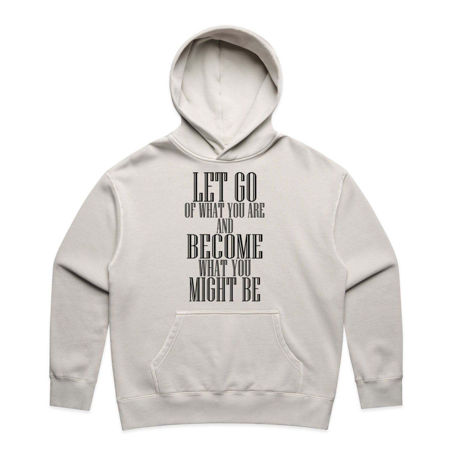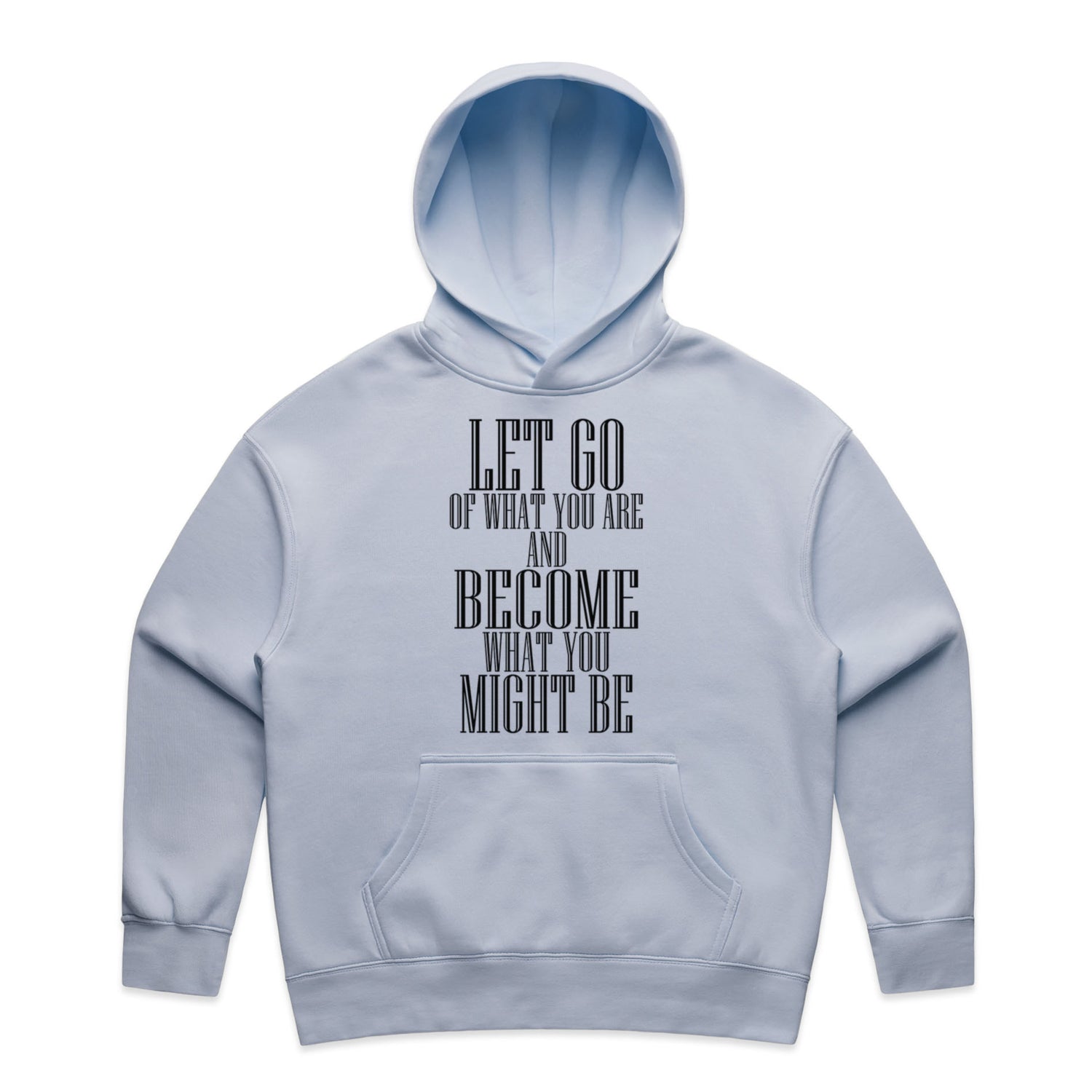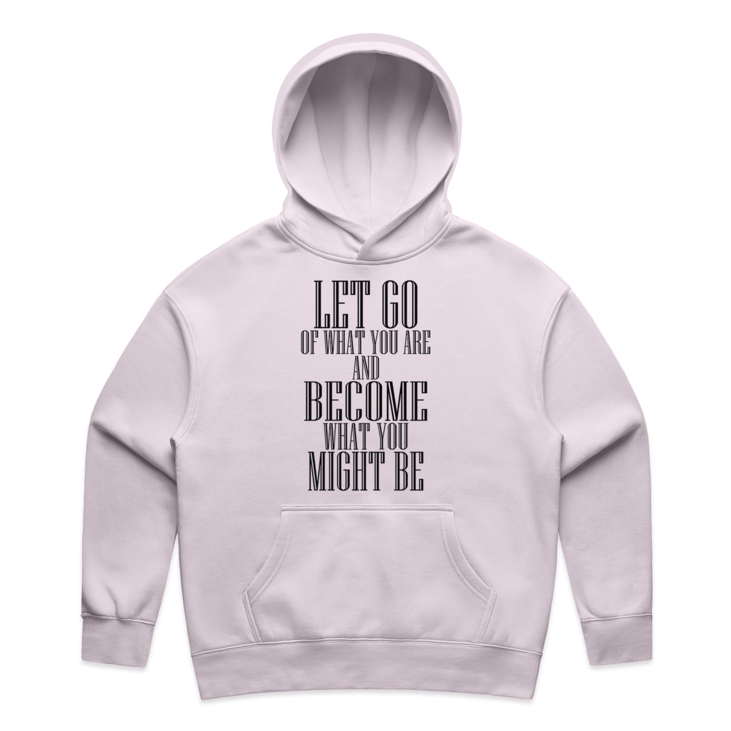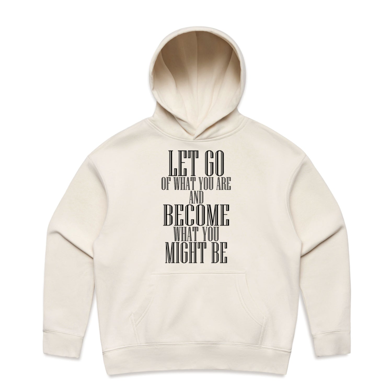 Unleash your inner philosopher and leave some vibes wherever you roam with the Let Go of What You Are hoodie. This gem's like that chill mate who always knows the right thing to say, featuring a classic black print that pops against any backdrop. Created on AS Colour’s Women’s Relax Hoodies, it's as comfy as a kangaroo's pouch, perfect for those lazy Sundays or casual catch-ups.
