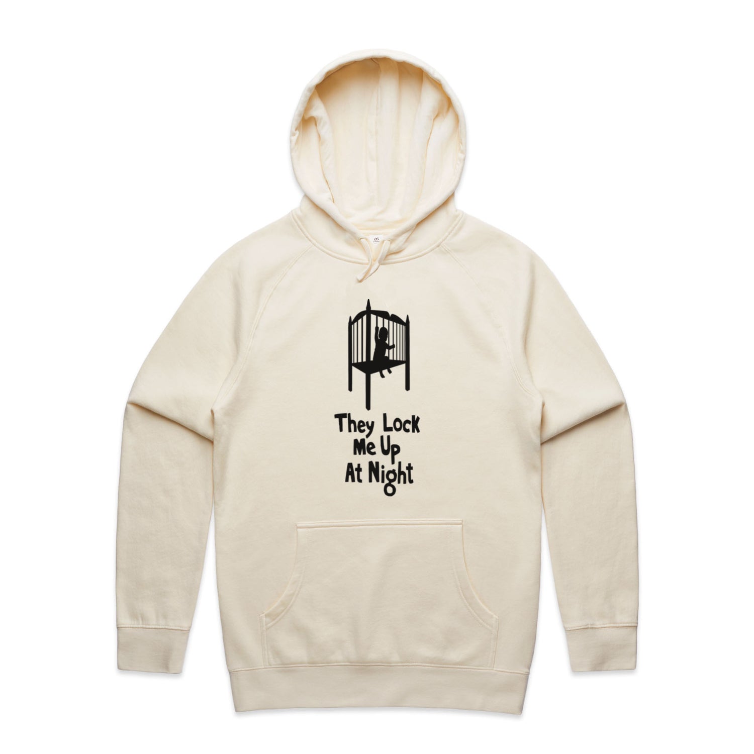 The Hoodies Lock Me Up – Men's Hooded Sweatshirt is a high-quality men's hooded sweatshirt, printed with black ink on the trusted AS Colour Supply Hood 5101. With a regular fit and mid-weight feel, it's crafted from a premium blend of 80% cotton and 20% polyester anti-pill fleece, making it a durable and comfortable staple for any wardrobe. The pullover design features raglan sleeves, a lined hood with tonal drawcord, ribbed sleeve cuffs, and a roomy kangaroo pocket — all designed to keep you warm while looking effortlessly sharp.