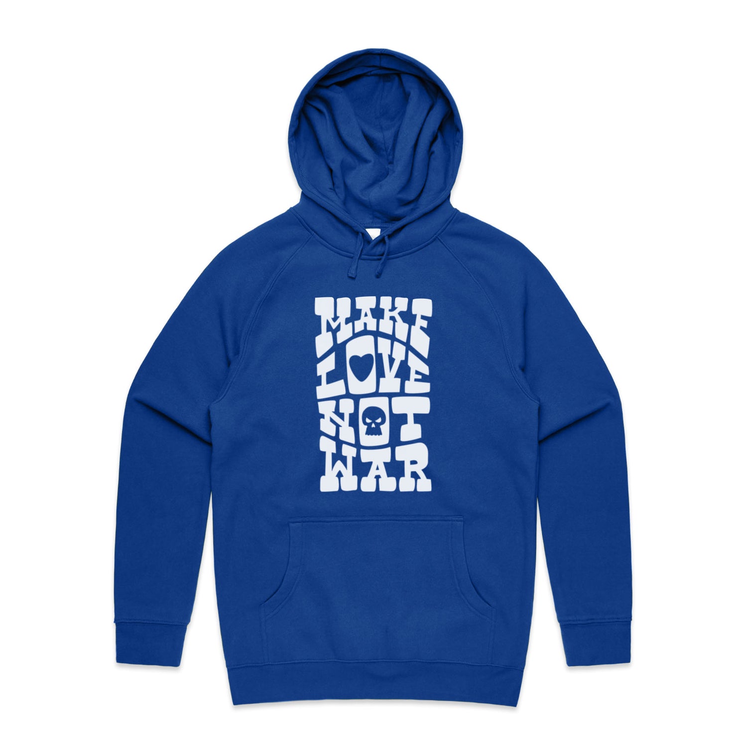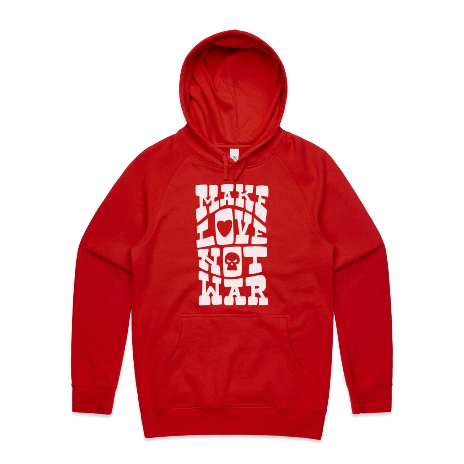 The Hoodies Make Love Not War – Men's Hooded Sweatshirt is a high-quality men's hooded sweatshirt, printed with white ink on the trusted AS Colour Supply Hood 5101. With a regular fit and mid-weight feel, it's crafted from a premium blend of 80% cotton and 20% polyester anti-pill fleece, making it a durable and comfortable staple for any wardrobe. The pullover design features raglan sleeves, a lined hood with tonal drawcord, ribbed sleeve cuffs, and a roomy kangaroo pocket — all designed to keep you warm while looking effortlessly sharp.