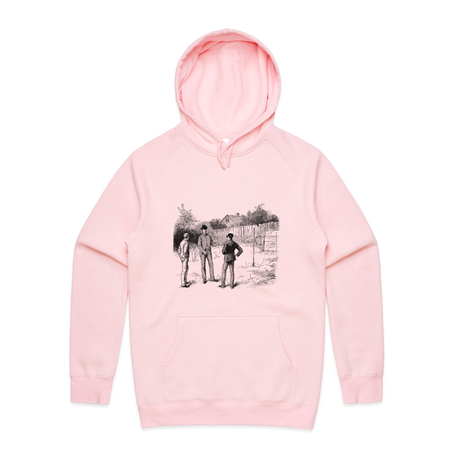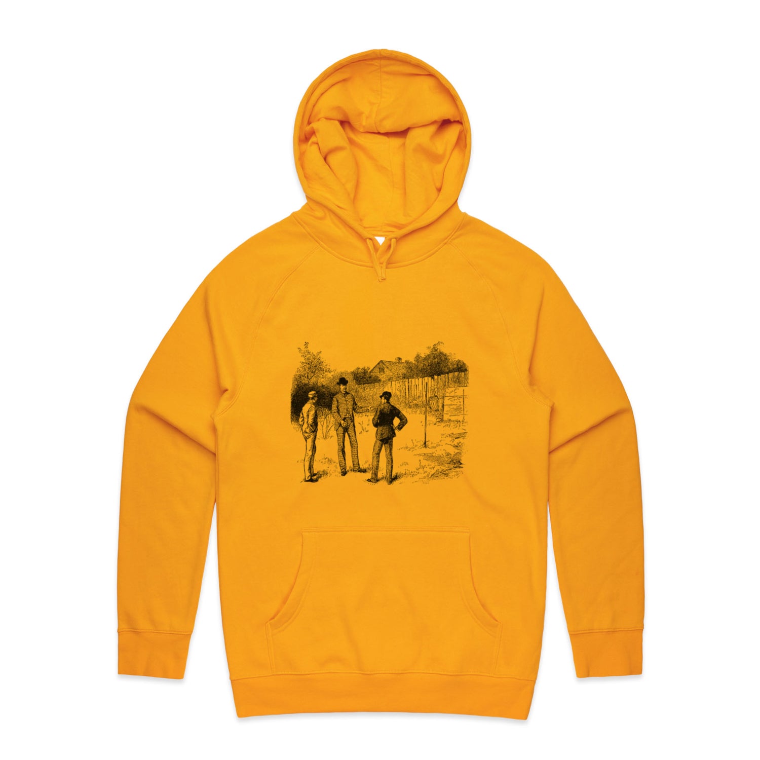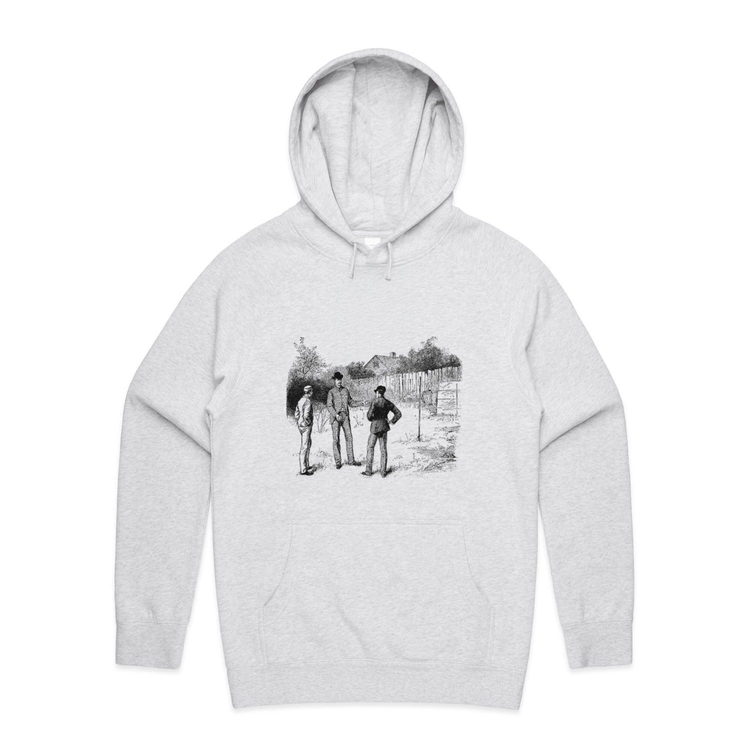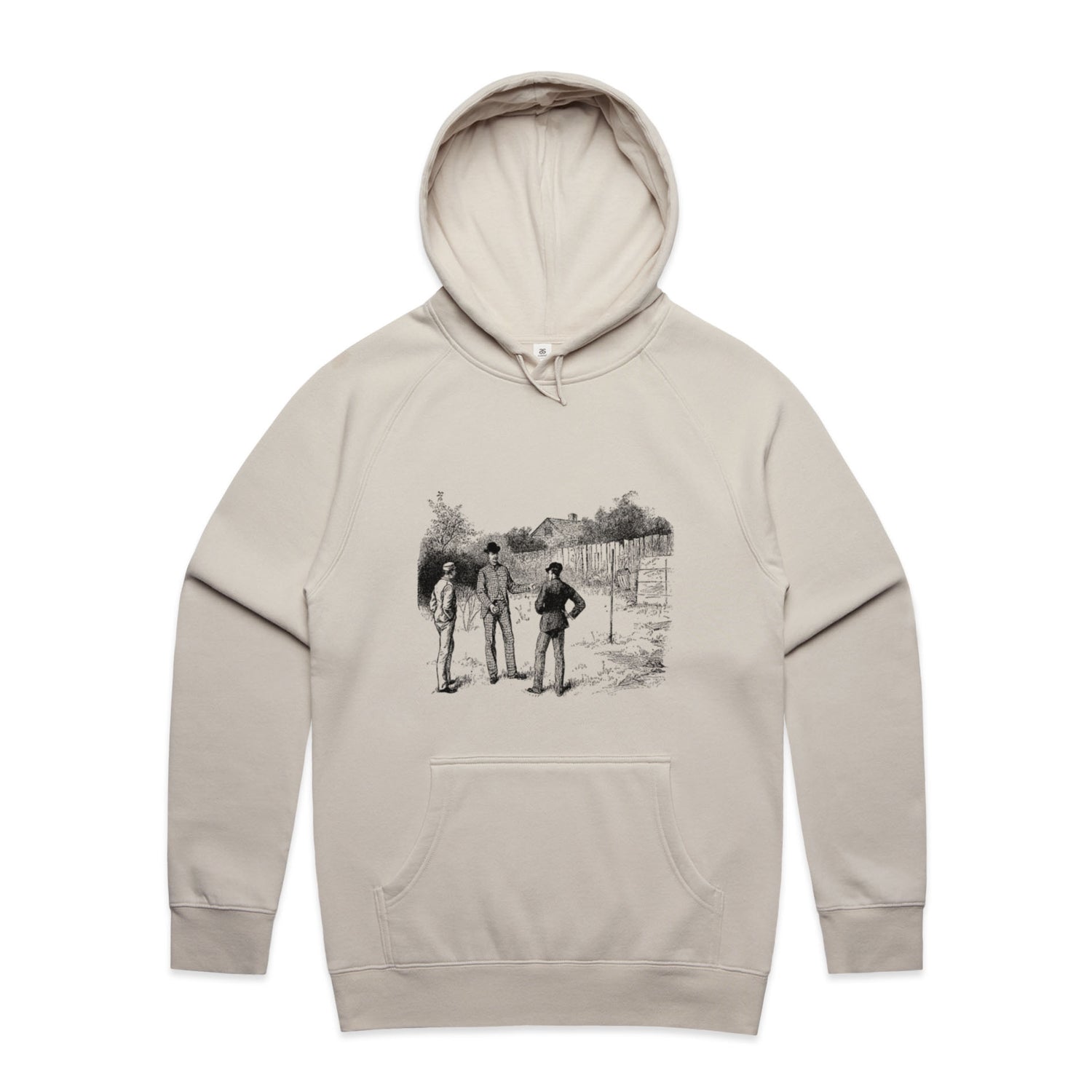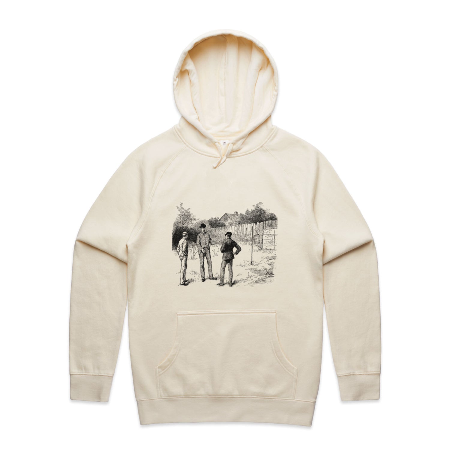 The Hoodies Men in a Field – Men's Hooded Sweatshirt is a high-quality men's hooded sweatshirt, printed with black ink on the trusted AS Colour Supply Hood 5101. With a regular fit and mid-weight feel, it's crafted from a premium blend of 80% cotton and 20% polyester anti-pill fleece, making it a durable and comfortable staple for any wardrobe. The pullover design features raglan sleeves, a lined hood with tonal drawcord, ribbed sleeve cuffs, and a roomy kangaroo pocket — all designed to keep you warm while looking effortlessly sharp.