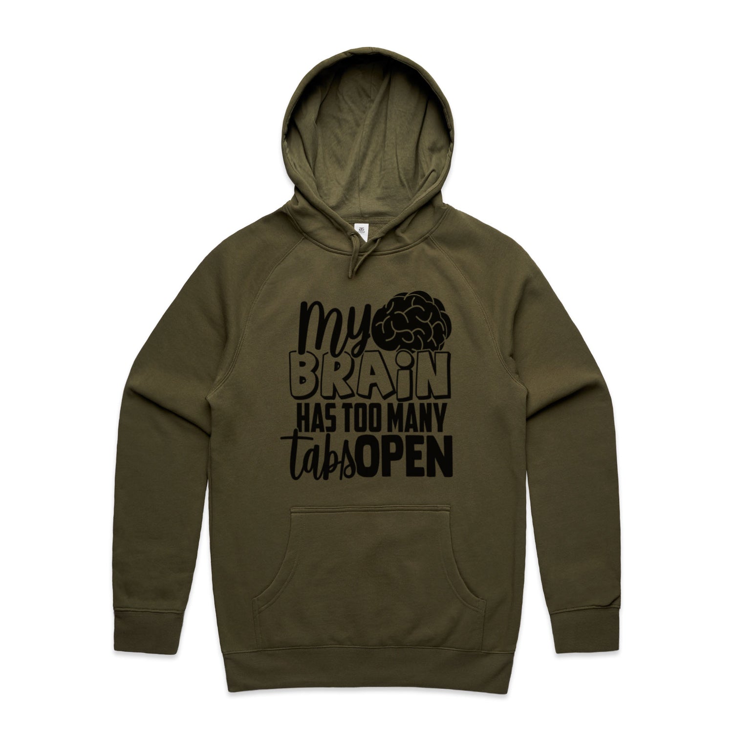 The Hoodies Mind Tab Overload – Men's Hooded Sweatshirt is a high-quality men's hooded sweatshirt, printed with black ink on the trusted AS Colour Supply Hood 5101. With a regular fit and mid-weight feel, it's crafted from a premium blend of 80% cotton and 20% polyester anti-pill fleece, making it a durable and comfortable staple for any wardrobe. The pullover design features raglan sleeves, a lined hood with tonal drawcord, ribbed sleeve cuffs, and a roomy kangaroo pocket — all designed to keep you warm while looking effortlessly sharp.