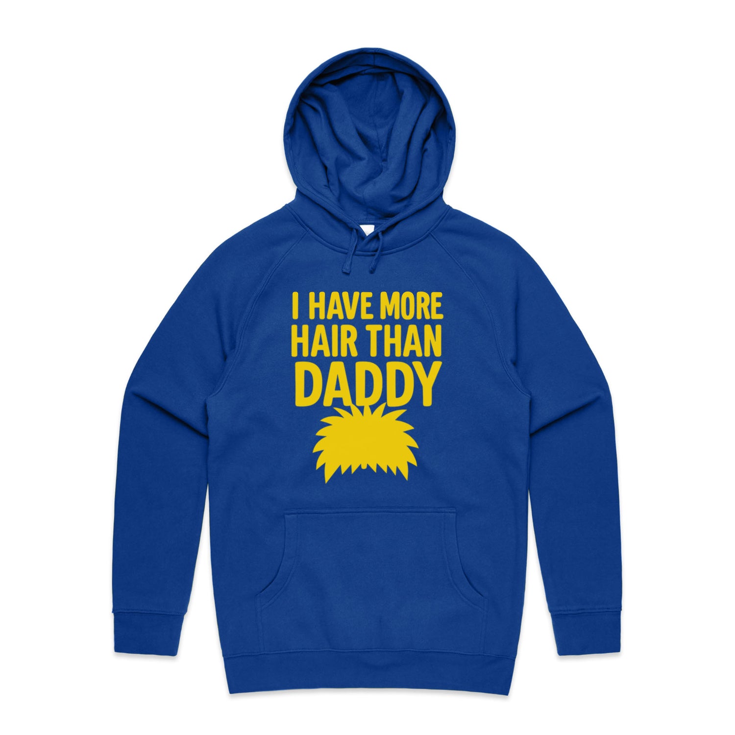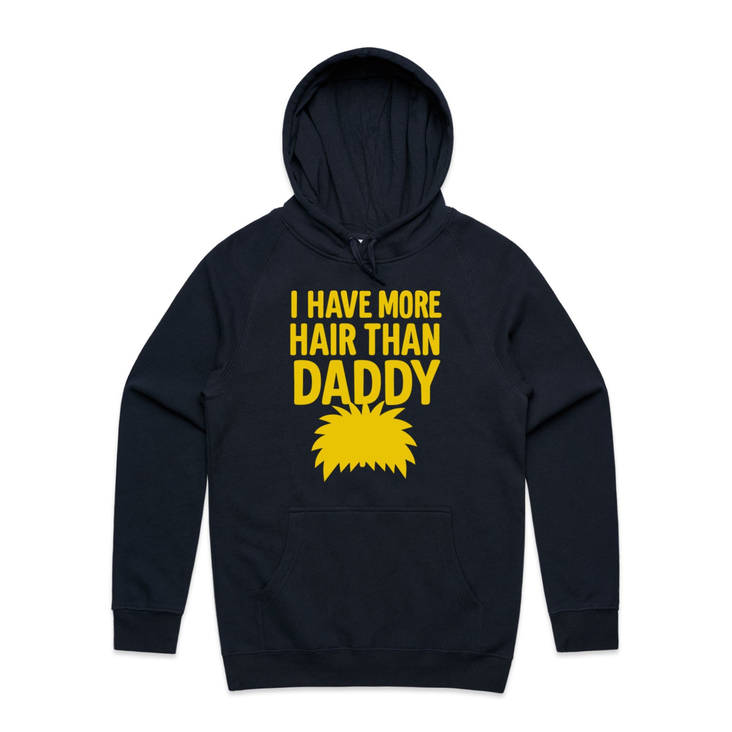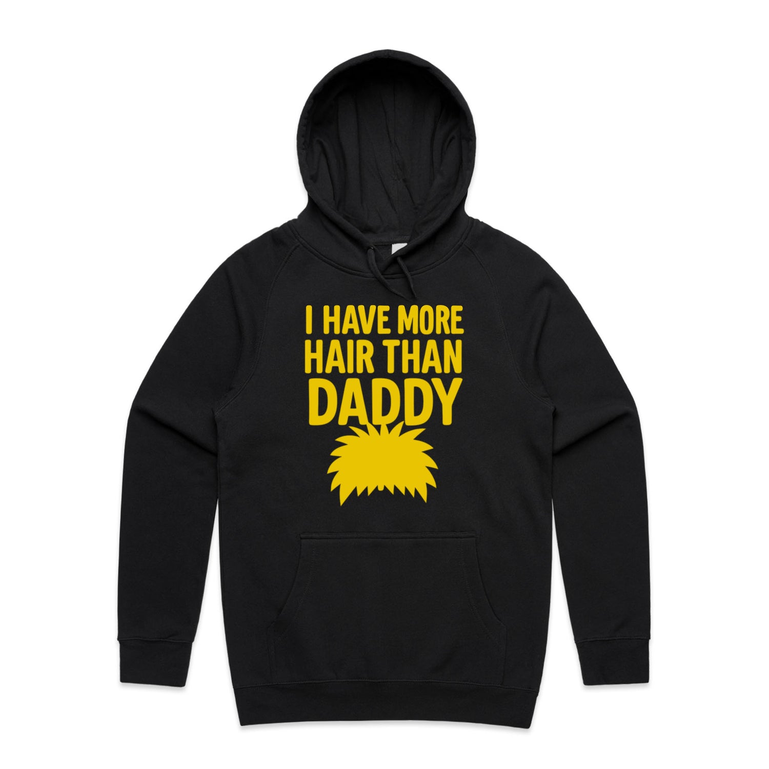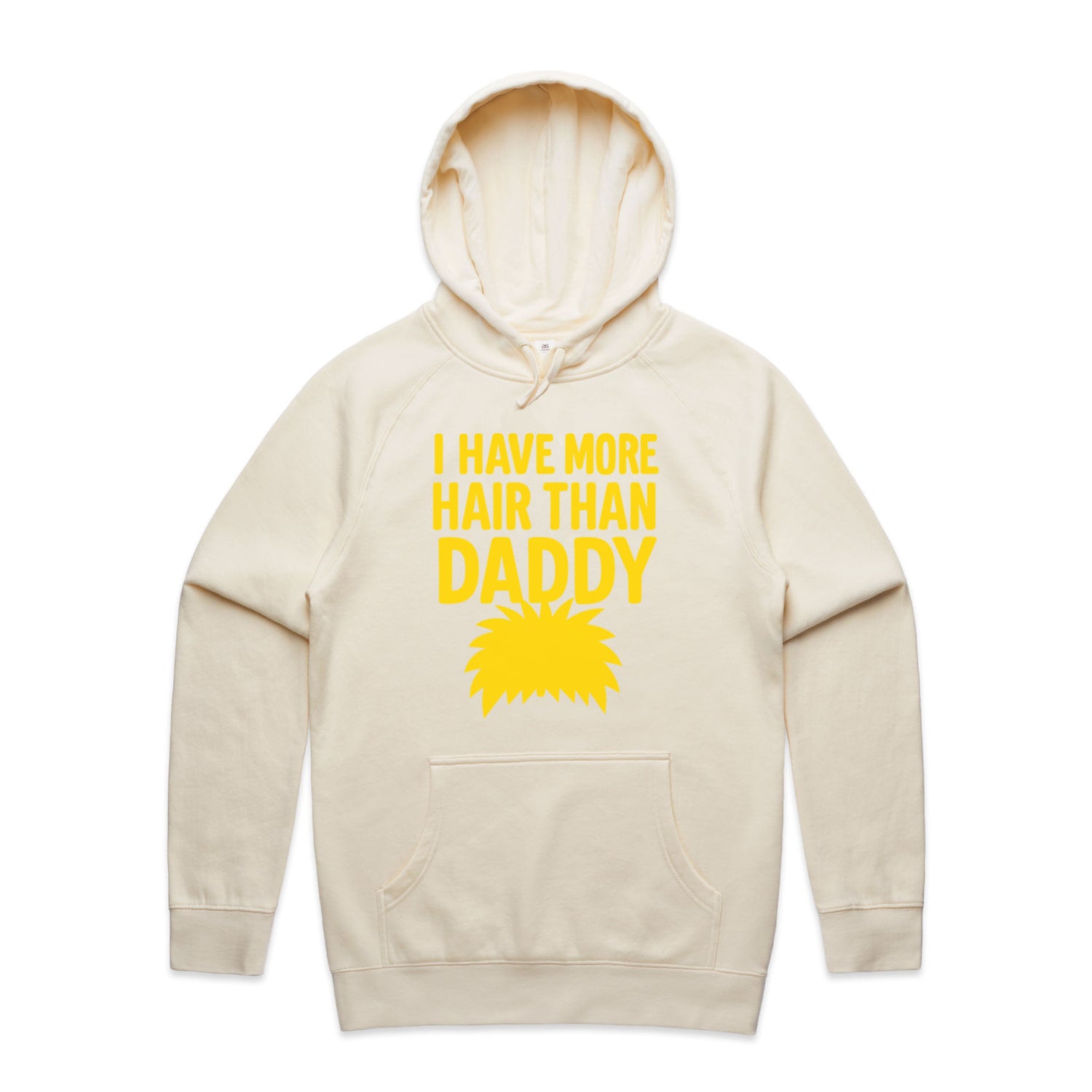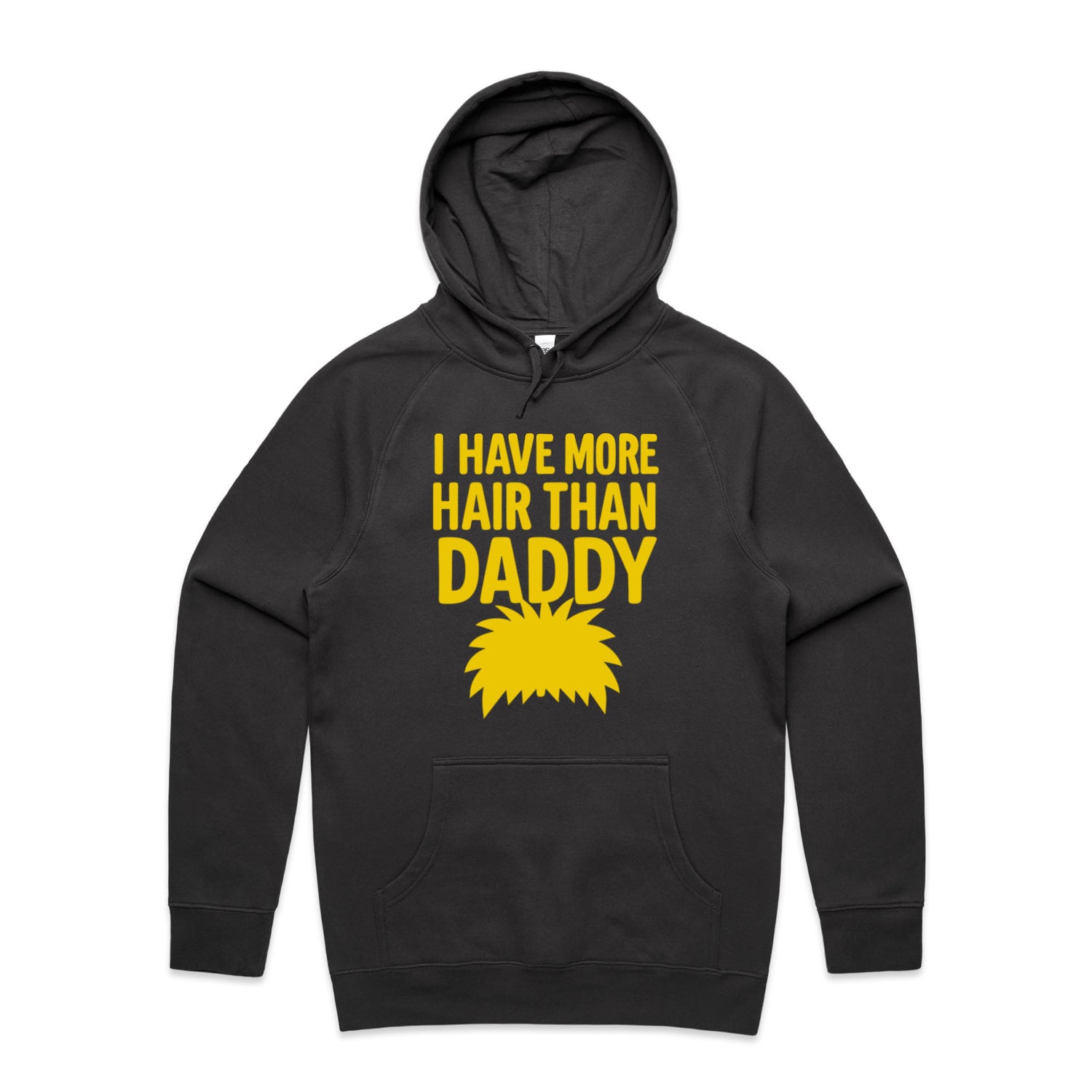The Hoodies More Hair Than Daddy! – Men's Hooded Sweatshirt is a high-quality men's hooded sweatshirt, printed with yellow ink on the trusted AS Colour Supply Hood 5101. With a regular fit and mid-weight feel, it's crafted from a premium blend of 80% cotton and 20% polyester anti-pill fleece, making it a durable and comfortable staple for any wardrobe. The pullover design features raglan sleeves, a lined hood with tonal drawcord, ribbed sleeve cuffs, and a roomy kangaroo pocket — all designed to keep you warm while looking effortlessly sharp.