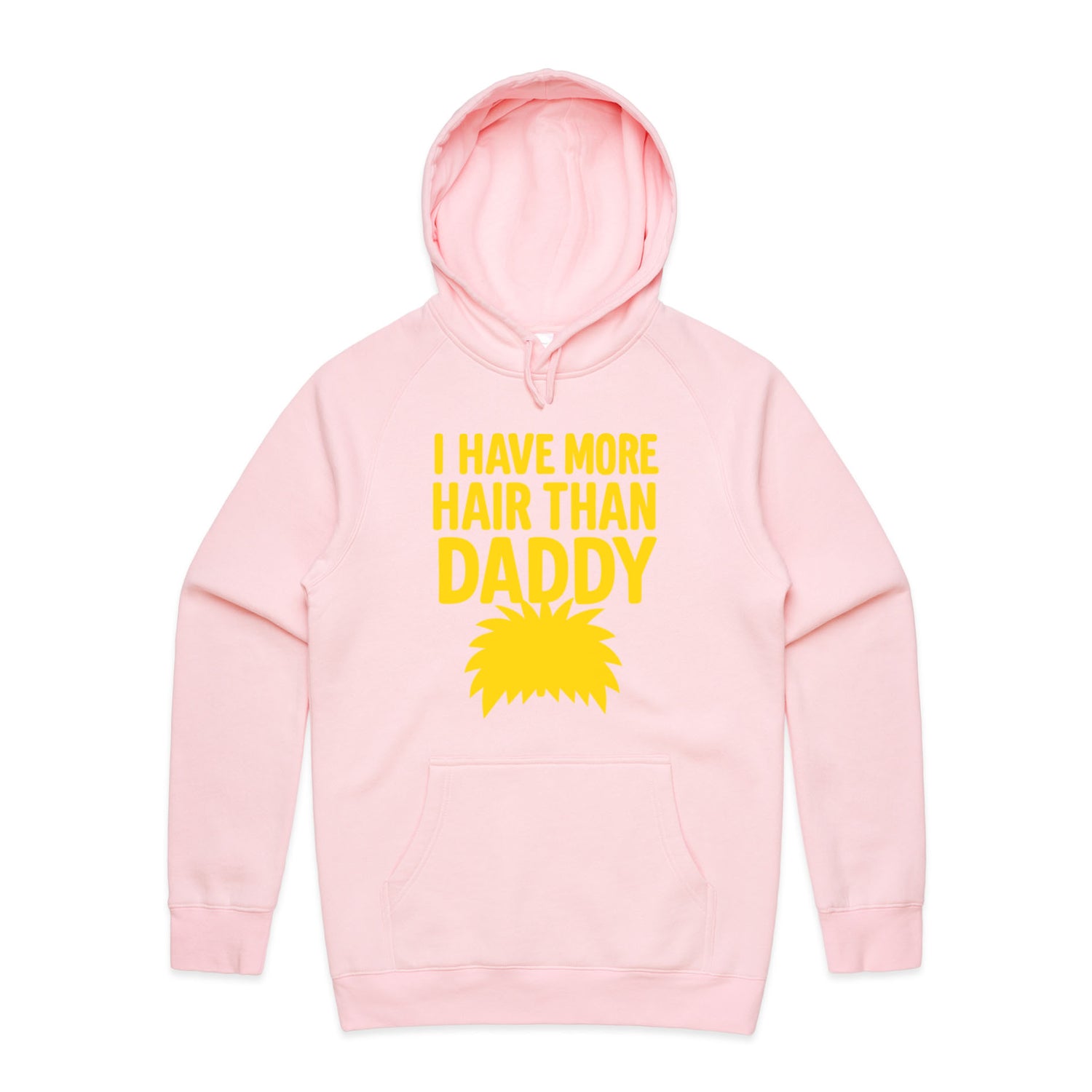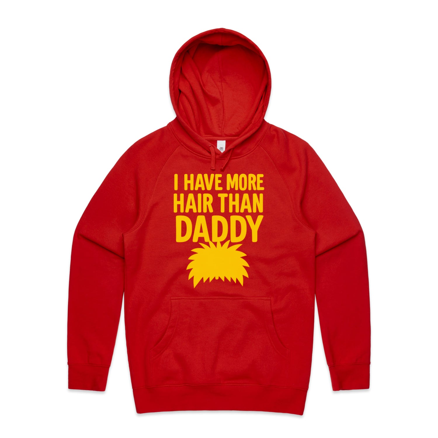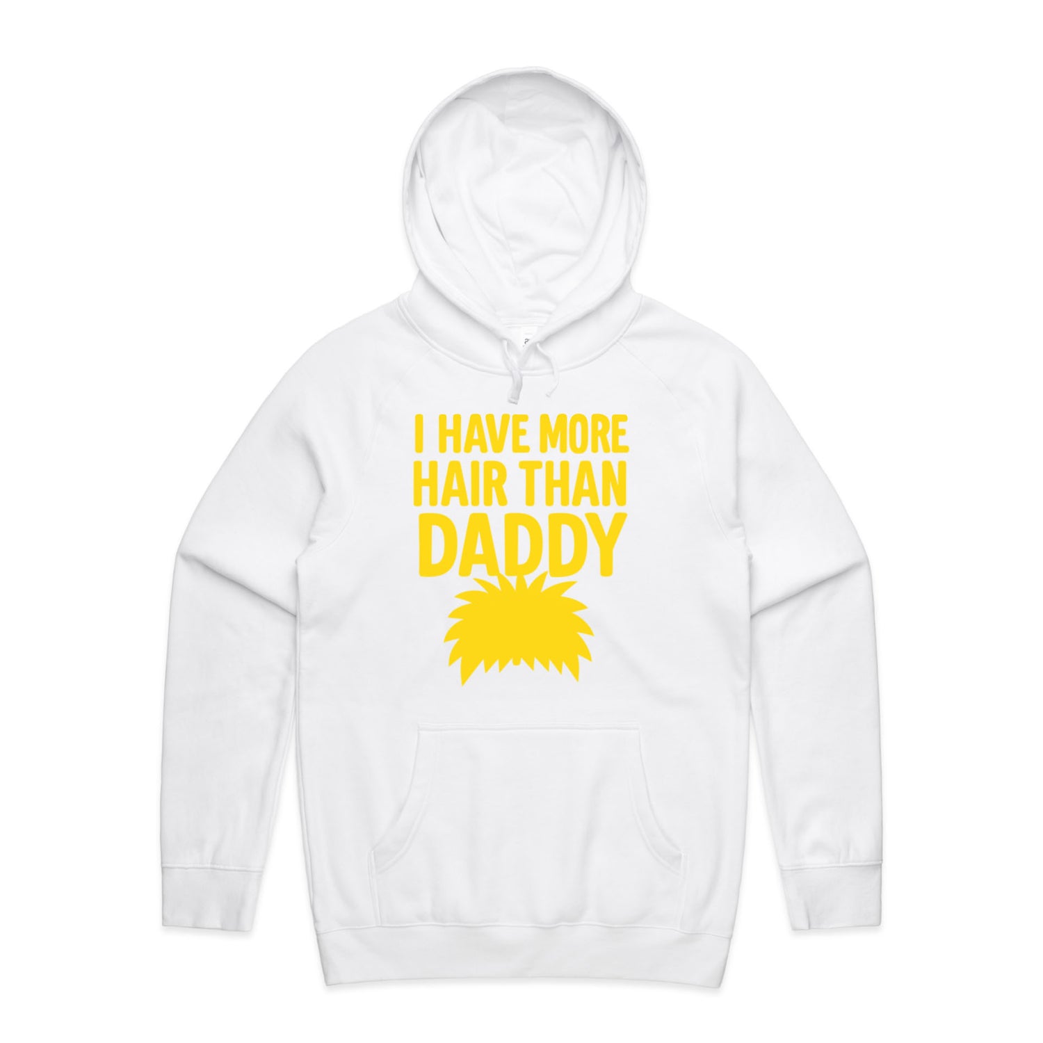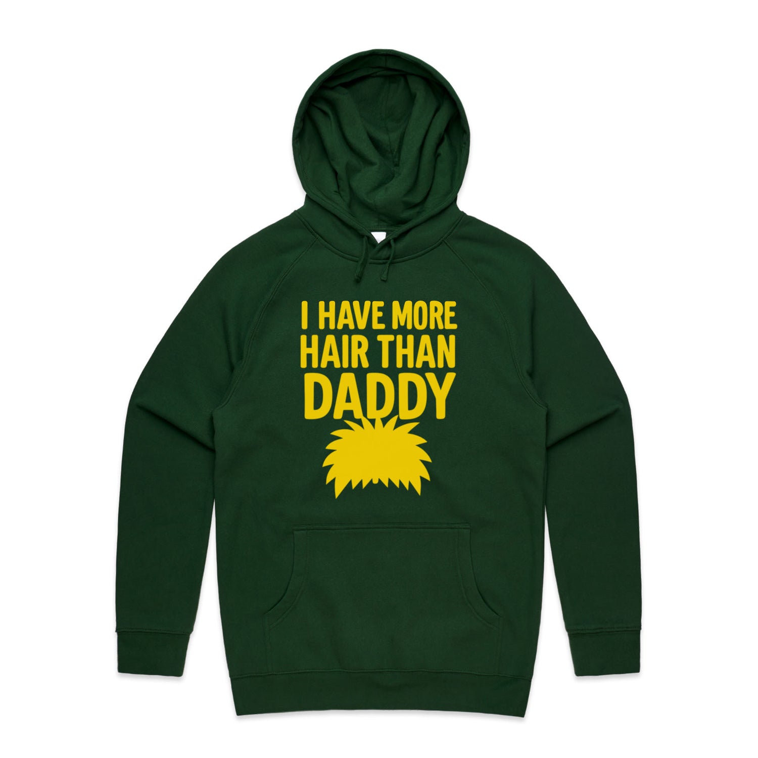 The Hoodies More Hair Than Daddy! – Men's Hooded Sweatshirt is a high-quality men's hooded sweatshirt, printed with yellow ink on the trusted AS Colour Supply Hood 5101. With a regular fit and mid-weight feel, it's crafted from a premium blend of 80% cotton and 20% polyester anti-pill fleece, making it a durable and comfortable staple for any wardrobe. The pullover design features raglan sleeves, a lined hood with tonal drawcord, ribbed sleeve cuffs, and a roomy kangaroo pocket — all designed to keep you warm while looking effortlessly sharp.