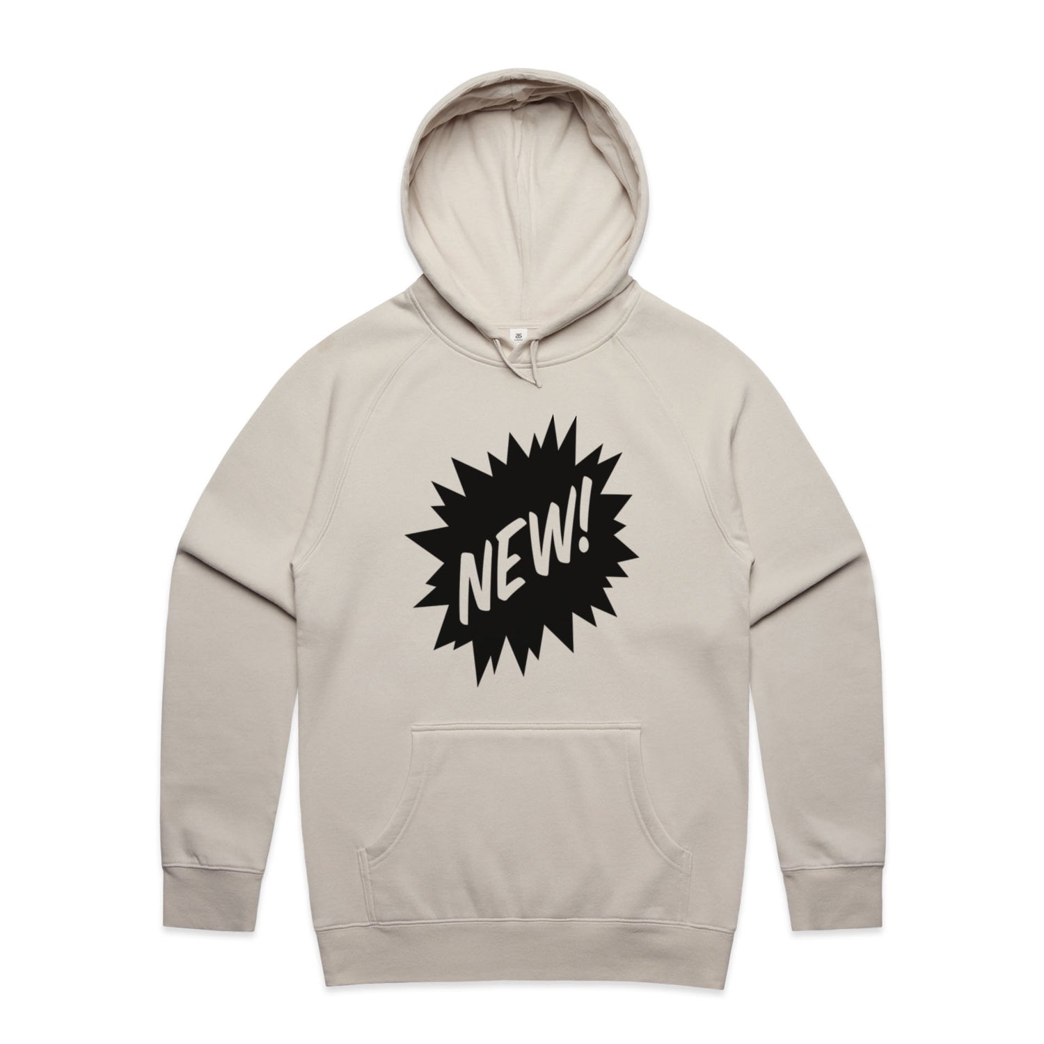 The Hoodies New – Men's Hooded Sweatshirt is a high-quality men's hooded sweatshirt, printed with black ink on the trusted AS Colour Supply Hood 5101. With a regular fit and mid-weight feel, it's crafted from a premium blend of 80% cotton and 20% polyester anti-pill fleece, making it a durable and comfortable staple for any wardrobe. The pullover design features raglan sleeves, a lined hood with tonal drawcord, ribbed sleeve cuffs, and a roomy kangaroo pocket — all designed to keep you warm while looking effortlessly sharp.