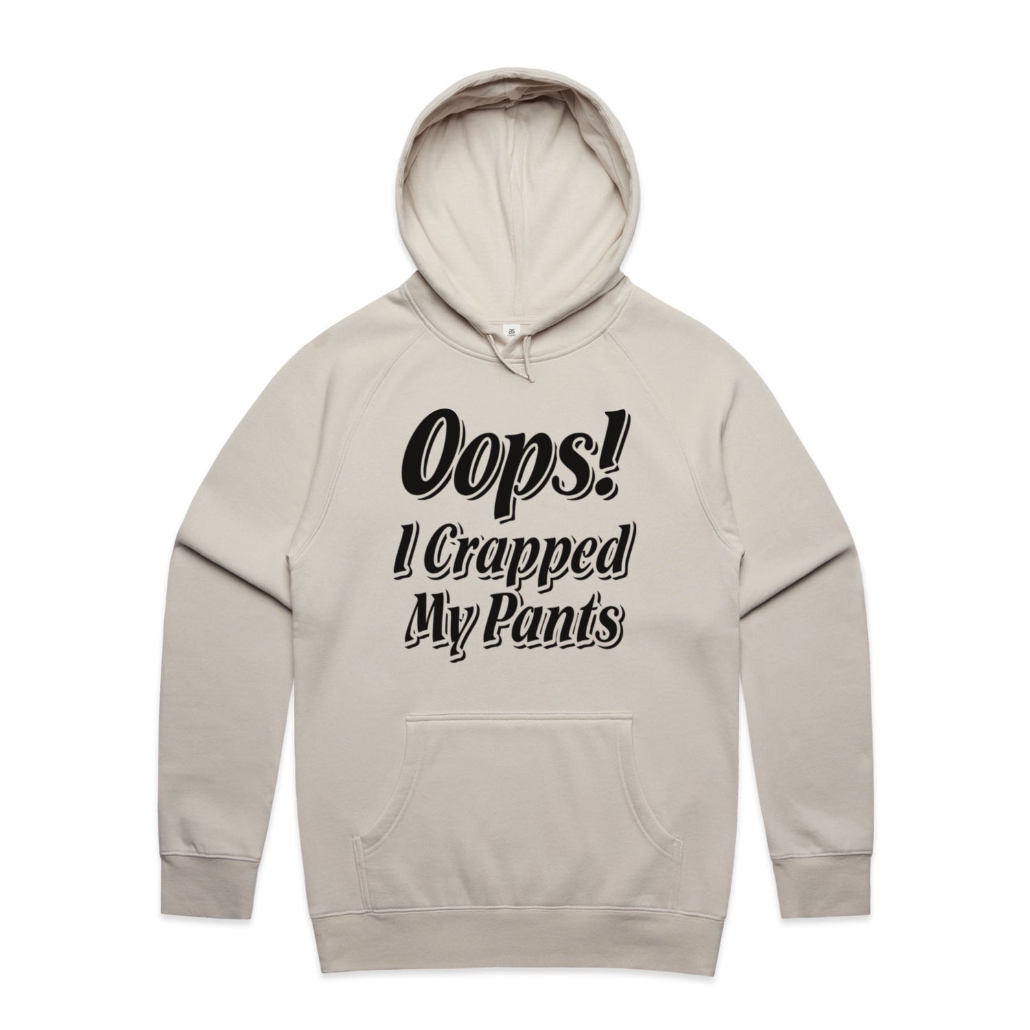 The Hoodies Oops Crap'ped Pants – Men's Hooded Sweatshirt is a high-quality men's hooded sweatshirt, printed with black ink on the trusted AS Colour Supply Hood 5101. With a regular fit and mid-weight feel, it's crafted from a premium blend of 80% cotton and 20% polyester anti-pill fleece, making it a durable and comfortable staple for any wardrobe. The pullover design features raglan sleeves, a lined hood with tonal drawcord, ribbed sleeve cuffs, and a roomy kangaroo pocket — all designed to keep you warm while looking effortlessly sharp.