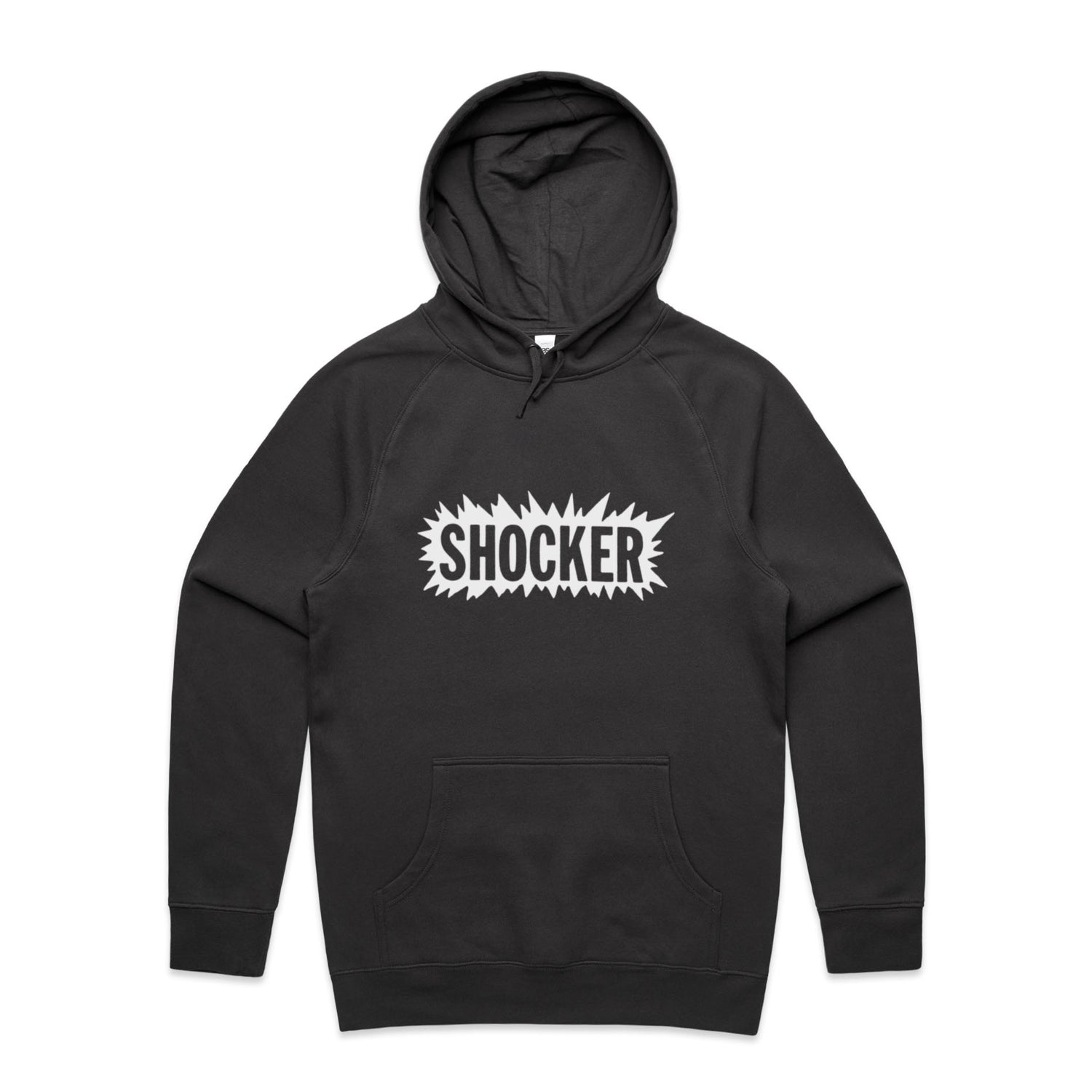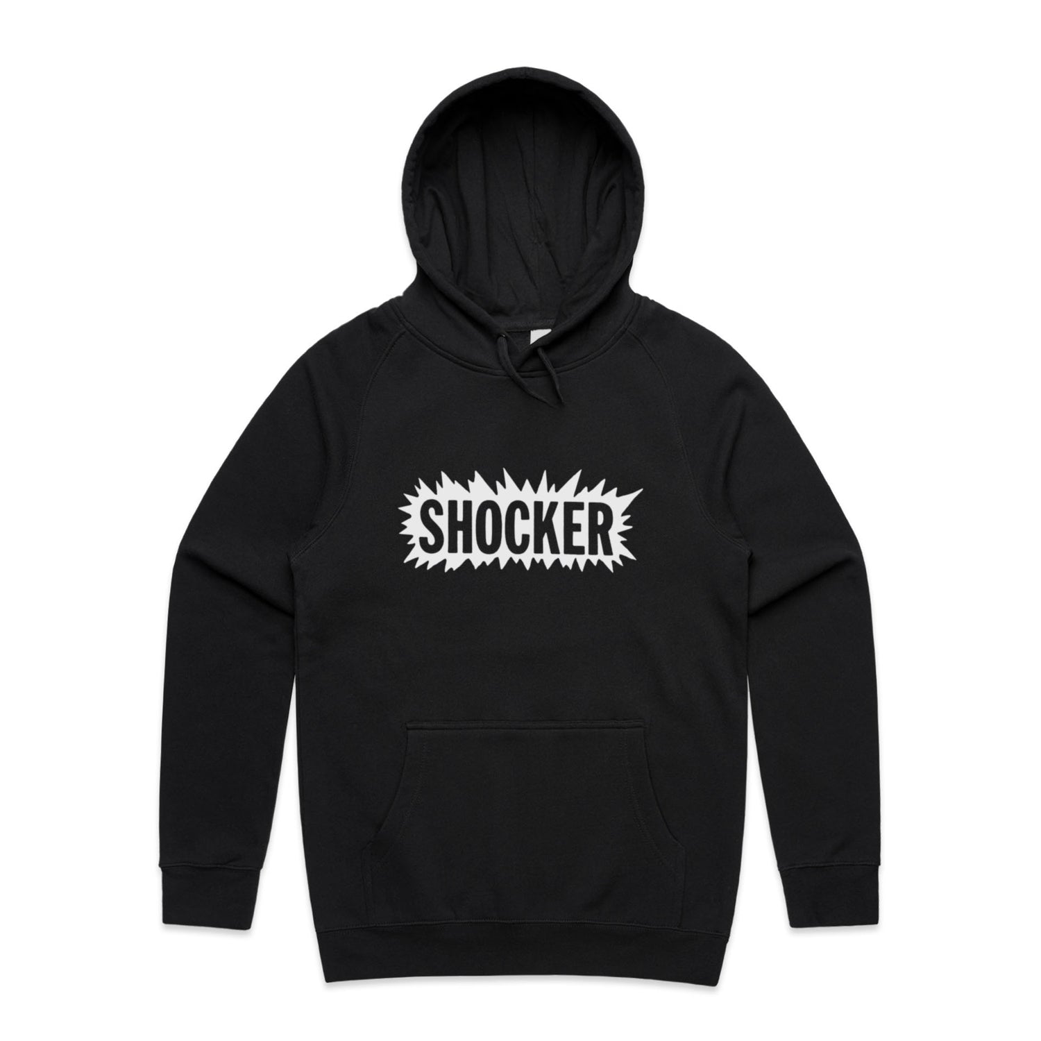 The Hoodies Shocker – Men's Hooded Sweatshirt is a high-quality men's hooded sweatshirt, printed with white ink on the trusted AS Colour Supply Hood 5101. With a regular fit and mid-weight feel, it's crafted from a premium blend of 80% cotton and 20% polyester anti-pill fleece, making it a durable and comfortable staple for any wardrobe. The pullover design features raglan sleeves, a lined hood with tonal drawcord, ribbed sleeve cuffs, and a roomy kangaroo pocket — all designed to keep you warm while looking effortlessly sharp.