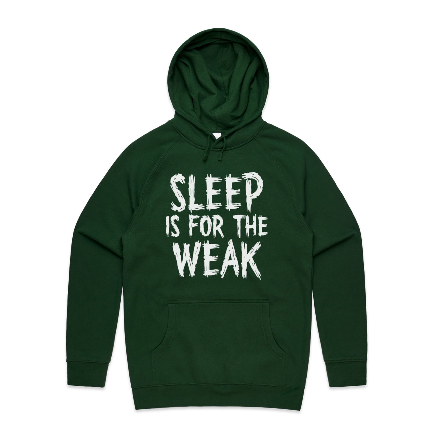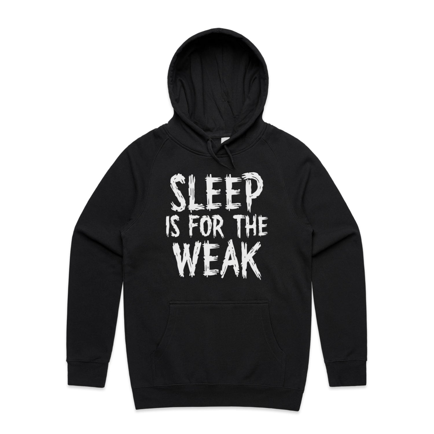 The Hoodies Sleep Is Weak – Men's Hooded Sweatshirt is a high-quality men's hooded sweatshirt, printed with white ink on the trusted AS Colour Supply Hood 5101. With a regular fit and mid-weight feel, it's crafted from a premium blend of 80% cotton and 20% polyester anti-pill fleece, making it a durable and comfortable staple for any wardrobe. The pullover design features raglan sleeves, a lined hood with tonal drawcord, ribbed sleeve cuffs, and a roomy kangaroo pocket — all designed to keep you warm while looking effortlessly sharp.