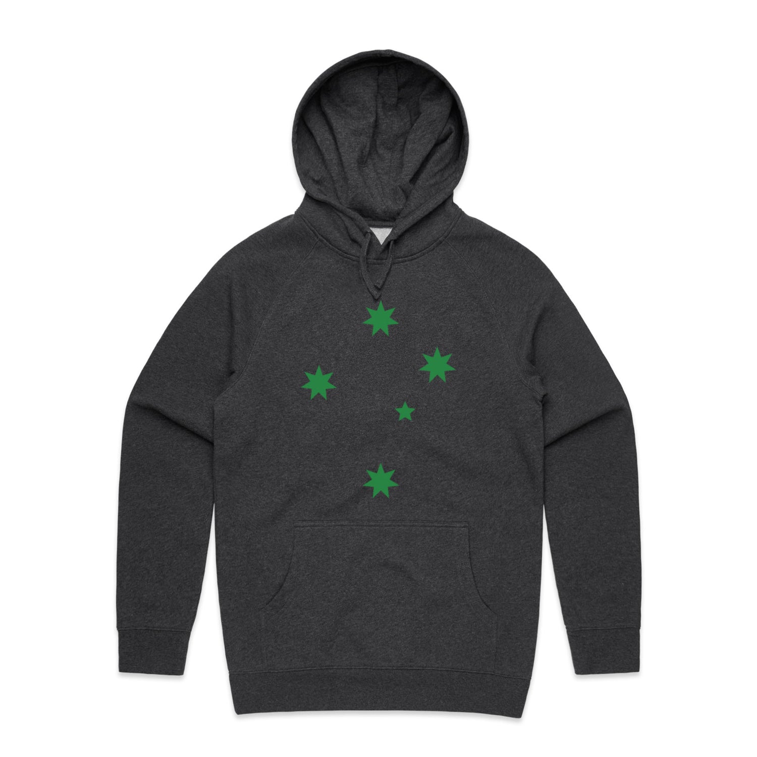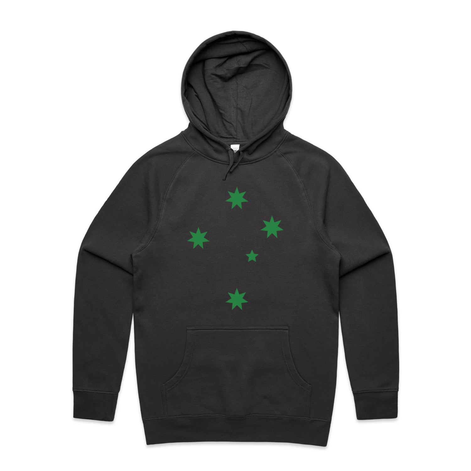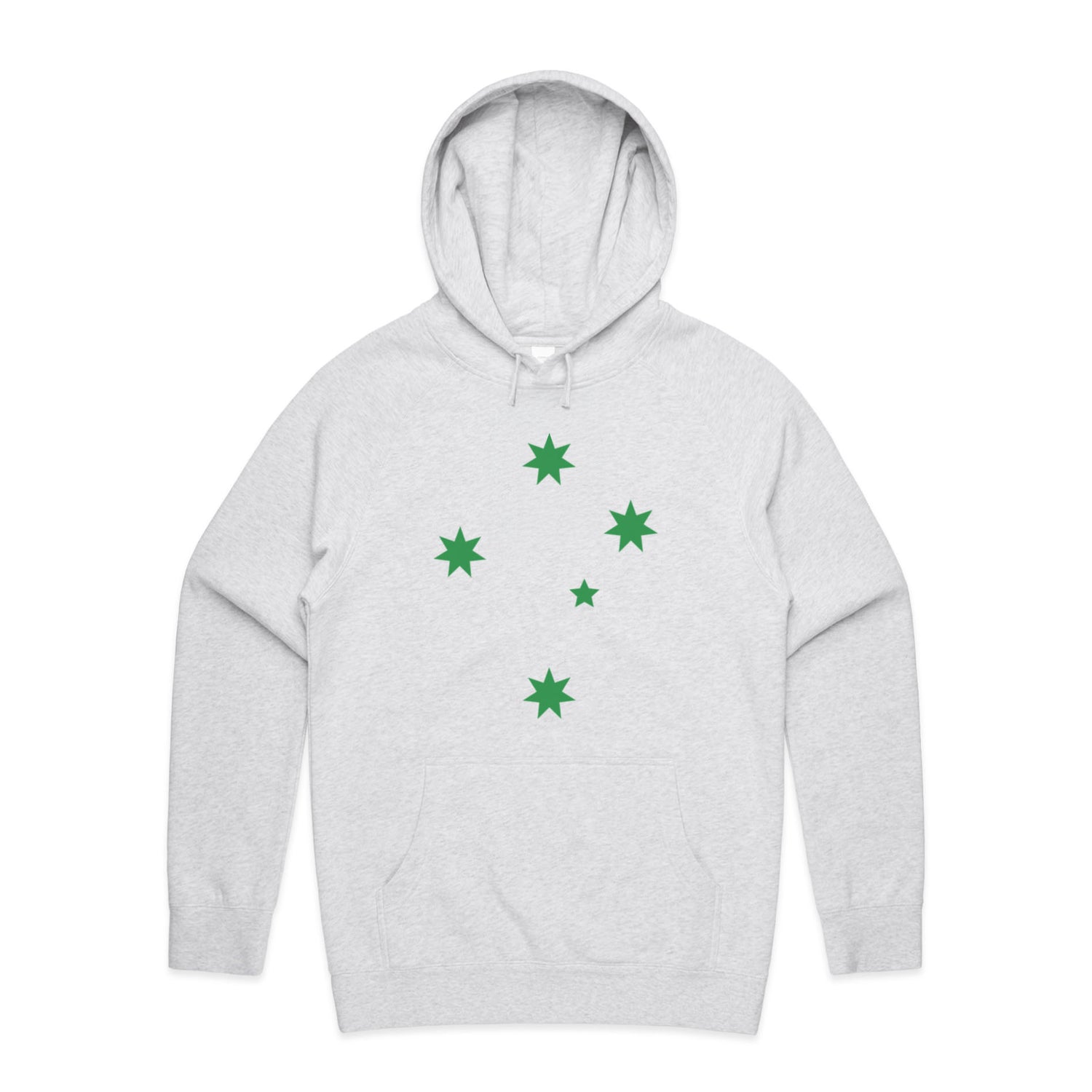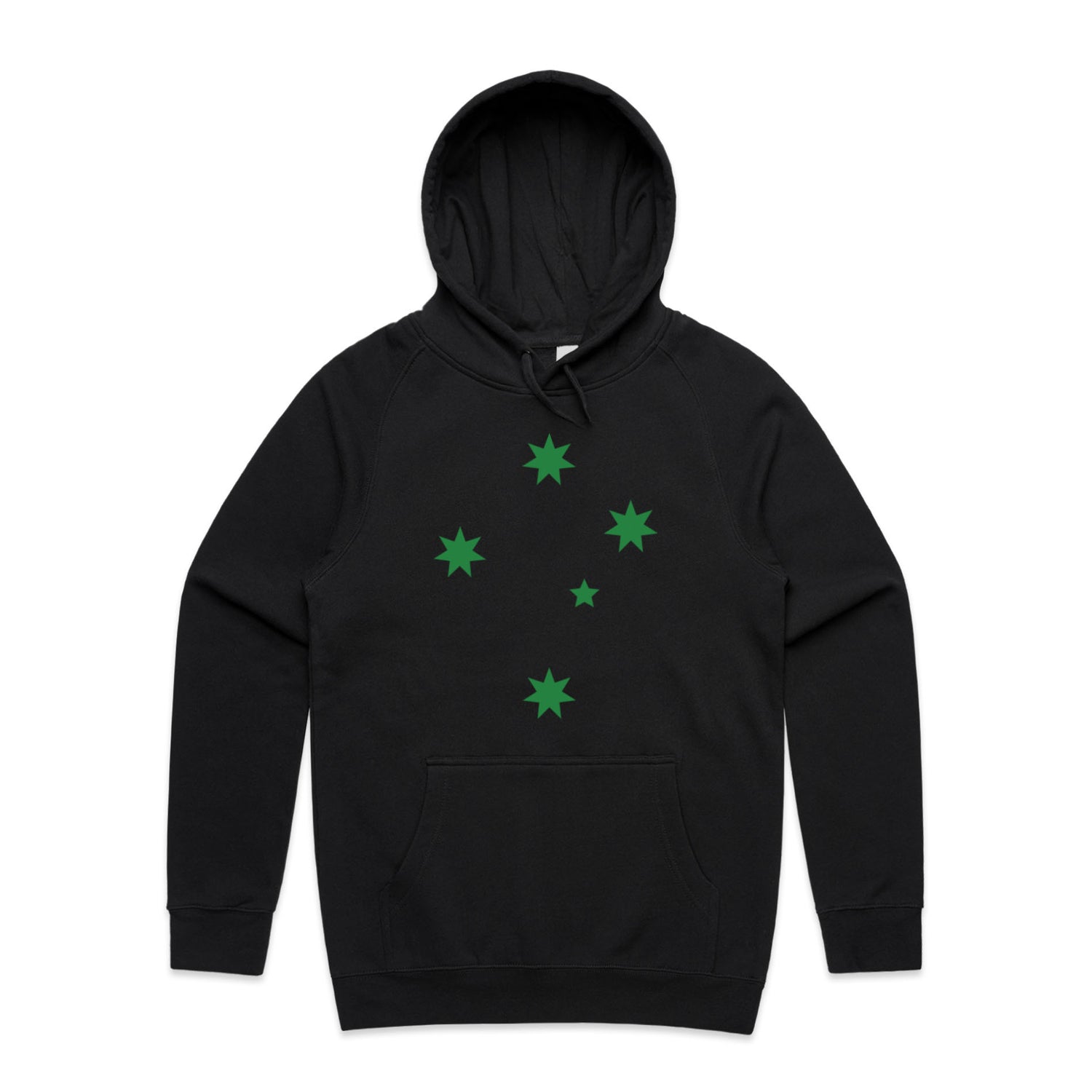 The Hoodies Southern Cross – Men's Hooded Sweatshirt is a high-quality men's hooded sweatshirt, printed with kelly green ink on the trusted AS Colour Supply Hood 5101. With a regular fit and mid-weight feel, it's crafted from a premium blend of 80% cotton and 20% polyester anti-pill fleece, making it a durable and comfortable staple for any wardrobe. The pullover design features raglan sleeves, a lined hood with tonal drawcord, ribbed sleeve cuffs, and a roomy kangaroo pocket — all designed to keep you warm while looking effortlessly sharp.