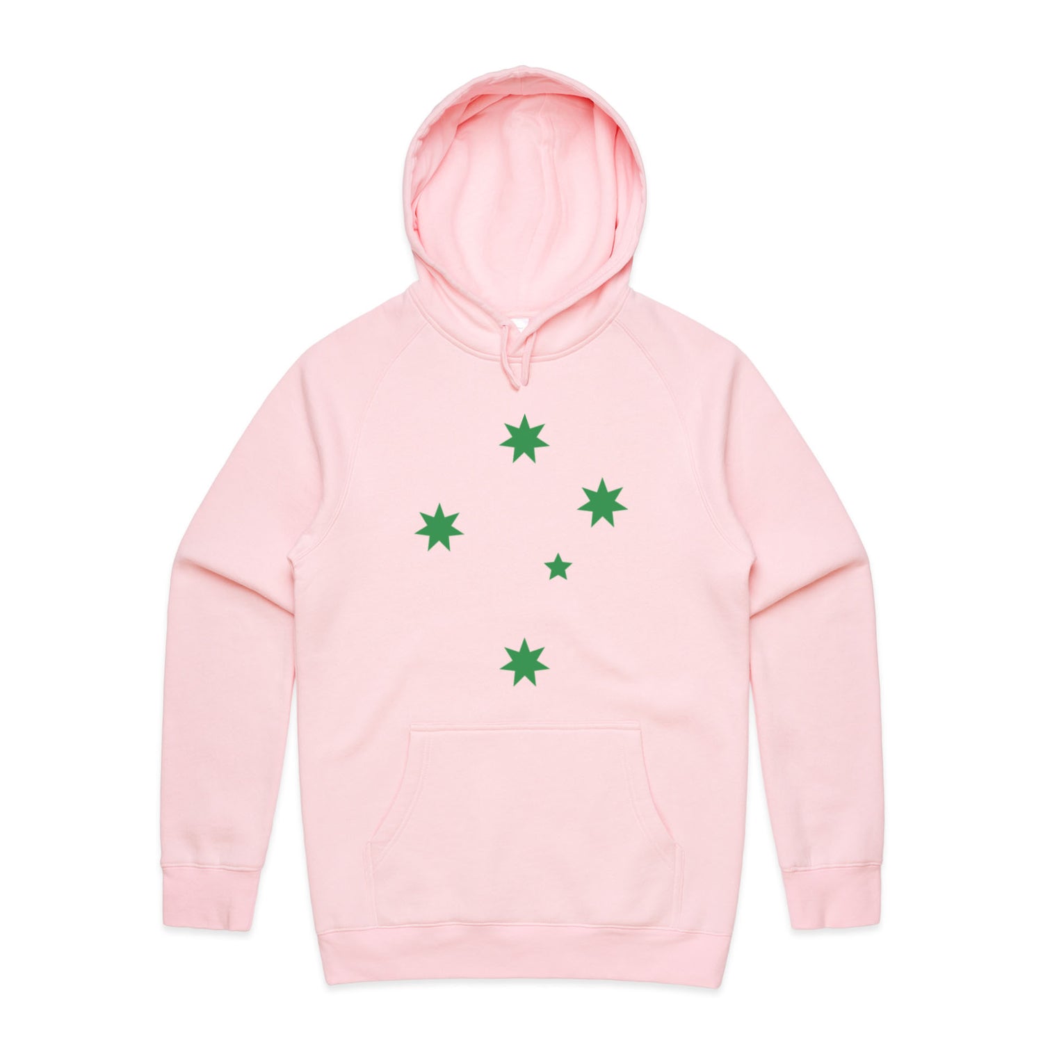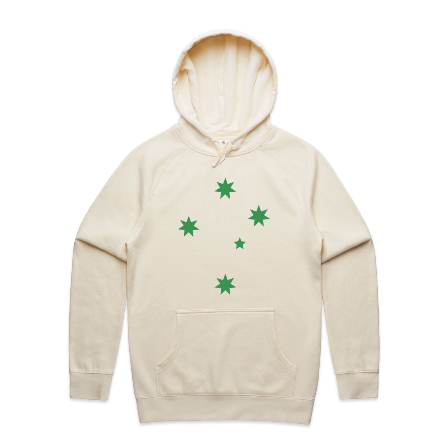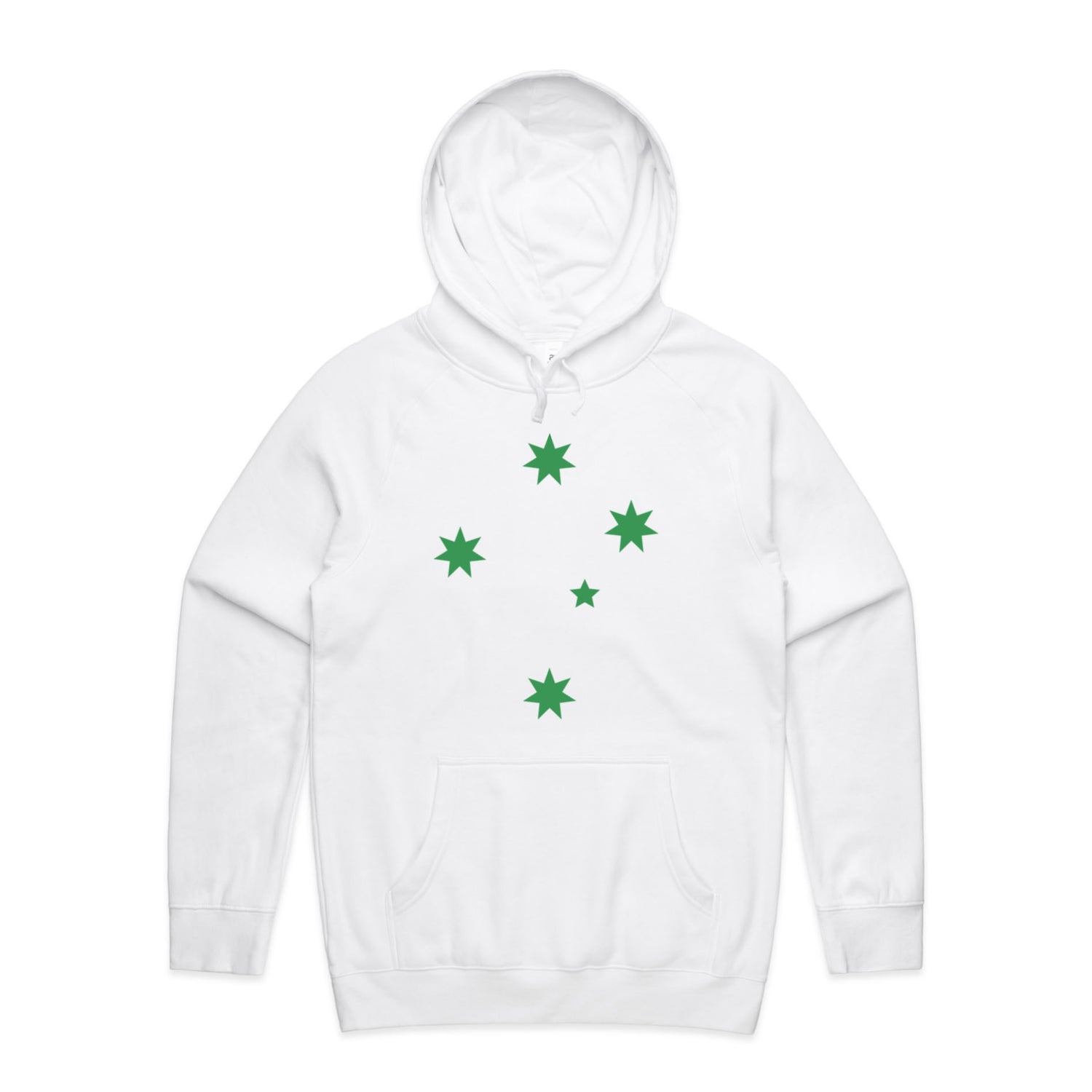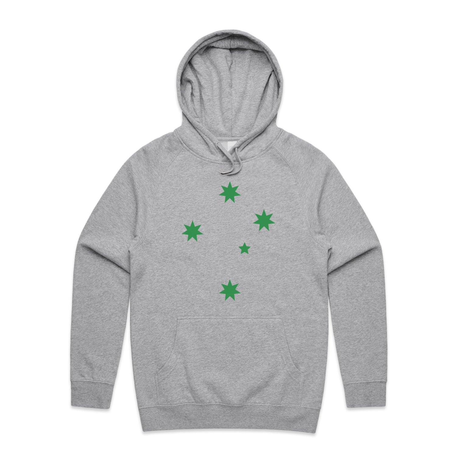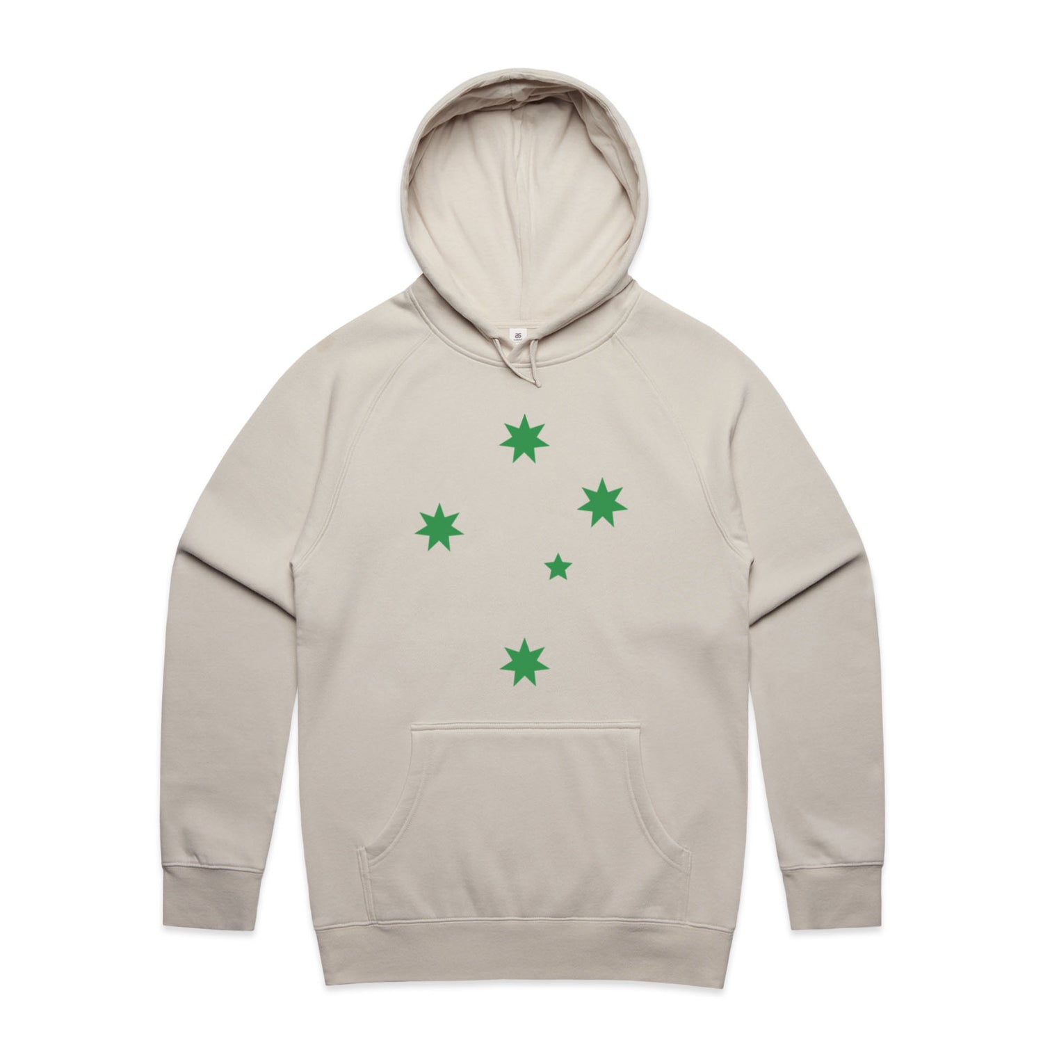 The Hoodies Southern Cross – Men's Hooded Sweatshirt is a high-quality men's hooded sweatshirt, printed with kelly green ink on the trusted AS Colour Supply Hood 5101. With a regular fit and mid-weight feel, it's crafted from a premium blend of 80% cotton and 20% polyester anti-pill fleece, making it a durable and comfortable staple for any wardrobe. The pullover design features raglan sleeves, a lined hood with tonal drawcord, ribbed sleeve cuffs, and a roomy kangaroo pocket — all designed to keep you warm while looking effortlessly sharp.