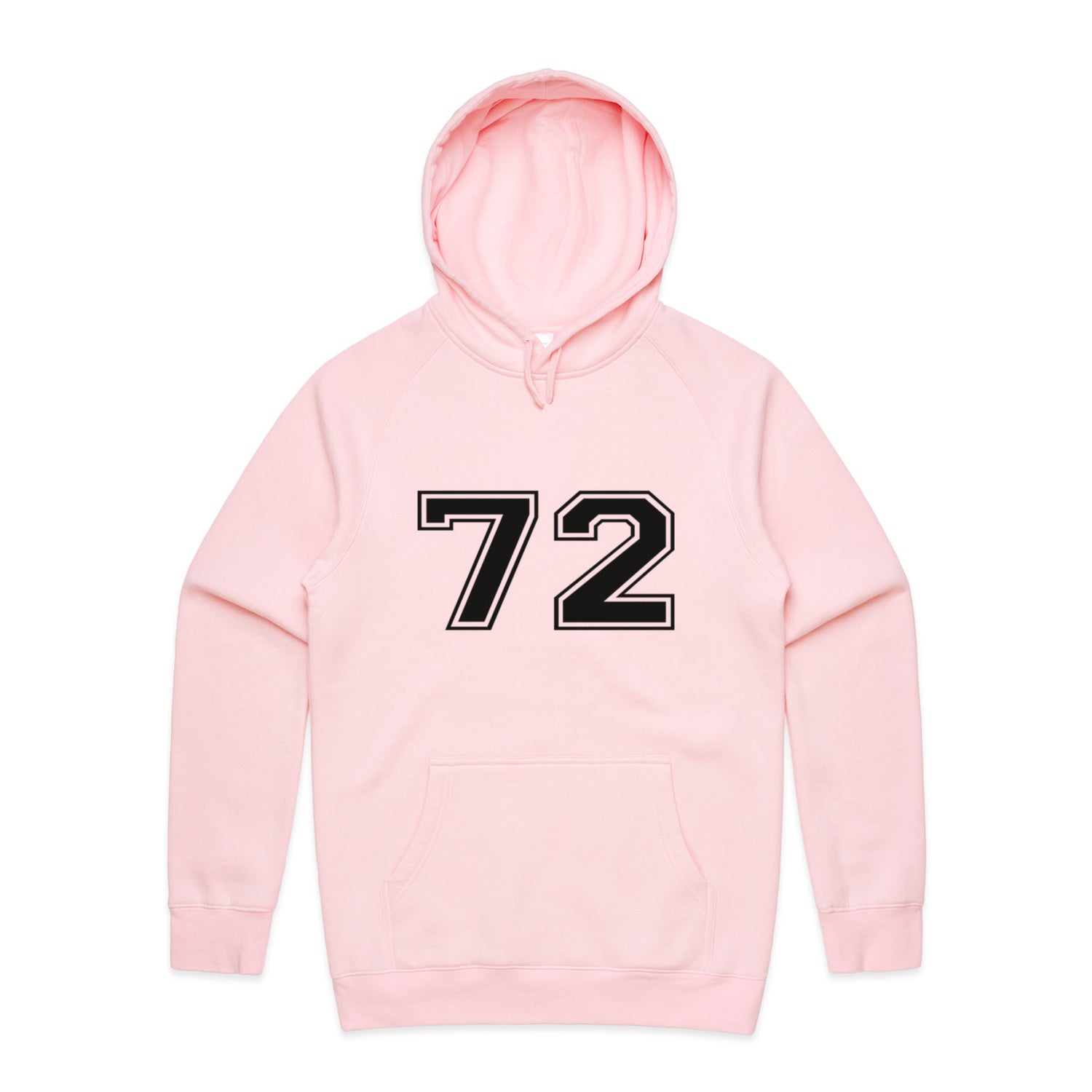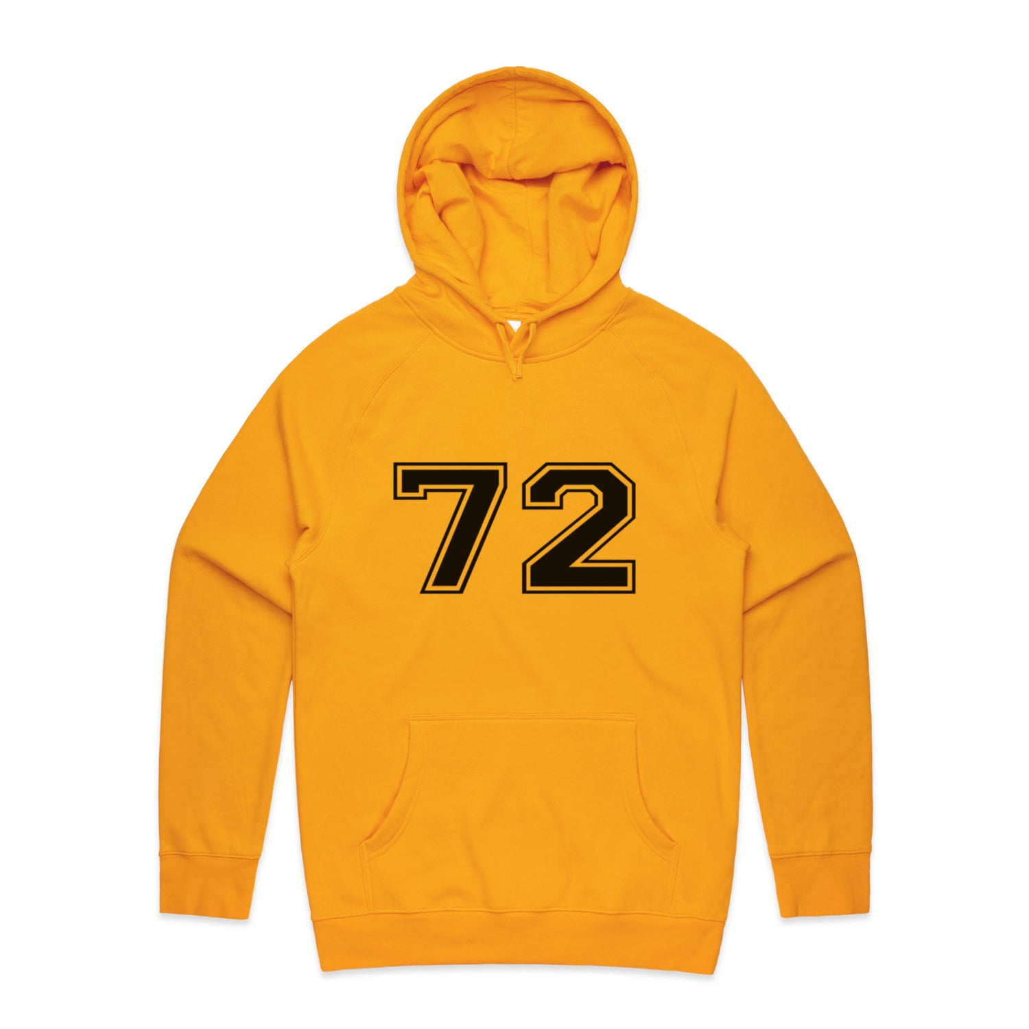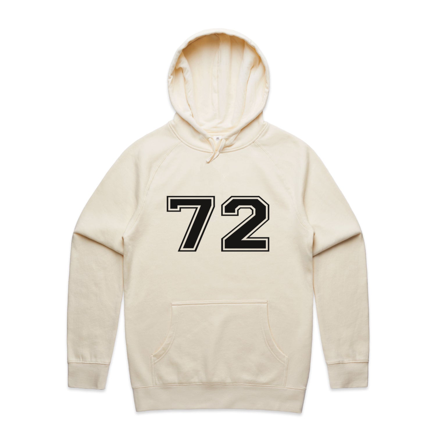The Hoodies Sport Numbers 72 – Men's Hooded Sweatshirt is a high-quality men's hooded sweatshirt, printed with black ink on the trusted AS Colour Supply Hood 5101. With a regular fit and mid-weight feel, it's crafted from a premium blend of 80% cotton and 20% polyester anti-pill fleece, making it a durable and comfortable staple for any wardrobe. The pullover design features raglan sleeves, a lined hood with tonal drawcord, ribbed sleeve cuffs, and a roomy kangaroo pocket — all designed to keep you warm while looking effortlessly sharp.