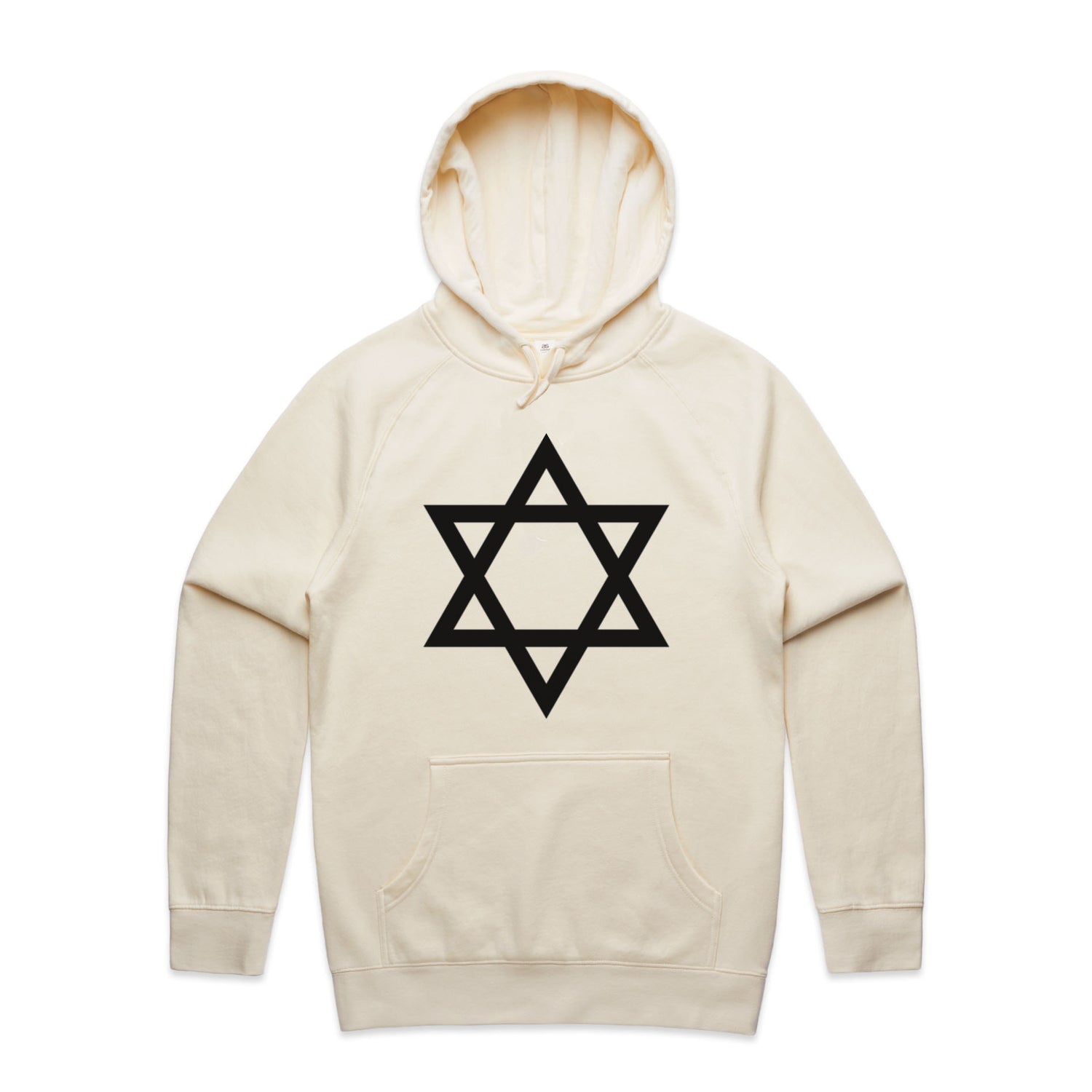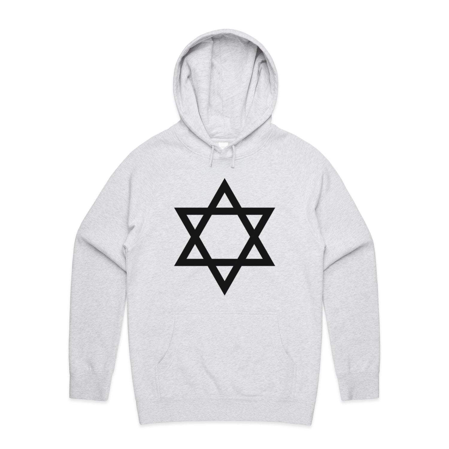 The Hoodies Star of David – Men's Hooded Sweatshirt is a high-quality men's hooded sweatshirt, printed with black ink on the trusted AS Colour Supply Hood 5101. With a regular fit and mid-weight feel, it's crafted from a premium blend of 80% cotton and 20% polyester anti-pill fleece, making it a durable and comfortable staple for any wardrobe. The pullover design features raglan sleeves, a lined hood with tonal drawcord, ribbed sleeve cuffs, and a roomy kangaroo pocket — all designed to keep you warm while looking effortlessly sharp.