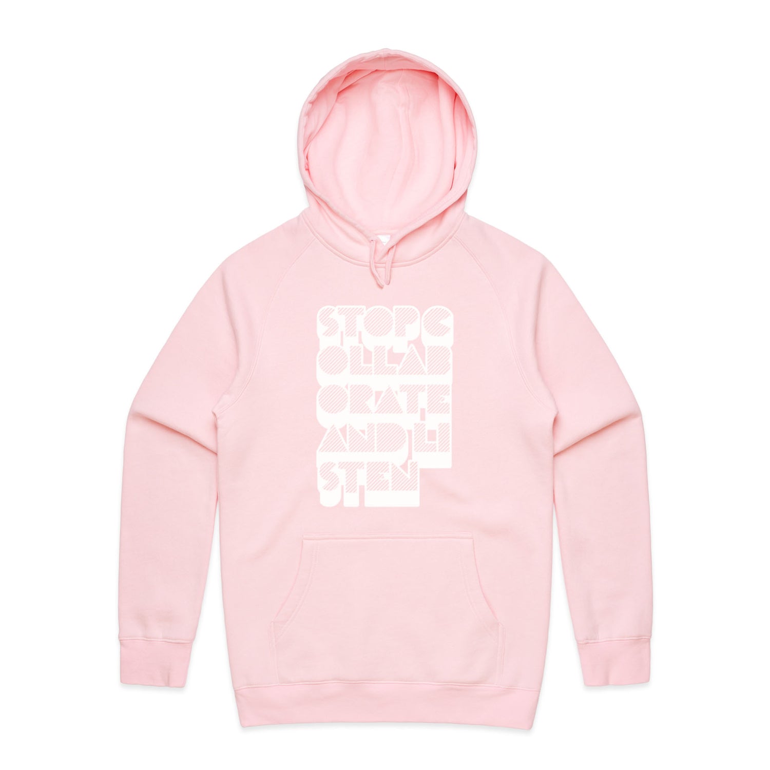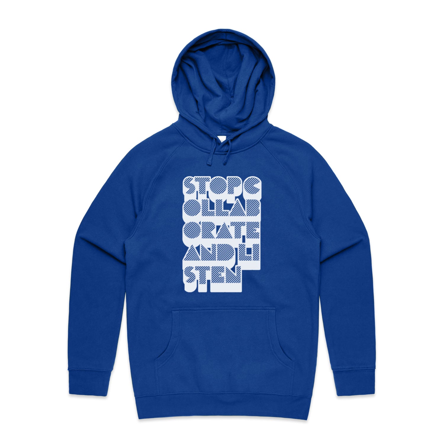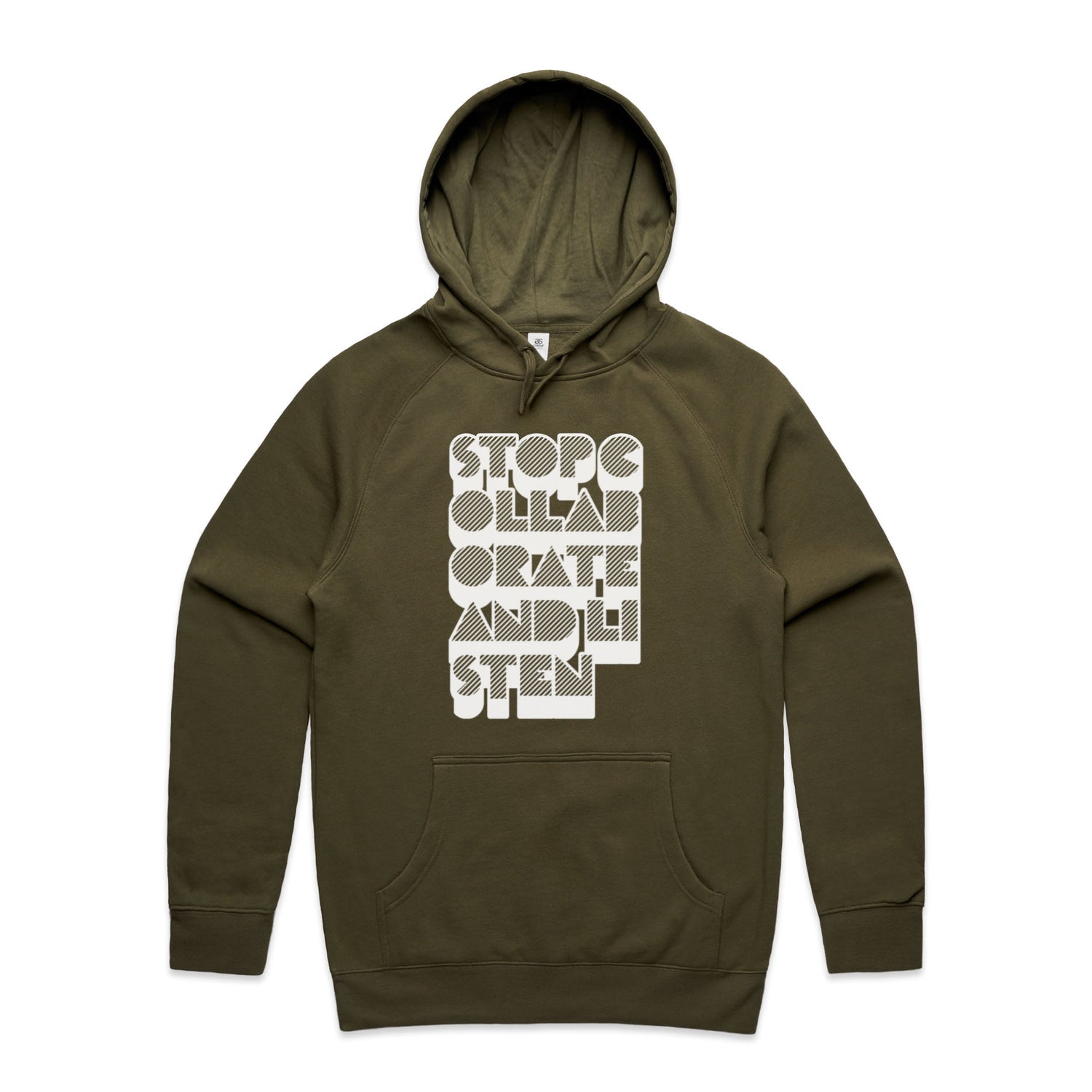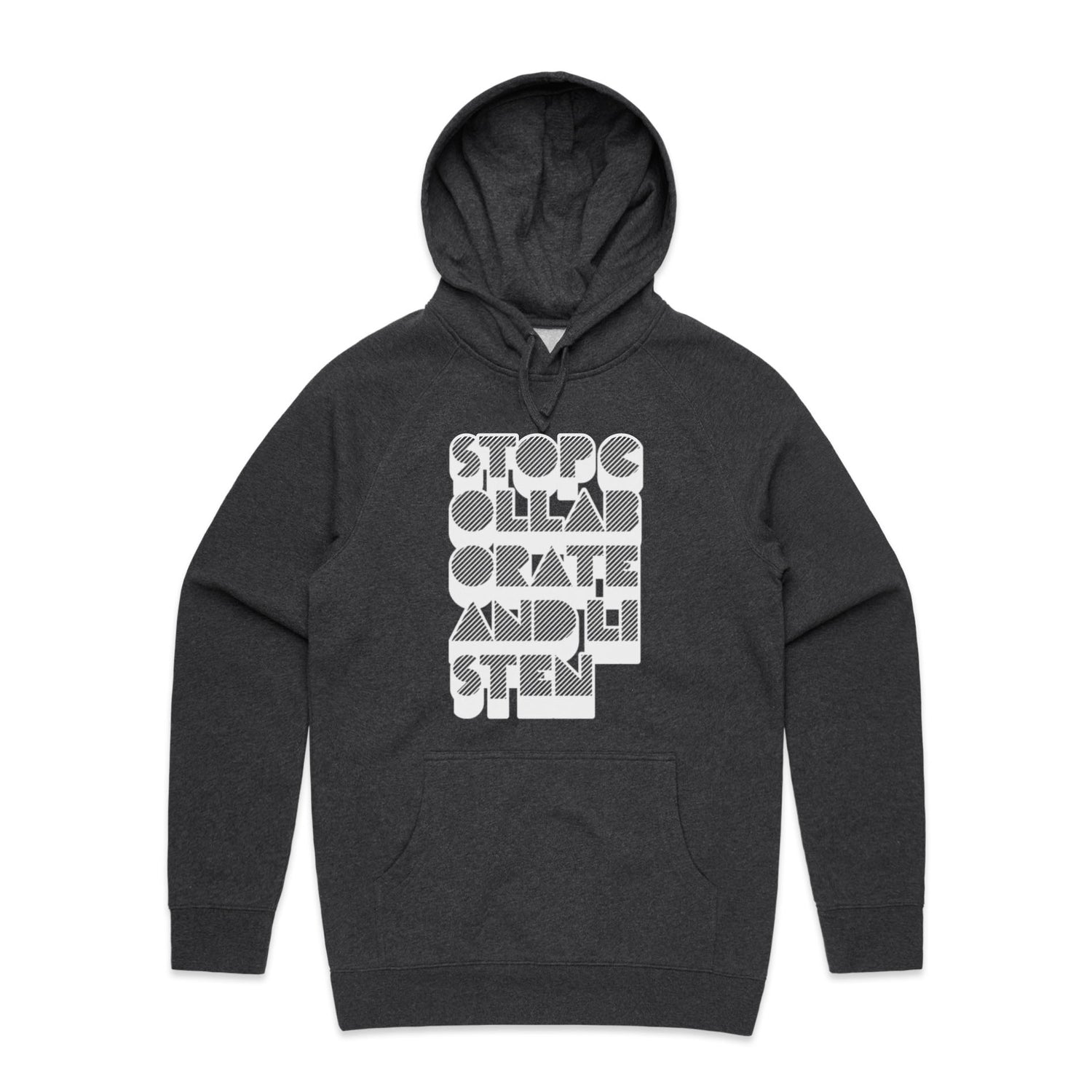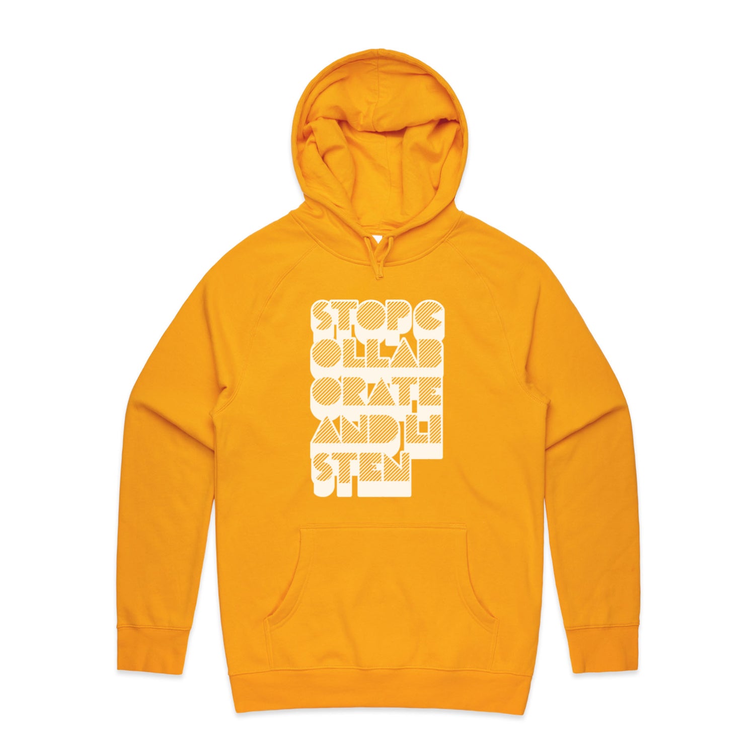 The Hoodies Stop Collaborate Listen – Men's Hooded Sweatshirt is a high-quality men's hooded sweatshirt, printed with white ink on the trusted AS Colour Supply Hood 5101. With a regular fit and mid-weight feel, it's crafted from a premium blend of 80% cotton and 20% polyester anti-pill fleece, making it a durable and comfortable staple for any wardrobe. The pullover design features raglan sleeves, a lined hood with tonal drawcord, ribbed sleeve cuffs, and a roomy kangaroo pocket — all designed to keep you warm while looking effortlessly sharp.