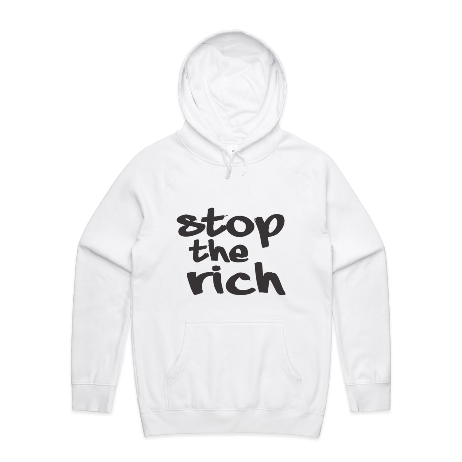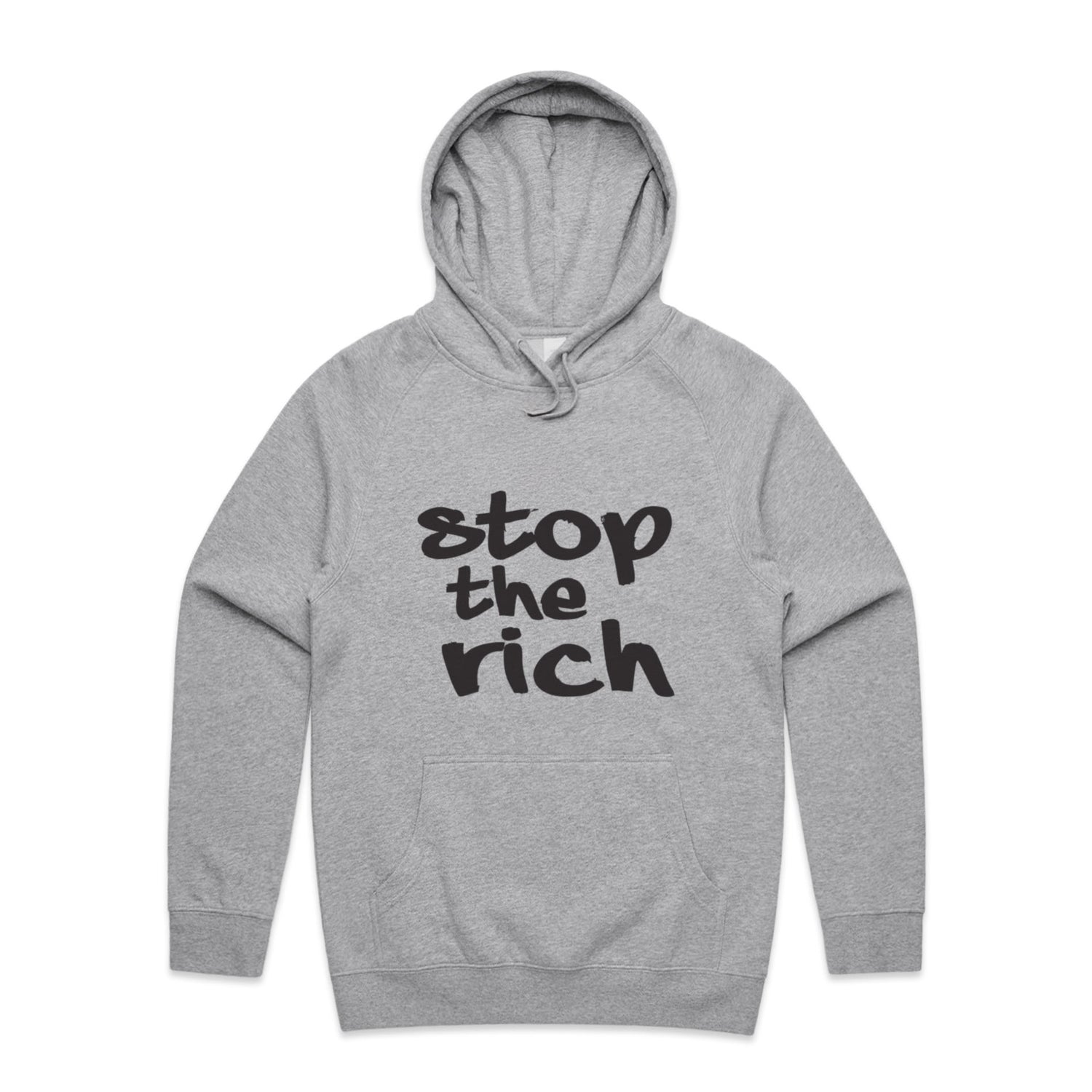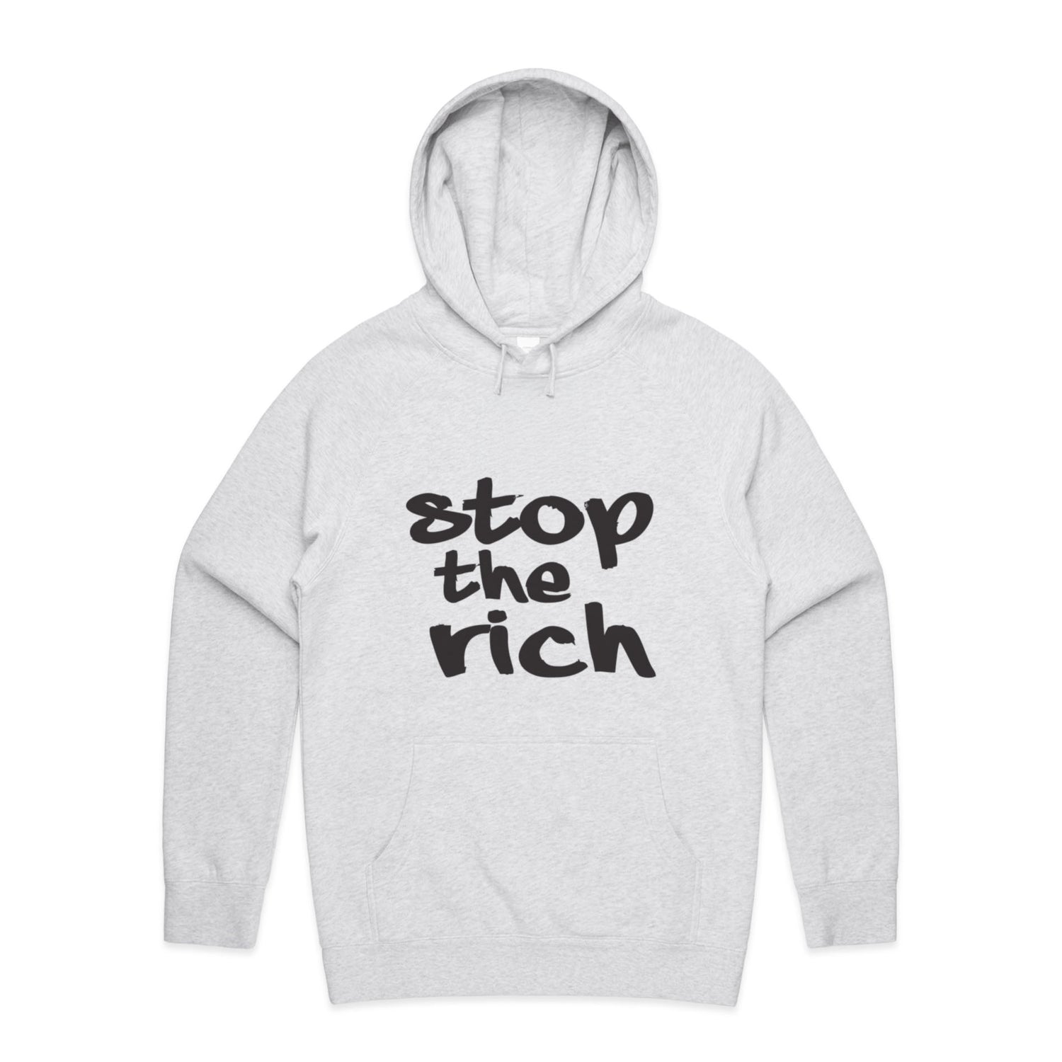 The Hoodies stop the rich – Men's Hooded Sweatshirt is a high-quality men's hooded sweatshirt, printed with black ink on the trusted AS Colour Supply Hood 5101. With a regular fit and mid-weight feel, it's crafted from a premium blend of 80% cotton and 20% polyester anti-pill fleece, making it a durable and comfortable staple for any wardrobe. The pullover design features raglan sleeves, a lined hood with tonal drawcord, ribbed sleeve cuffs, and a roomy kangaroo pocket — all designed to keep you warm while looking effortlessly sharp.