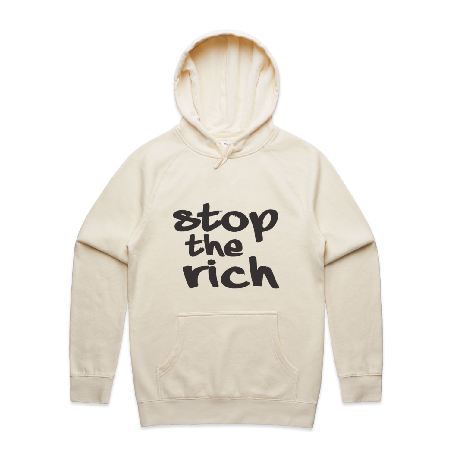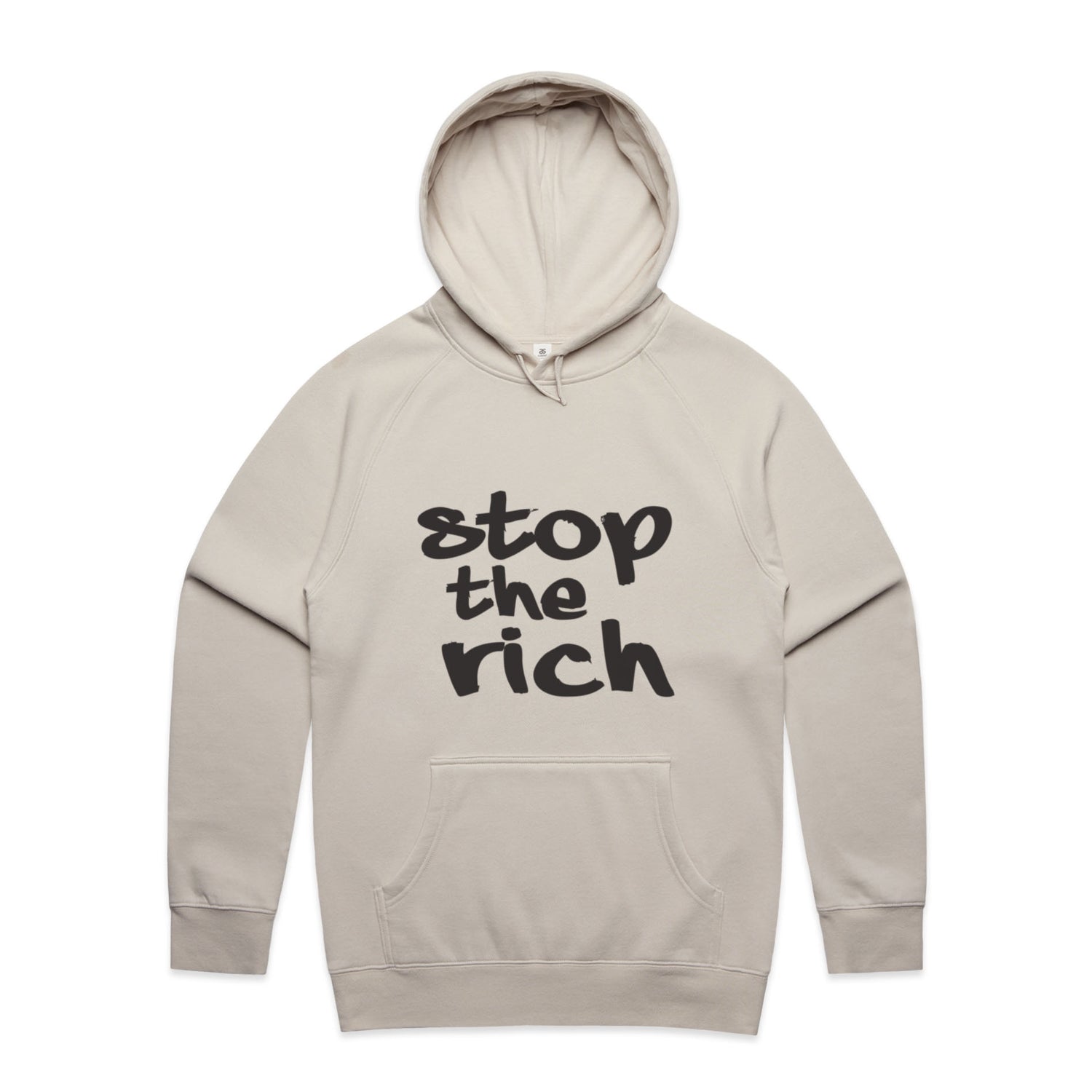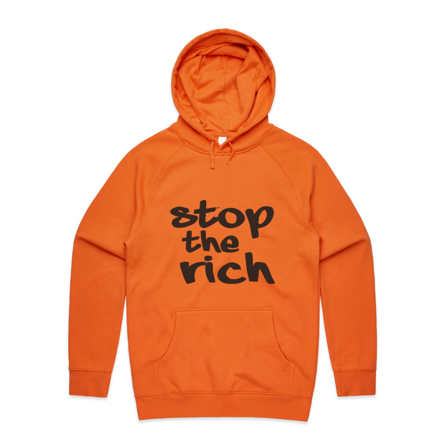 The Hoodies stop the rich – Men's Hooded Sweatshirt is a high-quality men's hooded sweatshirt, printed with black ink on the trusted AS Colour Supply Hood 5101. With a regular fit and mid-weight feel, it's crafted from a premium blend of 80% cotton and 20% polyester anti-pill fleece, making it a durable and comfortable staple for any wardrobe. The pullover design features raglan sleeves, a lined hood with tonal drawcord, ribbed sleeve cuffs, and a roomy kangaroo pocket — all designed to keep you warm while looking effortlessly sharp.