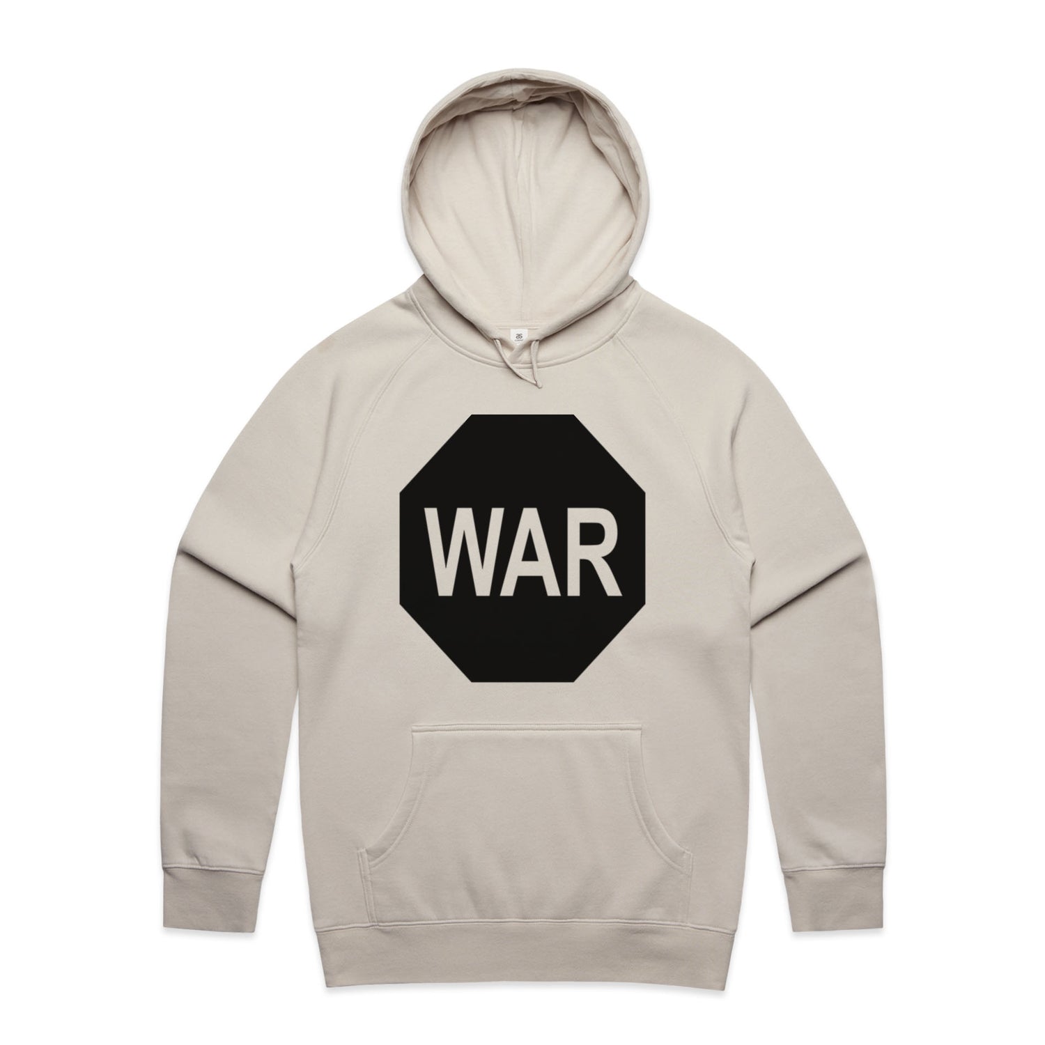 The Hoodies Stop War – Men's Hooded Sweatshirt is a high-quality men's hooded sweatshirt, printed with black ink on the trusted AS Colour Supply Hood 5101. With a regular fit and mid-weight feel, it's crafted from a premium blend of 80% cotton and 20% polyester anti-pill fleece, making it a durable and comfortable staple for any wardrobe. The pullover design features raglan sleeves, a lined hood with tonal drawcord, ribbed sleeve cuffs, and a roomy kangaroo pocket — all designed to keep you warm while looking effortlessly sharp.