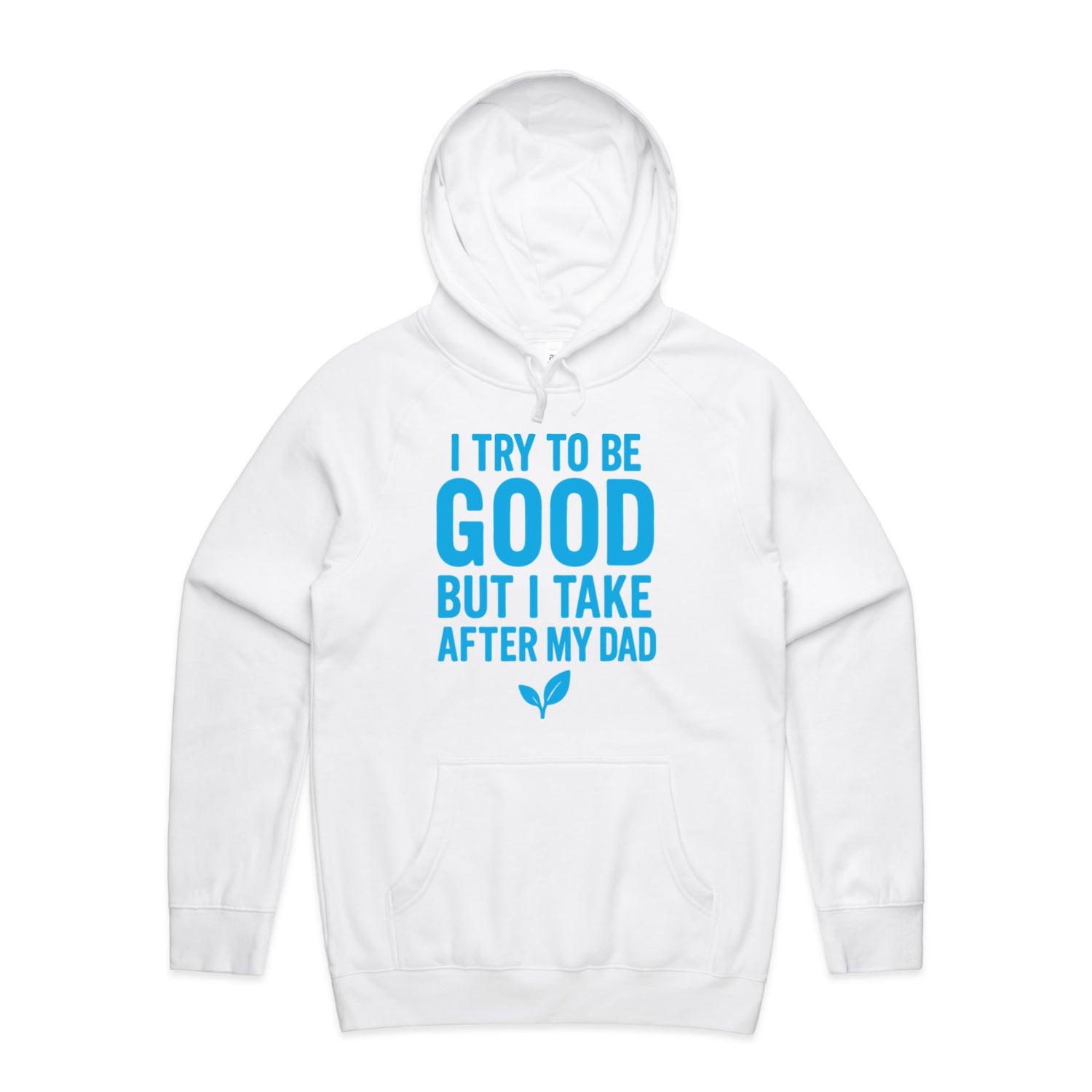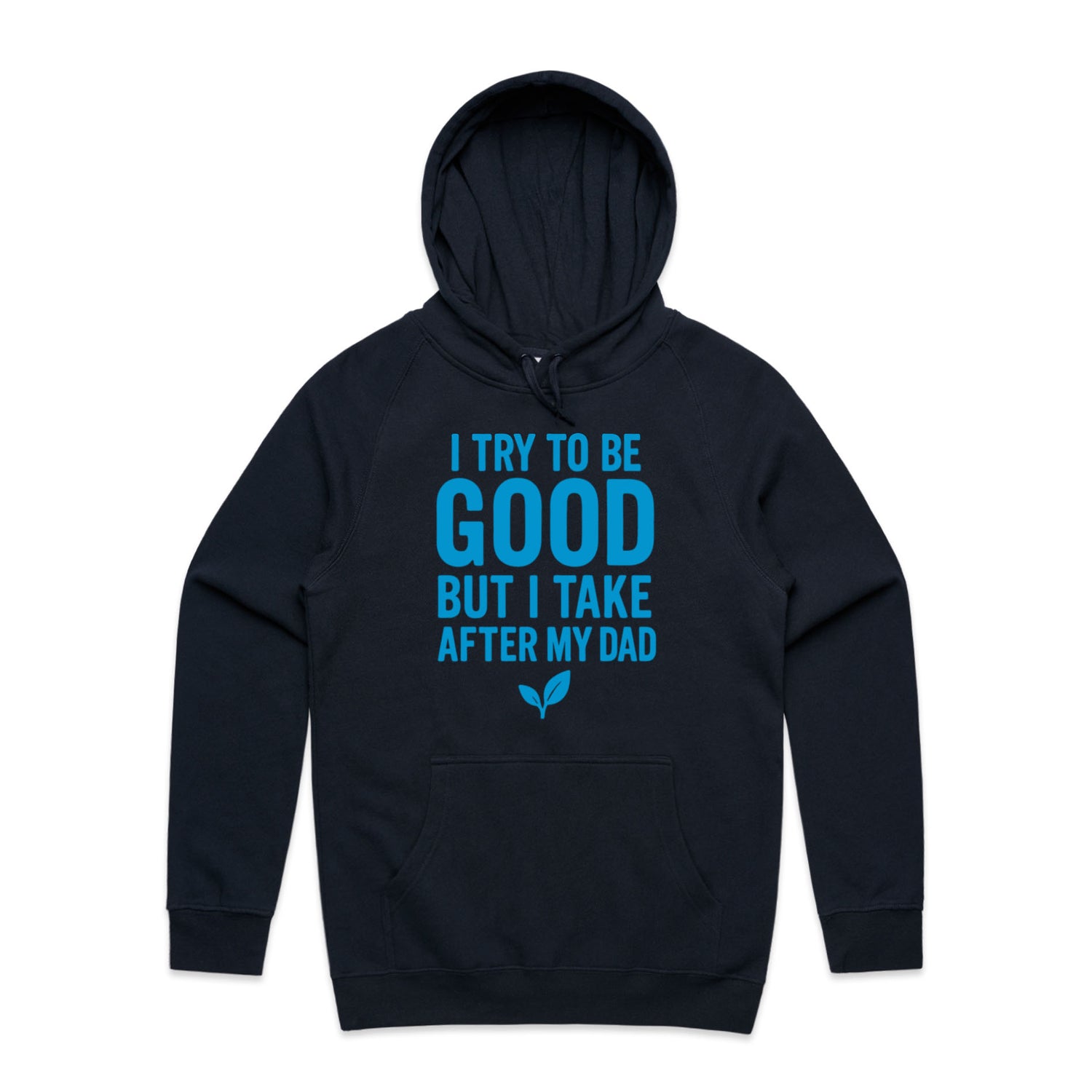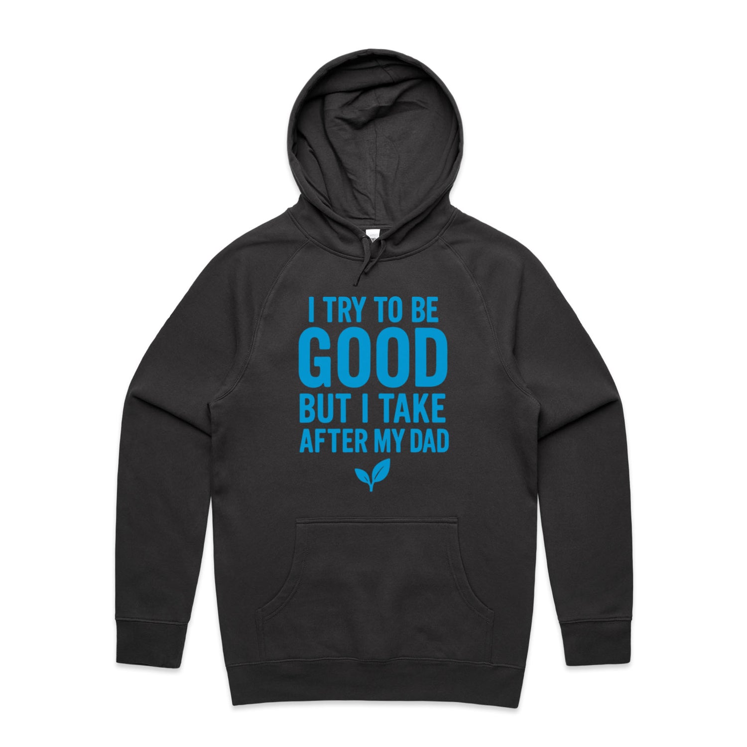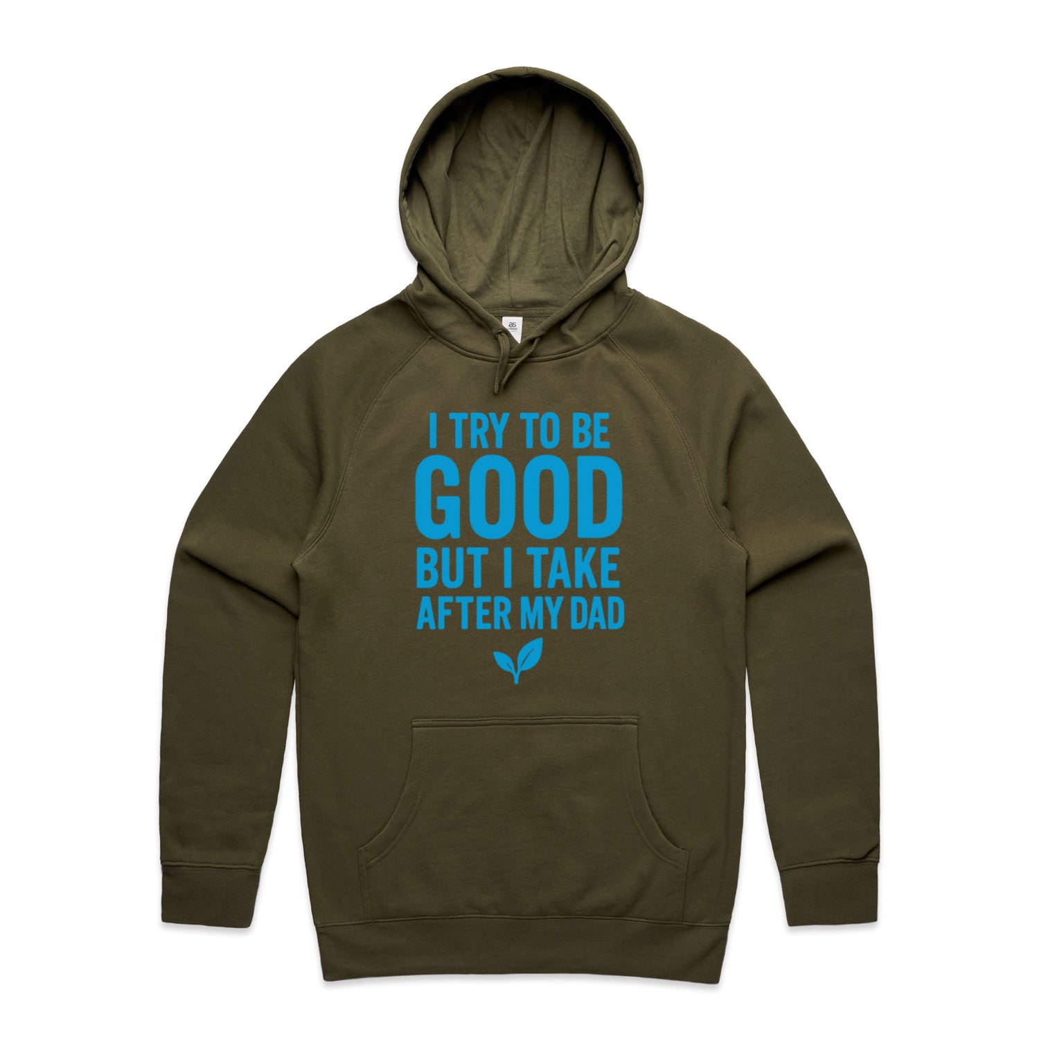 The Hoodies Striving to Be Good – Men's Hooded Sweatshirt is a high-quality men's hooded sweatshirt, printed with bright blue ink on the trusted AS Colour Supply Hood 5101. With a regular fit and mid-weight feel, it's crafted from a premium blend of 80% cotton and 20% polyester anti-pill fleece, making it a durable and comfortable staple for any wardrobe. The pullover design features raglan sleeves, a lined hood with tonal drawcord, ribbed sleeve cuffs, and a roomy kangaroo pocket — all designed to keep you warm while looking effortlessly sharp.