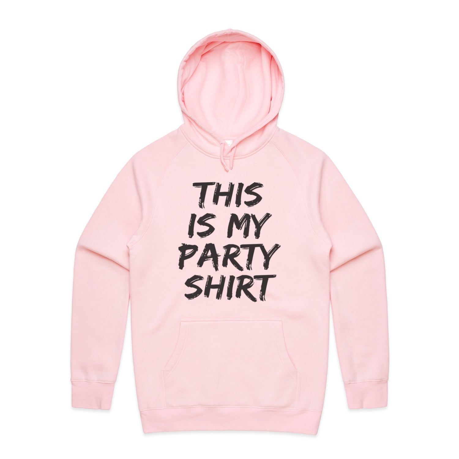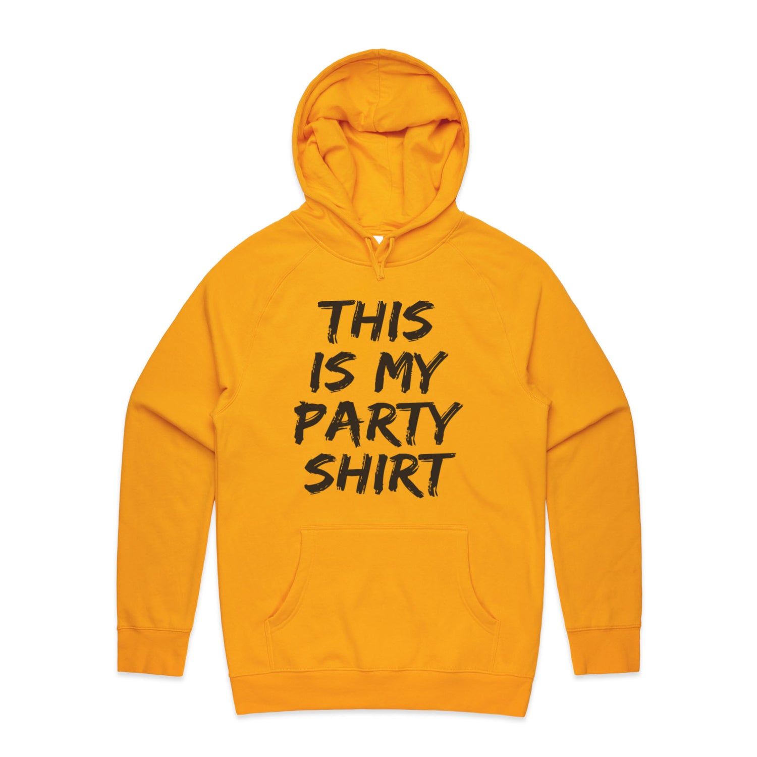 The Hoodies This is My Party Shirt – Men's Hooded Sweatshirt is a high-quality men's hooded sweatshirt, printed with black ink on the trusted AS Colour Supply Hood 5101. With a regular fit and mid-weight feel, it's crafted from a premium blend of 80% cotton and 20% polyester anti-pill fleece, making it a durable and comfortable staple for any wardrobe. The pullover design features raglan sleeves, a lined hood with tonal drawcord, ribbed sleeve cuffs, and a roomy kangaroo pocket — all designed to keep you warm while looking effortlessly sharp.