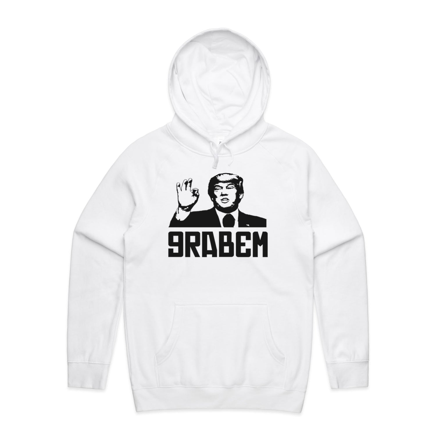 The Hoodies Trump Grab Em – Men's Hooded Sweatshirt is a high-quality men's hooded sweatshirt, printed with black ink on the trusted AS Colour Supply Hood 5101. With a regular fit and mid-weight feel, it's crafted from a premium blend of 80% cotton and 20% polyester anti-pill fleece, making it a durable and comfortable staple for any wardrobe. The pullover design features raglan sleeves, a lined hood with tonal drawcord, ribbed sleeve cuffs, and a roomy kangaroo pocket — all designed to keep you warm while looking effortlessly sharp.