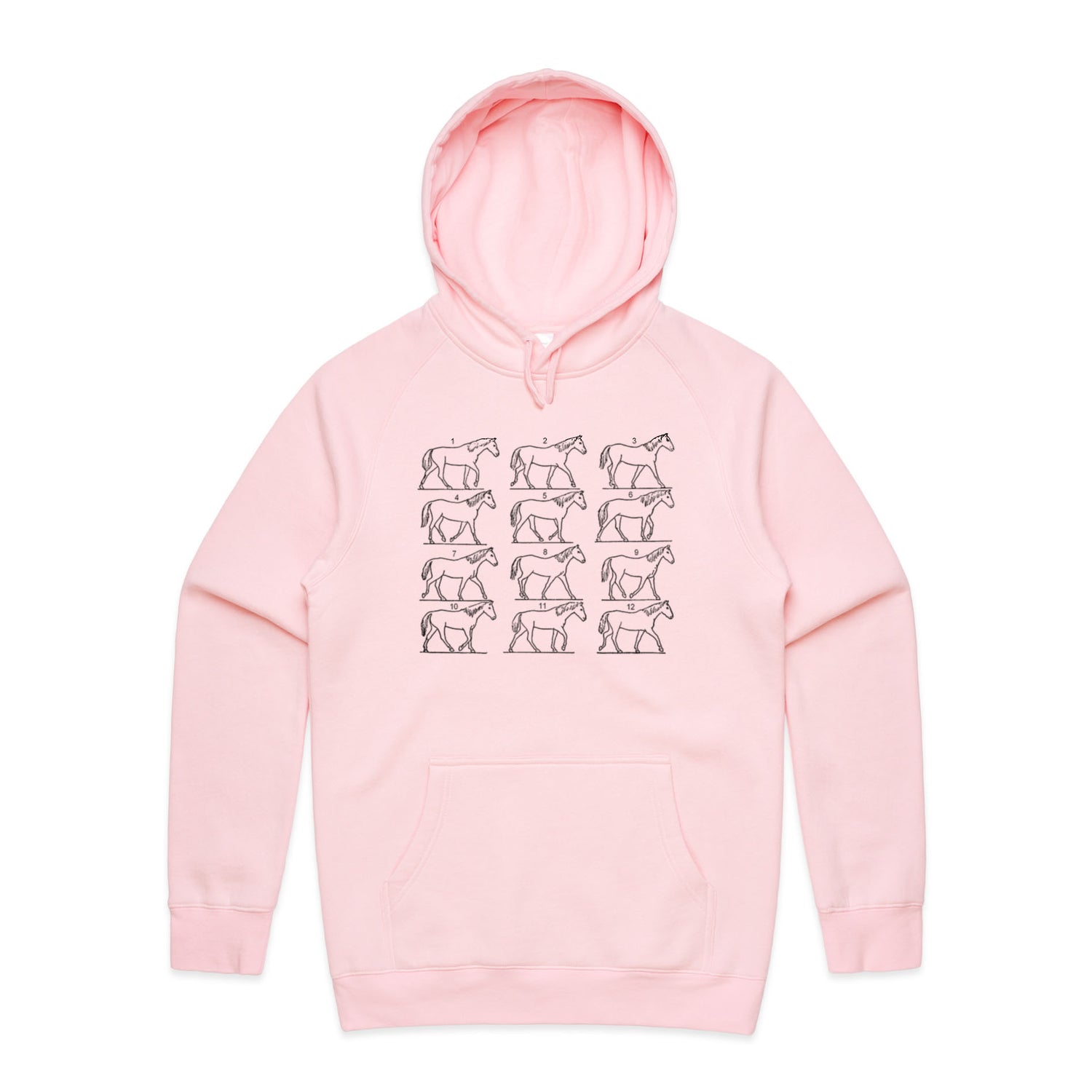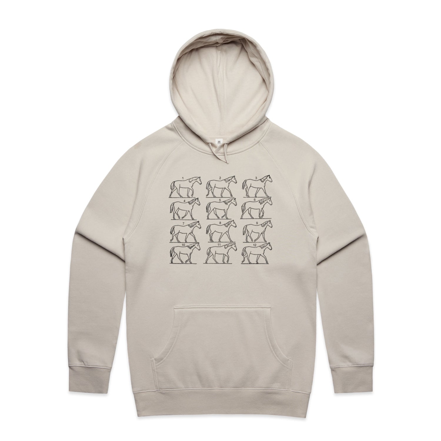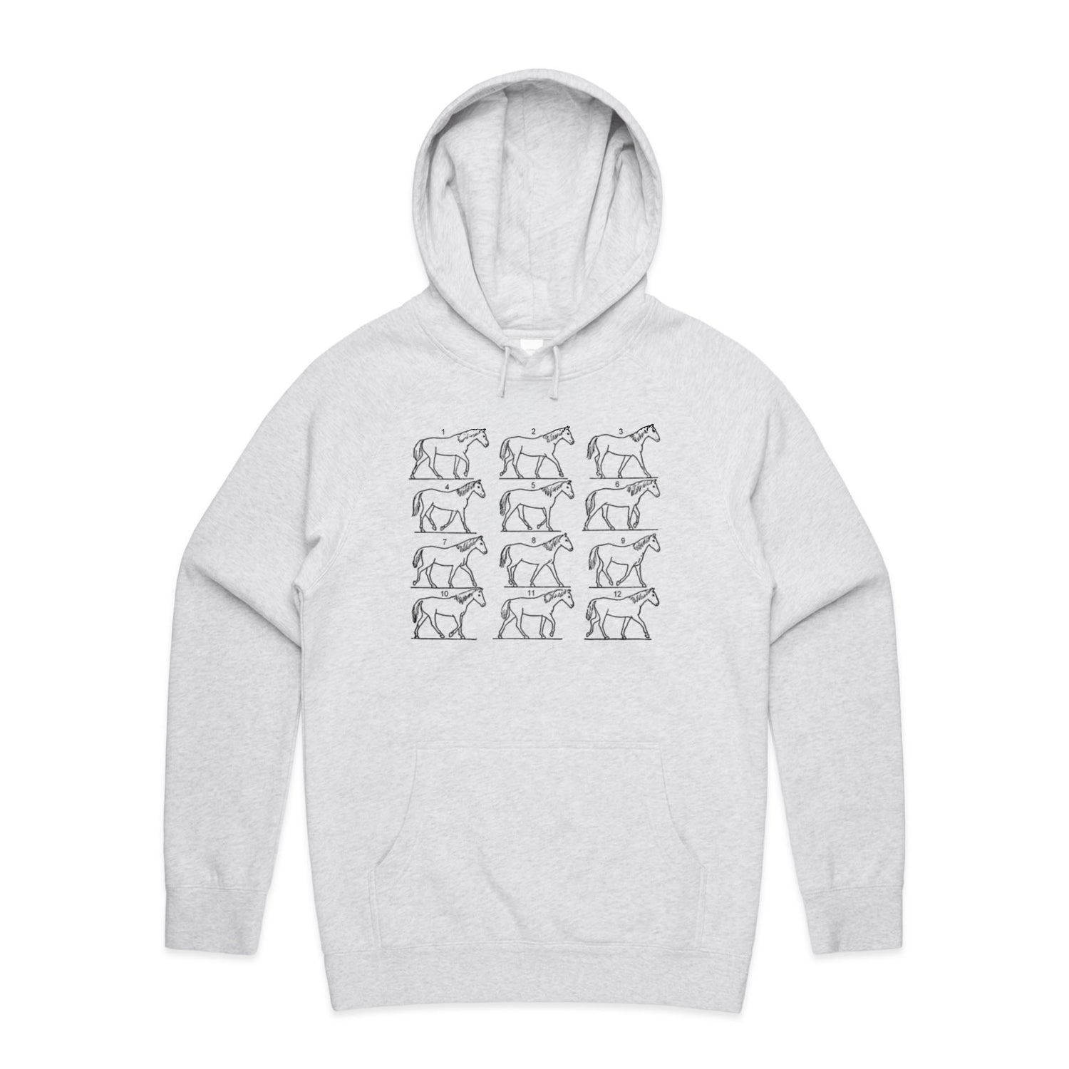 The Hoodies Walking Horse – Men's Hooded Sweatshirt is a high-quality men's hooded sweatshirt, printed with black ink on the trusted AS Colour Supply Hood 5101. With a regular fit and mid-weight feel, it's crafted from a premium blend of 80% cotton and 20% polyester anti-pill fleece, making it a durable and comfortable staple for any wardrobe. The pullover design features raglan sleeves, a lined hood with tonal drawcord, ribbed sleeve cuffs, and a roomy kangaroo pocket — all designed to keep you warm while looking effortlessly sharp.