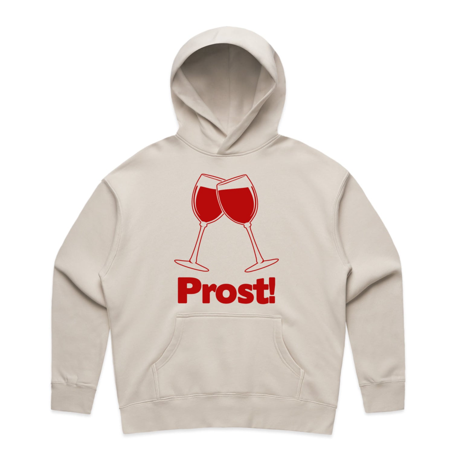 Crafted with a cosy 320 GSM blend of 80% cotton and 20% recycled polyester, this hoodie is a snug cuddle that’s also doing its bit for the planet, repurposing around 7.2 plastic bottles. The rich, red ink of the Wine Glass Prost print is as vibrant as a full-bodied shiraz. Featuring a chilled pullover hood and those handy kangaroo pockets for stashing your hands (or sneaky snacks), it's made for effortless cool.
