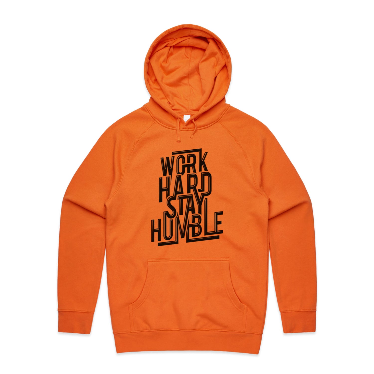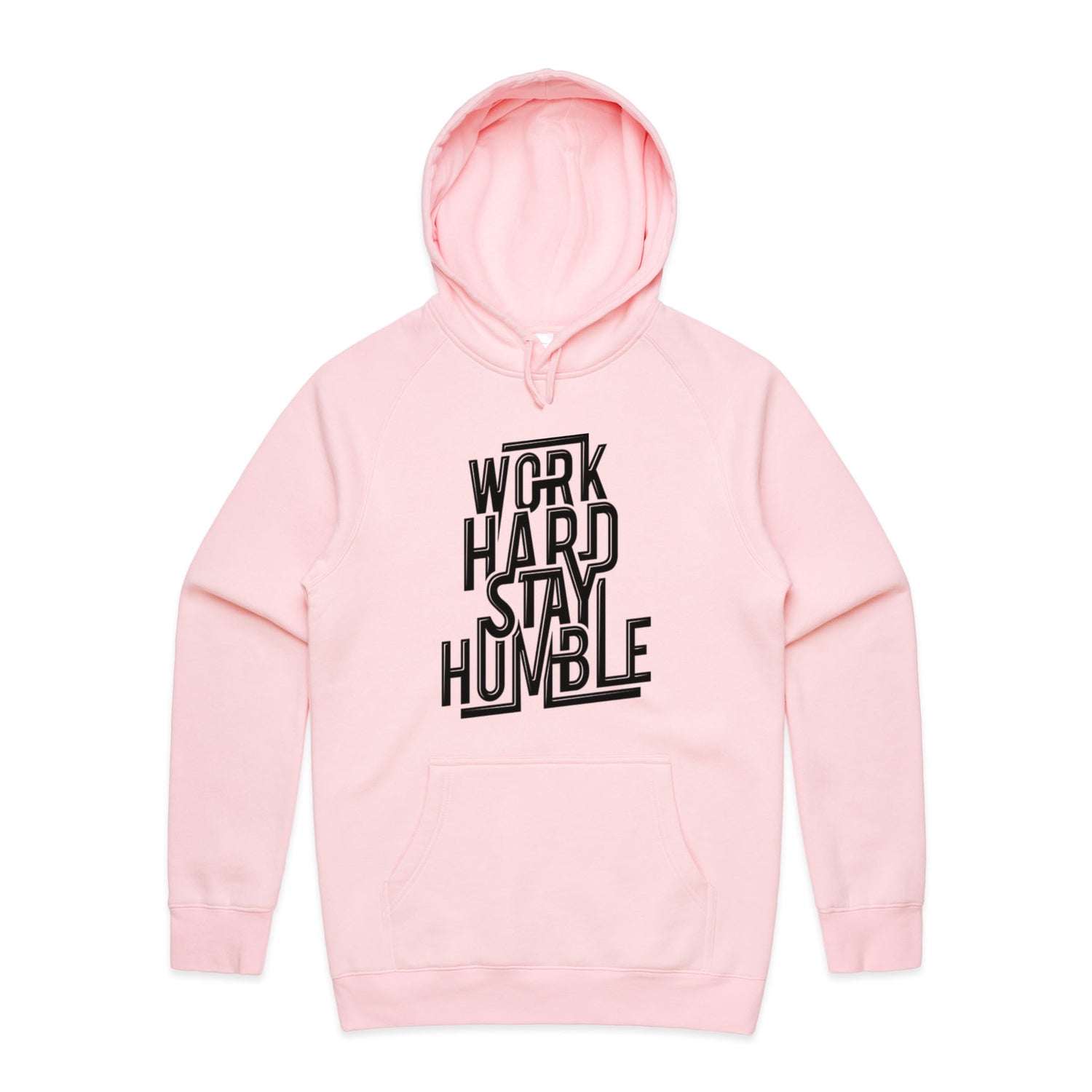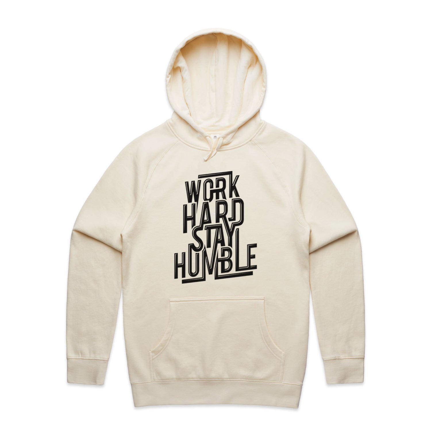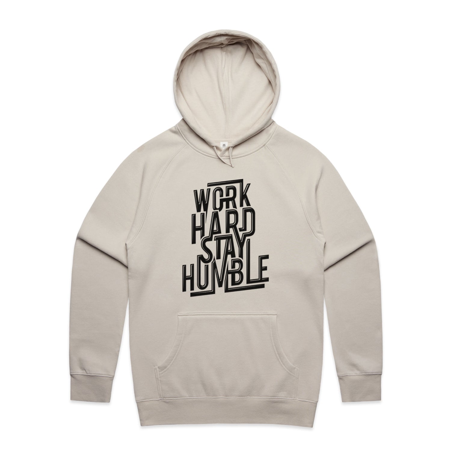 The Hoodies Work Hard Stay Humble – Men's Hooded Sweatshirt is a high-quality men's hooded sweatshirt, printed with black ink on the trusted AS Colour Supply Hood 5101. With a regular fit and mid-weight feel, it's crafted from a premium blend of 80% cotton and 20% polyester anti-pill fleece, making it a durable and comfortable staple for any wardrobe. The pullover design features raglan sleeves, a lined hood with tonal drawcord, ribbed sleeve cuffs, and a roomy kangaroo pocket — all designed to keep you warm while looking effortlessly sharp.