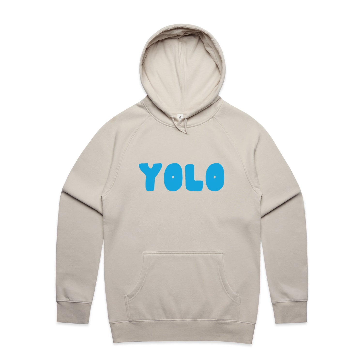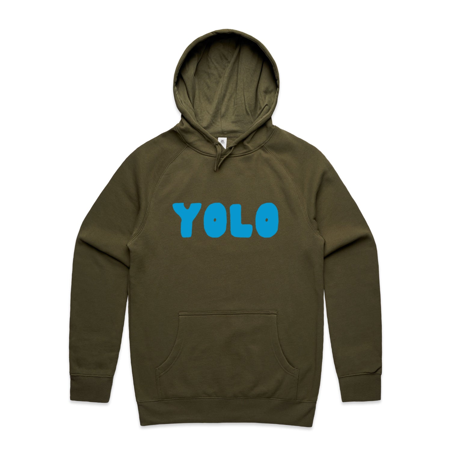 The Hoodies YOLO – Men's Hooded Sweatshirt is a high-quality men's hooded sweatshirt, printed with blue ink on the trusted AS Colour Supply Hood 5101. With a regular fit and mid-weight feel, it's crafted from a premium blend of 80% cotton and 20% polyester anti-pill fleece, making it a durable and comfortable staple for any wardrobe. The pullover design features raglan sleeves, a lined hood with tonal drawcord, ribbed sleeve cuffs, and a roomy kangaroo pocket — all designed to keep you warm while looking effortlessly sharp.